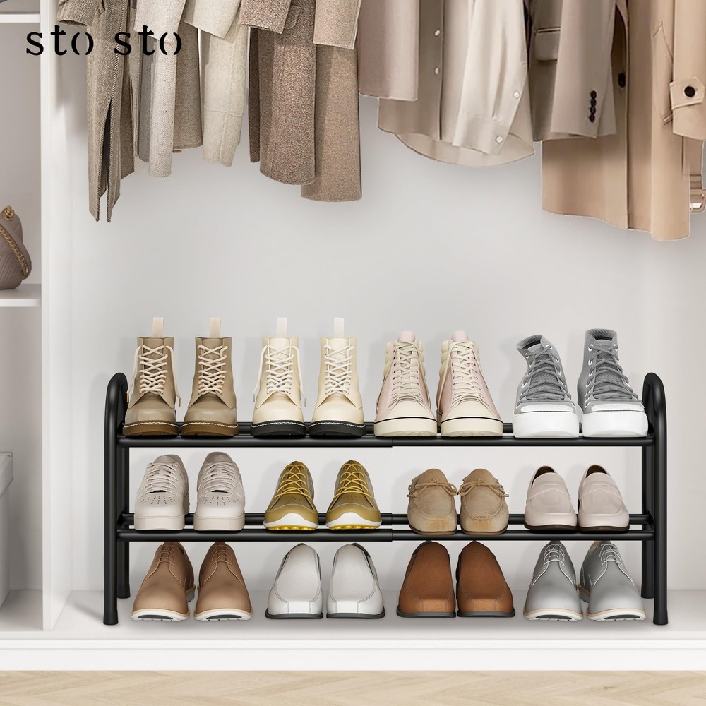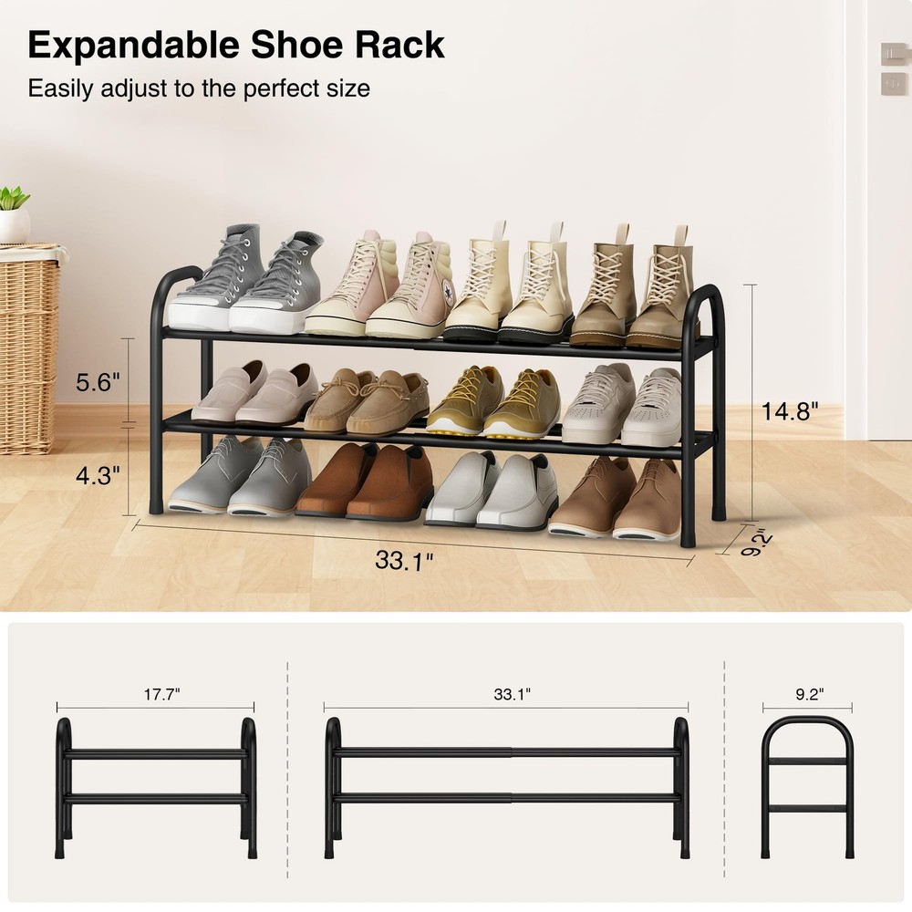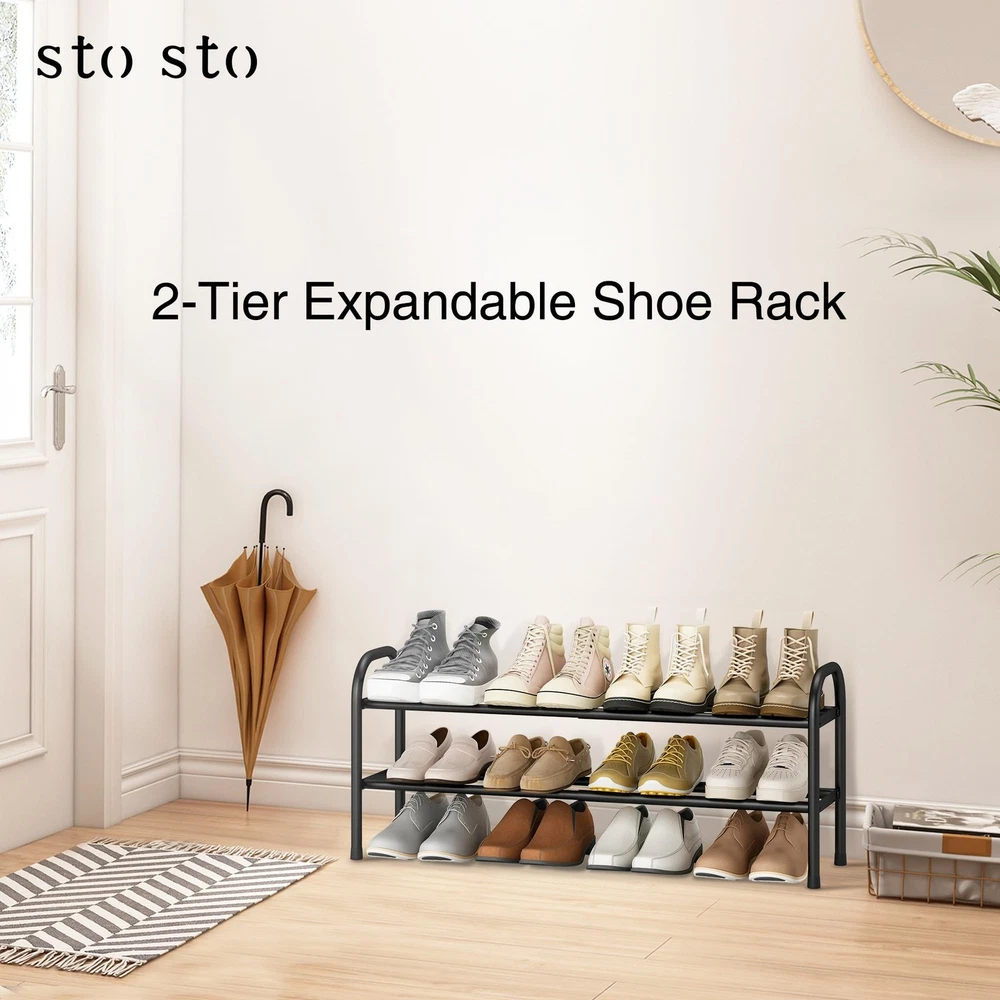 Home2-Tier Expandable Black Metal Shoe Rack Holds 12 Pairs Adjustable Storage