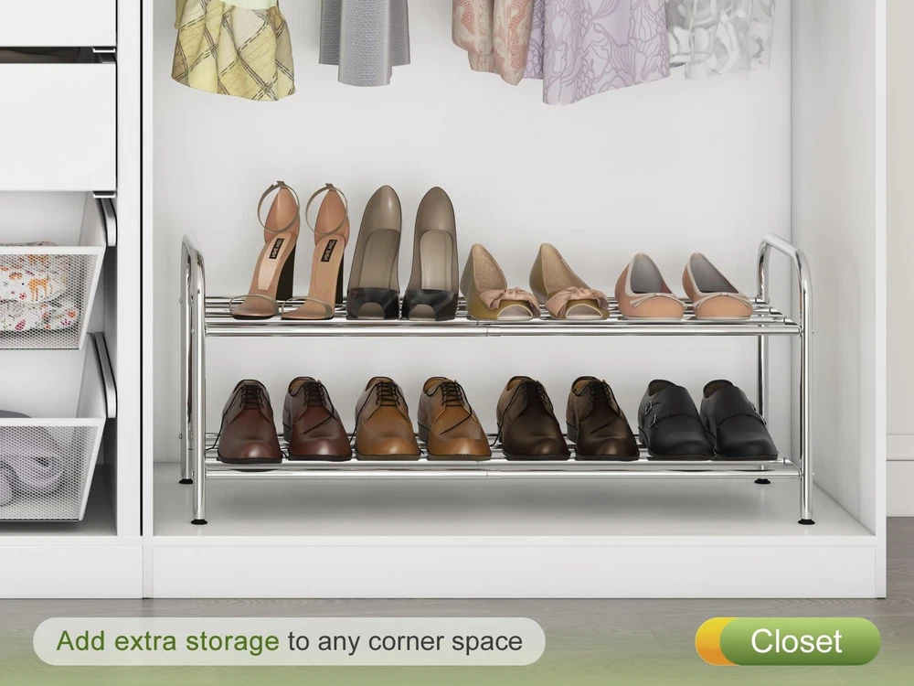 $ 62.12Expandable Stackable 3-Tier Metal Wood Shoe Rack 18 Pairs Storage Organization