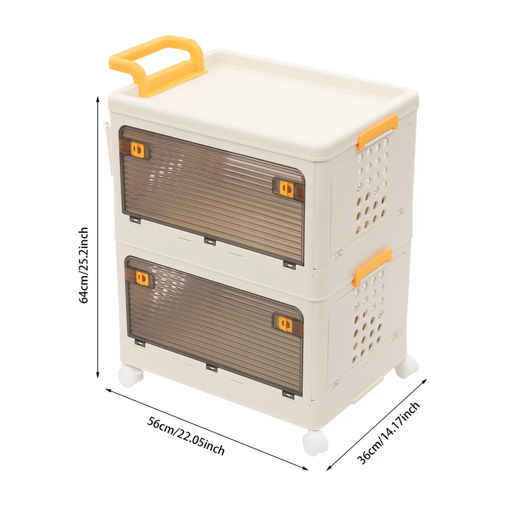 Specifications Material: PP Color: White Style: Modern Shape: Rectangle Mounting Type: Floor Standing Assembly Required: Yes Each Tier Load Capacity: About 40kg/88.18lbs Number of Tiers: 2 Number of Universal Wheels: 4(Two With Brakes) Product Size: 56*36*64cm/22.05*14.17*25.2in Package Size: 50*37*27cm/19.69*14.57*10.63in Gross Weight: 4.4kg/9.7lbs Net Weight: 3.4kg/7.5lbs Package Included 1* 2-tier Storage Bin 1* Small Storage Basket 4* Universal Wheels 2 Tiers Foldable Storage Cabinet Foldable and Movable Storage Box, Storage Bins Description To say goodbye to the dirty room and create a clean and high-value room, we designed this 2-tier storage bin for you. This 2-tier storage can effectively improve space utilization. It can be used to store clothes, children's toys, pet supplies, kitchen condiments, bathroom supplies, etc., which is economical and affordable, so buy and try it! Key Features Selected Material : High-class PP makes this product hard, environmentally friendly , odorless , dustproof , waterproof , and not easy to deform so that it can be used for a long time. Ample Storage Capacity : The 2-tier design provides plenty of space to organize and store a variety of items, such as clothing or household essentials, to keep your home tidy. The side basket can also hold keys and other small items, and the top platform can hold mugs, table lamps, vases, and more. It also helps children develop good organizing and storage habits from a young age. Thoughtful Design: The semi-clear door allows you to view the contents without opening the door, and the ventilation holes on the side effectively prevent odors and keep the interior fresh and dry. Easy to Access: The four-side door opening design and removable top allow you to access items from different angles. Strong Load-Bearing Capacity: The rectangular structure and sturdy material allow each tier to hold about 88.18 lbs, so you can use it with confidence. Space Saving : Its multi-tier design uses vertical space, making it easy to create storage space in just a small corner. Moreover, it can be folded into a smaller size when not in use, allowing for efficient storage and saving valuable space in your home or garage. Easy to Move&Fix: The top handle and 4 universal wheels (two with brakes) make this product easy to push and pull, move, and fix, which is very energy-saving. Simple Installation : Simple construction and complete accessories allow you to assemble it in a short time, saving time and effort. Nice Gift : Thanks to its large capacity and beautiful appearance, you can give this product as a housewarming gift or holiday gift to your family, colleagues, or friends so that they can enjoy a more convenient life. Simple Maintenance : Thanks to its smooth surface and simple construction, you can easily clean it with a soft cloth (not included). Details Smooth Edges : The smooth and burr-free edges not only take better care of your hands and clothes but also improve the aesthetics of the product. Raised Guardrail: The raised top design prevents items from falling. Buckle Design : The side buckle design ensures a secure connection between tiers, making it hard to detach. Application This product is suitable for a variety of environments such as bedrooms, study rooms, toy rooms, and offices. It's ideal for organizing clothing, toys, books, craft supplies, office supplies, snacks, and other items. Specifications Material: PP Color: White Style: Modern Shape: Rectangle Mounting Type: Floor Standing Assembly Required: Yes Each Tier Load Capacity: About 40kg/88.18lbs Number of Tiers: 2 Number of Universal Wheels: 4(Two With Brakes) Product Size: 56*36*64cm/22.05*14.17*25.2in Package Size: 50*37*27cm/19.69*14.57*10.63in Gross Weight: 4.4kg/9.7lbs Net Weight: 3.4kg/7.5lbs Package Included 1* 2-tier Storage Bin 1* Small Storage Basket 4* Universal Wheels Notes Please carefully check the dimensions before purchasing. Please use this product within the load-bearing range. Please note that this product does not contain clothes, toys, snacks, and other items. Please allow the slight color difference caused by the shooting light and 1-3 cm error due to manual measurement, and make sure you do not mind before ordering. Payment Delivery details Terms of sales About us Contact us Payment We accept ebay payment 。 Fees such as import duties, taxes are not included in the item price or shipping costs. These charges are the buyer's responsibility. Delivery details Shipping: 2-9 working days to: USA Terms of sales We maintain high standards of excellence and strive for hundred percent customer satisfaction. Feedback is very important to us. We hope that you contact us immediately before you give neutral or negative feedback, so that we can address your concerns. It is impossible to address issues if we do not know about them! About us Your satis faction is our ultimate goal. We work hard to earn your trust and future business. Our certified technicians have tested each item before shipping. The unit comes with 1 year limited warranty on all manufacturing defects. a) If you receive a defective item, you may return it or ask for a discount. Please contact us within 14 days after you receive the package. b) What you returned must be intact and in its original packaging as re? u. Customer is responsible for shipping costs of the returned item. c) We will cover the cost of shipping back t with the shipping rate indicated in the registration page. We will send you a new unit or refund the full payment you paid. Thank you. Contact us Business Hour Business Hour: Monday To Friday: 8:30 AM to 5:00 PM (Beijing China time) Due to time zones, our reply to your questions may not be immediately. But within above working time, we will reply your email within 24 hours. If it's non-workdays, please kindly be patient and wait till Monday. Please contact us with ebay message. Please feel free to contact us if you have any questions. Monday To Friday: 8:30 AM to 5:00 P