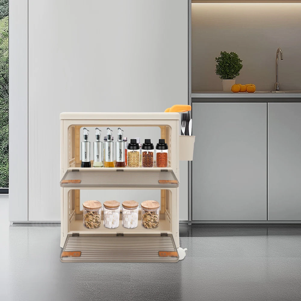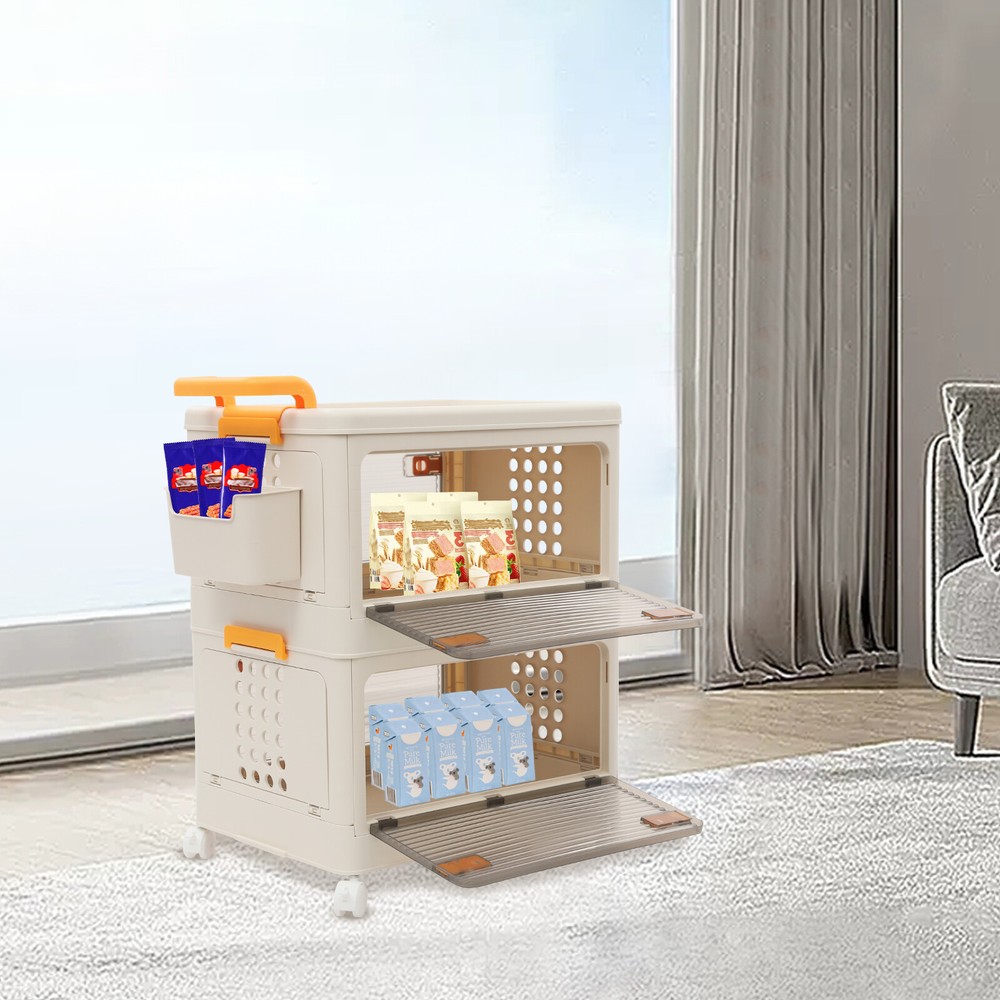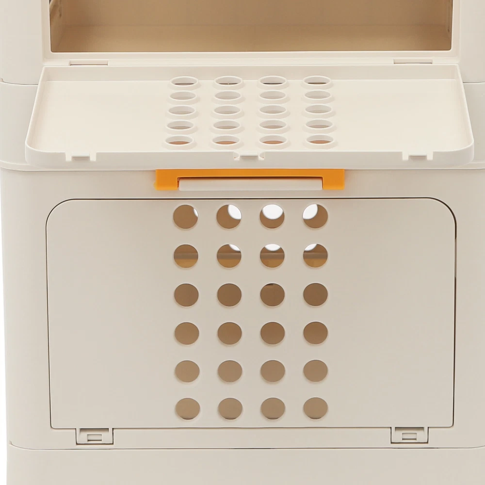 This storage cabinet is a game-changer for organizing small spaces! The sturdy PP construction holds up to 40kg per shelf, and the smooth-rolling wheels make it easy to move around. Love that it folds flat when not in use and comes with an extra basket—perfect for keeping everything tidy. Modern white design blends seamlessly into any room. Super easy to assemble and surprisingly spacious for its compact size. Highly recommend for anyone needing versatile storage!