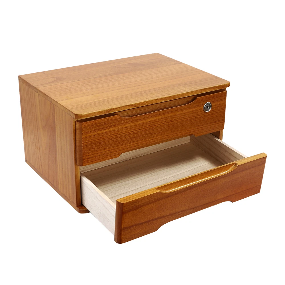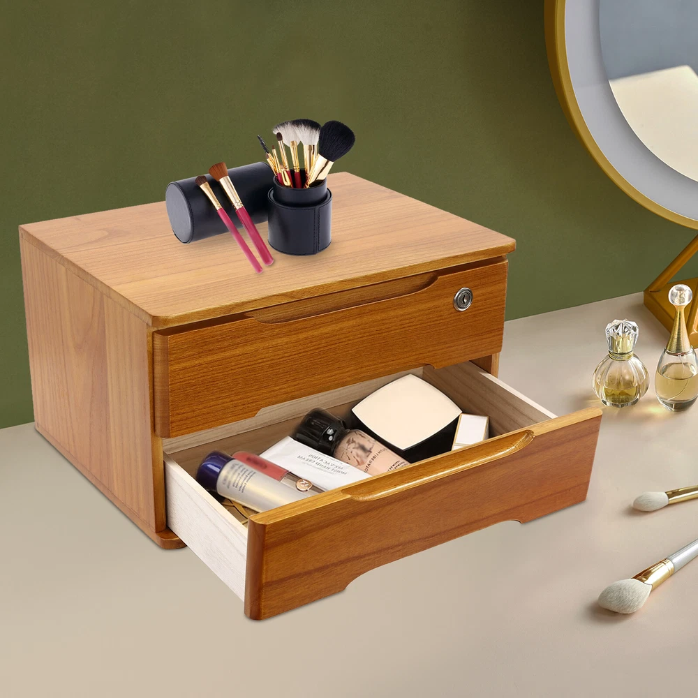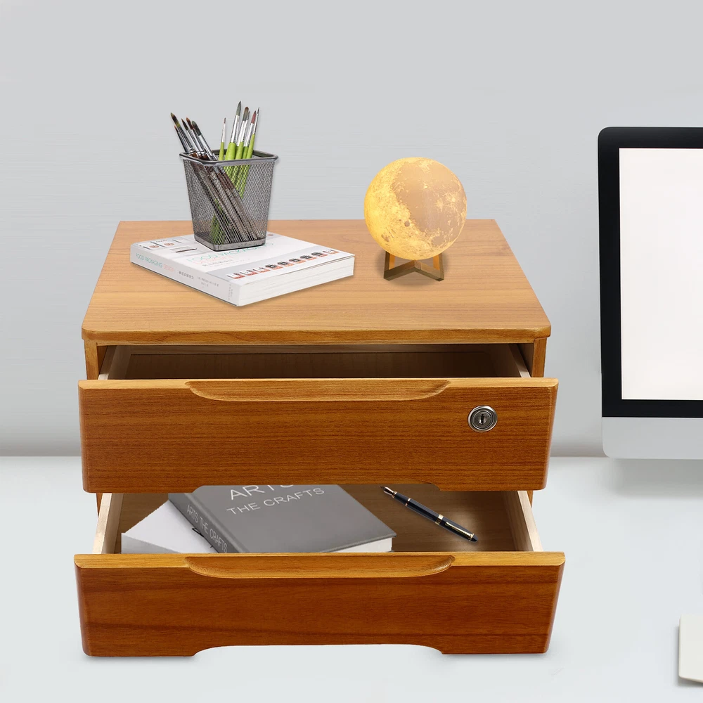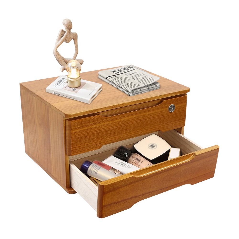 Application This product can be used in an office, study, bedroom, dresser, kitchen, etc. It is suitable for organizing documents, files, pens, notebooks, handy stickers, remote controls, staplers, cosmetics, greeting cards, tickets, business cards, stationery, jewelry, hair accessories, and so on. Specification Color: Wood Yellow Shape: Rectangle Style: Modern Material: Tung Wood Process: Spray Paint Assembly Required: No Number of Tiers: 2 Number of Locks: 1 Number of Keys: 2 Max. Load Capacity: About 30kg/ 66.14 lbs Gross Weight: 4kg/ 8.82 lbs Package Size: 45*33*27 cm/ 17.72*12.99*10.63 in Product Size: 39*30*21.5 cm/ 15.35*11.81*8.46 in Package Included 1* 2-Tier Organizer 2* Keys 4* Anti-slip Pads Description Do you feel annoyed by too many items on your desktop that are cluttered and unorganized? Our 2-tier organizer can help you solve this problem. This product is made of high-quality material, which ensures a long service life. The 2 drawers are convenient for you to organize different daily items, and the locking design effective ly protects your privacy. It can effectively help you reduce the pressure on your countertop, which is an ideal choice for you. Key Features Good Material: This product is made of high-quality tung wood with a spray painting process, which is hard, strong, anti-corrosion , not easy to deform, and has a long service life. Categorized Storage: The product has 2 drawers, so you can categorize and store your items in different drawers to give your desktop a neat look. In addition, the top can also be used to hold items, allowing you to maximize the use of your space. Protect Your Privacy: This product features the locking design that locks the drawer and can only be opened with the included key to protect your property. Strong Load-bearing Capacity: High-quality material and stable construction give the product a weight capacity of about 66.14 lbs , so you can store items on it with confidence. Save Space: This product is small in size ( 15.35*11.81*8.46 in ches) , fully utilizing vertical space, thereby reducing the burden on the countertop. Ready to Use: This product does not require assembly, and you can start using it once you receive it, saving the tedious installation process and making it more convenient. Effortless Cleaning: Thanks to the smooth surface and simple construction, you can easily wipe off the dirt on it with a soft cloth. Thoughtful Gift: This is an ideal gift for colleagues, friends, and family to help them organize their belongings and keep their desks tidy. Good Customer Service: We stand behind all our guests and look forward to assisting you with your purchase. It is our pleasure to answer your confusion and questions. The end of the story between us is not "we sell and you buy". Details Comfortable Handles: Each drawer has an ergonomic handle that is not only comfortable but also easy for you to pull the drawer. Smooth Edge: The rounded and smooth edges not only add to the aesthetics of the product but also improve the safety of use. Anti-slip Pad: It can keep the product stable and less likely to slip off while you use it. Application This product can be used in an office, study, bedroom, dresser, kitchen, etc. It is suitable for organizing documents, files, pens, notebooks, handy stickers, remote controls, staplers, cosmetics, greeting cards, tickets, business cards, stationery, jewelry, hair accessories, and so on. Specification Color: Wood Yellow Shape: Rectangle Style: Modern Material: Tung Wood Process: Spray Paint Assembly Required: No Number of Tiers: 2 Number of Locks: 1 Number of Keys: 2 Max. Load Capacity: About 30kg/ 66.14 lbs Gross Weight: 4kg/ 8.82 lbs Package Size: 45*33*27 cm/ 17.72*12.99*10.63 in Product Size: 39*30*21.5 cm/ 15.35*11.81*8.46 in Package Included 1* 2-Tier Organizer 2* Keys 4* Anti-slip Pads Notes Please allow the slight color difference caused by the shooting light and the 1-3 cm error due to manual measurement, and make sure you do not mind before ordering. On Aug 17, 2025 at 20:12:16 PDT, seller added the following information:
