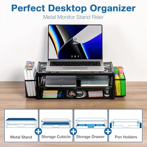 Menu 1. We require immediate payment. 2. We currently accept payment via eBay managed payments only. 3. Once payment is cleared, we will dispatch your shipment within 1-3 business days. Please refer to the "Shipping" tab for more information regarding shipping speed to your destination. 2-Tier Monitor Stand for Desk, Metal Computer Monitor Riser with Drawer and 2 Pen Holders, Laptop Riser Mesh Desk Organizer for Home Office Supplies Desktop Accessories, Black Product description ❥【Ergonomic Posture】Elevate your monitor or laptop to eye level with this updated metal desktop computer riser with drawer storage, so that you can maintain a more ergonomic posture, reducing neck and shoulder strain while you work, and keep your workspace organized and clutter-free. ❥【Organized Workspace】The 2-Tier monitor riser for desk includes one sliding tray + one sliding drawer with 3 compartments + 2 hanging pen holders, providing ample storage space for various office desk accessories, allowing for easy categorization and improving work efficiency. ❥【Durable and Ventilated】Made of solid steel metal, this computer stand is sturdy (33 lbs capacity), stable, and not prone to dent or damage, and is easily cleaned with a soft cloth. Its mesh ventilated design increases cooling and airflow for your laptop to increase its performance. ❥【Sleek and Versatile】Durable two-tier desk organizer can be used as a laptop or printer stand, monitor riser, or overall computer organizer with storage for all your office supplies and essentials. It has compact size, sleek design with clean lines, adding a contemporary aesthetic touch to any desk decor, ideal for home and office organization. ❥【Satisfying Your Needs】The 2-tier computer stand desk organizer is the right size for maximizing space. Easy assembly and wide compatibility. Reassuring purchase with 100% satisfaction service and 90 days return policy. Start an effective new year with an organized workspace now! PLEASE MESSAGE US IF YOU HAVE ANY OTHER QUESTIONS, AND MANY THANKS FOR READING ALL OF THIS. Copyright ©#. All Rights Reserved.