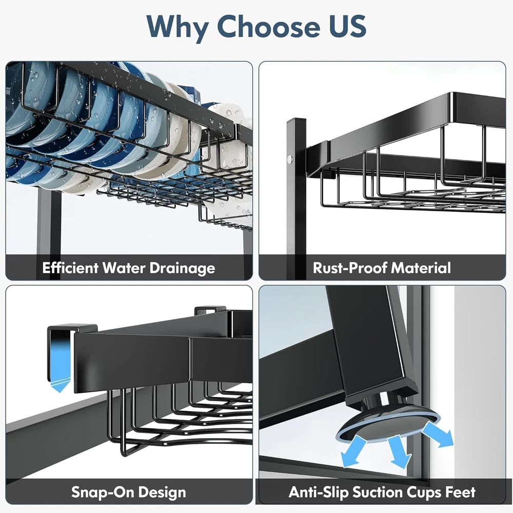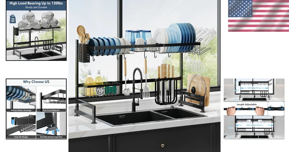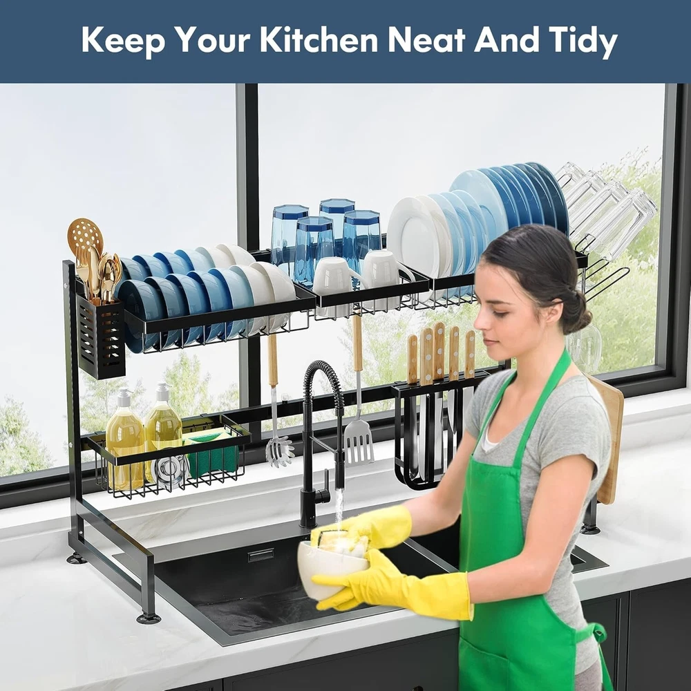 2-Tier Over Sink Dish Drying Rack: Adjustable Stainless Steel Kitchen Organizer