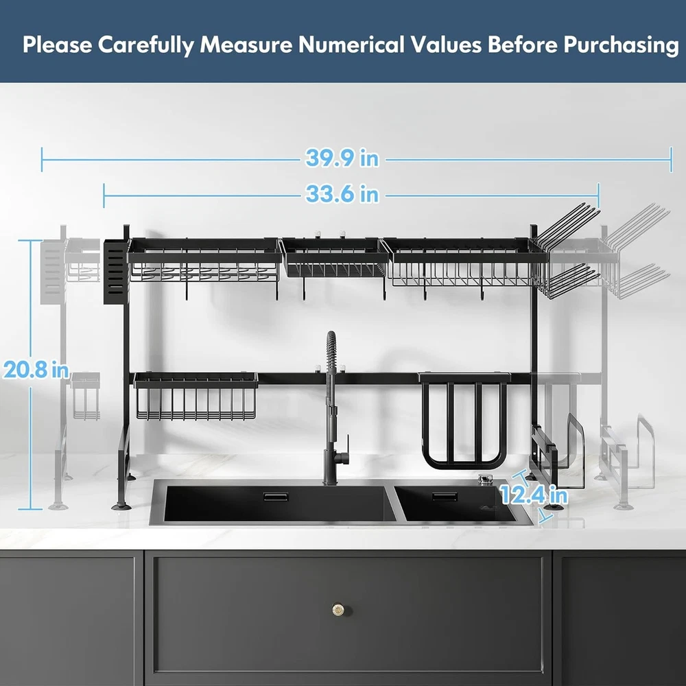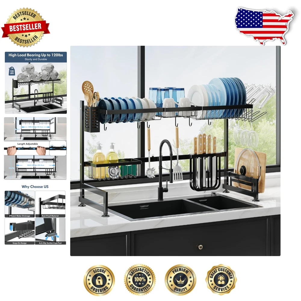 2-Tier Over Sink Dish Drying Rack: Adjustable Stainless Steel Kitchen Organizer ‹ › ‹ › ‹ › ‹ › ‹ › ‹ › ‹ › ‹ › ‹ › 2-Tier Over Sink Dish Drying Rack Adjustable Stainless Steel Kitchen Organizer Features: Large capacity accommodating a variety of tableware: bowls, plates, knives, wine glasses, cutting boards, sponges, brushes, and more. Adjustable length from 33.5 inches to 40 inches to fit most household sinks. Built with high-quality stainless steel and a protective coating for durability and rust resistance. Water drains directly into the sink, preventing water accumulation on the countertop. Easy installation with detailed guides and videos available. Sleek, waterproof, and fingerprint-resistant black coating for effortless maintenance. 3 multifunctional baskets along with a utensil holder, cutting board holder, knife holder, cup holders, and 6 practical hooks. Benefits: Maximizes space above the sink while saving valuable countertop space. Adapts to various sink sizes and configurations with impressive flexibility. Ensures automatic drainage for a mess-free kitchen environment. Sturdy construction promises long-term use and functionality. Easy to clean, maintaining the elegance of your kitchen. Versatile design allows for organized and efficient kitchen storage. Why choose our 2-Tier Over Sink Dish Drying Rack? Transform your kitchen with our elegant 2-Tier Over Sink Dish Drying Rack. Specifically designed to maximize space and functionality, this adjustable rack gracefully accommodates a wide range of kitchen essentials while ensuring easy access and efficient drying. With a robust stainless-steel construction and an exquisite black finish that resists fingerprints, it's not merely an organizer; it's a statement piece for your kitchen. Embrace innovation and efficiency today – order your 2-Tier Over Sink Dish Drying Rack now and elevate your culinary space! Shipping Free & Fast Shipping - We offer free shipping to most of the USA with a normal delivery time of 3-7 days. However, due to the current situation, additional delivery time (up to 3 weeks) may be required for some items. Alternative Carriers - We may use alternative carriers (e.g. USPS, FedEx, UPS, etc.) to ensure your package arrives safely and on time. Due to the use of multiple carriers, we are unable to provide a tracking number automatically. Handling Time - Orders are processed and shipped within 1-2 business days of receiving cleared payment. Shipping Restrictions - Shipping to Alaska, Hawaii, Puerto Rico, Guam, and other US territories may incur shipping charges or delivery restrictions. Please contact us before ordering, or your order can be refunded/cancelled. State Restrictions - There may be restrictions based on your state of purchase. For example, certain items may not be shipped to California due to state regulations. Contact for Tracking Updates - If you require tracking updates or have any concerns about the delivery of your order, please feel free to contact us, and we will be happy to assist you. Return 30-Day Hassle-Free Returns - We want you to be completely satisfied with your purchase. If you are not, you can return the item within 30 days of receiving it for a full refund or exchange. Easy Return Process - To start a return, simply contact us and we will provide you with a prepaid return shipping label and detailed instructions. Restocking Fee - There are no restocking fees for returns. However, the buyer is responsible for return shipping costs if the return is not due to a seller's error. Refund Processing Time - Refunds will be processed within 5 business days of receiving the returned item in its original condition. Payment We accept all major credit cards, PayPal, and Apple Pay for your convenience. Your payment information is secure and encrypted to ensure a safe and seamless transaction. Please complete your payment within 3 days of purchase to avoid any delays in shipping. Feedback Your feedback is extremely important to us. We strive to provide the best products and customer service possible. If you are satisfied with your purchase, please take a moment to leave us a positive review. If you have any concerns or issues with your order, please contact us before leaving negative feedback. We are committed to resolving any problems and ensuring your satisfaction. Contact Us If you have any questions or concerns, please feel free to reach out to our customer support team. You can contact us through the eBay messaging system. We are available Monday to Friday, 9:00 am to 5:00 pm EST, and we will do our best to respond to your inquiry within 24 hours. Buy it now and enjoy a pleasant shopping experience! UPC: Not Set Unit Quantity: 5 pounds Material: Stainless Steel Features: Adjustable,Easy to Clean,Multipurpose Mounting: Wall Mounted Set Includes: Knife holder,Utensil holder,Cup holders,Cutting board holder Department: Unisex,Adults Brand: Unbranded Item Height: Over Sink Dish Drying Rack Item Length: Over Sink Dish Drying Rack Item Width: Over Sink Dish Drying Rack Type: Dish Drying Rack Color: Black Size: Large Number of Shelves: 2 Number of Compartments: 6 Shape: Rectangular Number of Tiers: 2 MPN: Not Set Style: Modern Rack Type: Pull Down Country/Region of Manufacture: Not Set Wood Tone: None Item Depth: 12.4 in Item Diameter: Not Set Capacity: Not Set Capsule/Pod Capacity: Not Set Item Weight: 5 pounds Model: Not Set Unit Type: lb Personalize: Not Set