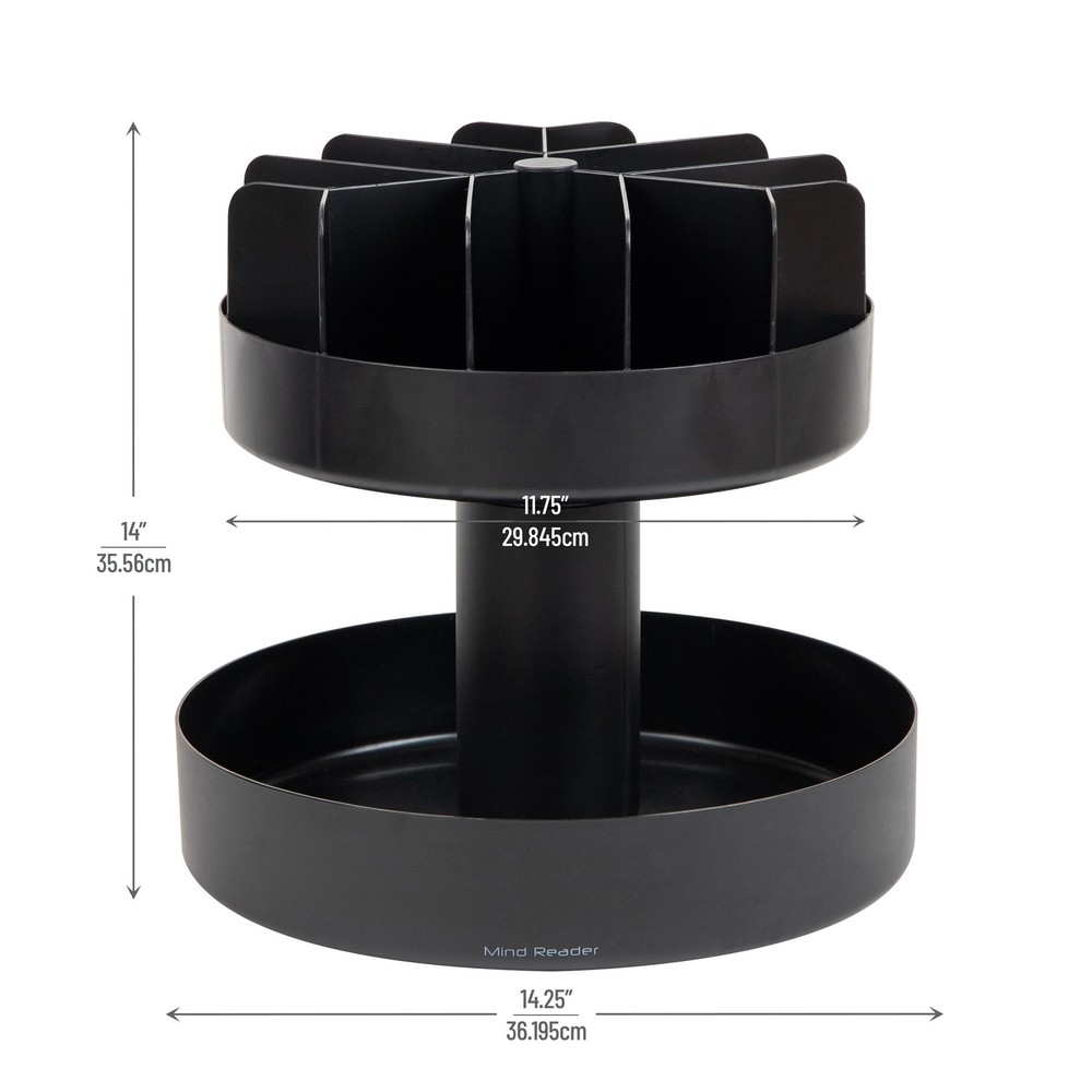 Part Number: Snackcar-Blk ISBN: 0887530005343 EAN: 0887530005343 Maximum Weight Recommendation: 25.0 Package Dimensions LxWxH: 15.0x14.3x8.0 Inches Item Display Weight: 6.0 Item Shape: Round Material: Plastic Size: 2-Tier UPC: 887530005343 Item Height: Does not apply Type: Does not apply Brand: Mind Reader Color: Black Item Width: Does not apply Unit Count: 1.0 Model Name: 2-Tier Snack Carousel, Countertop Organizer Weight: 4.8 Pounds Item Length: Does not apply Model Number: Snackcar-Blk Style: Organizer Item Package Quantity: 1 Customer Package Type: Standard Packaging gtin13: 0887530005343