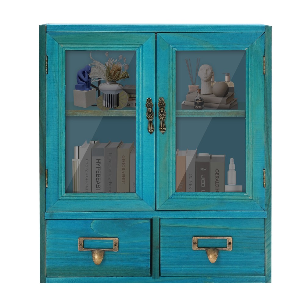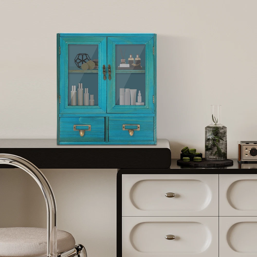 Desktop Drawers Storage Cabinet 16 Drawer Cabinet Wooden Medicine Cabinet Blue