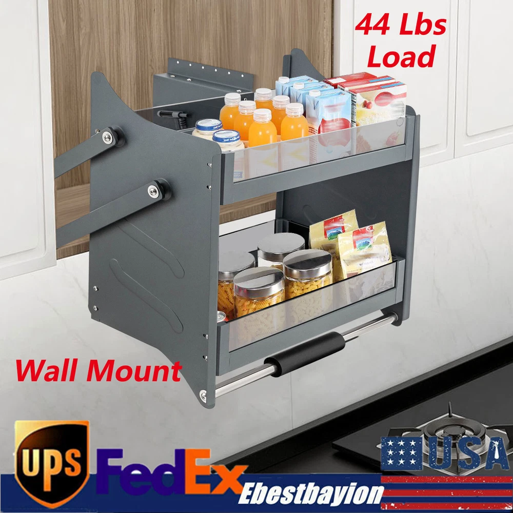 Package Included 1* Pull-down Cabinet Shelf 1* English Instruction 2-Tire 24" Pull Down Shelf Upper Kitchen Wall Cabinet Storage Organizer Cabinet 2-Tire 24" Pull down Shelf Upper Kitchen Wall Cabinet Storage Organizer Cabinet Application It Can Be Used As a Dish Rack, Spice Rack, and Food Storage Rack in Kitchen/bar/Cafe Cabinets, Pantries, Closets, and Other Upper Cabinets to Store Snacks, Bowls, Plates, Spices, Spice Bottles, and Other Kitchen Items. It Is Made for a Cabinet of Inner Width≥23.6''. the Size of the Fully Installed System Is 23.6''W X 10.6'' D X 22.04''H. and the Load-bearing Capacity of the Cabinet Should Be More than 44 Lbs. Specifications Model: 600frame Color: Black Style: modern, Pull-out Shape: rectangular Room Type: kitchen Shelf Type: Sliding Shelf Age Range: Adult Mounting Type: Wall Mount Material: Tempered Glass, Aluminum Alloy, Steel Process: Cutting, Nano Coating, Plastic Spraying Special Feature: Damping Hydraulic Rod Applicable Cabinet: Width: 60cm/24inch; Depth: ≥27cm/10.6inch; Height: ≥56cm/22.04inch; Load-bearing Capacity : ≥20kg/44 Lbs Three-gear Adjustment: 1-5kg/2.2-11.02 Lbs, 5-7kg/11.02-15.4 Lbs, 6-12kg/13.22-26.4 Lbs Max. Load-bearing Capacity: 12kg/26.4 Lbs Right Switch Loaded: 3-5kg/ 6.6-11.02 Lbs Left Switch Loaded: 1-3kg/2.2-6.6 Lbs Minimum Distance from Cabinet : 5.5cm/2.16inch Double-lever Lever Thickness: 5.5cm/2.16inch Layer Plate Thickness: 6mm/0.23inch Side Plate Thickness: About 1.3mm/0.05inch Guardrail Height: 8cm/3.15inch Wall Bracket Thickness: 5cm/1.96inch Wall Bracket Size(W*H): 21*30.5cm/8.27*12inch Interlayer Spacing: 27cm/10.63inch Product Size: 56.4*27*55cm/22.2*10.63*21.65inch Package Size: 57*57*28cm/22.44*22.44*11.02inch Net Weight: 13kg/28.66 Lbs Gross Weight: 15kg/33 Lbs Package Included 1* Pull-down Cabinet Shelf 1* English Instruction Description Installing a 2-Tier Pull-down Shelf in Your Cabinet Can Effectively Make Full Use of Your Upper Cabinets and Keep Your Kitchen Tidy, Bringing a Comfortable Cooking Environment to You. Our Shelf, Adopting an Advanced Pneumatic Damper System with a Sturdy Structure, Is a Space Saver, Stylish Decor, and a Good Helper That Helps You to Get Items to Higher Places with less Effort. Key Features Build to Last: This Pull-down Cabinet Shelf Mainly Adopts Tempered Glass and Aluminum Alloy with Cutting and Nano-coating Processes, Making It Anti-rust , Crush-resistant , and High-strength. Smooth Pulling: Advanced Pneumatic Damper System with Strong Tension Spring Ensures Easy Pull-down and Stable Push-back Even for Teenagers and Elderly People. You Can Press the Adjusting Button Inwards and Lock/Unlock It Clockwise/Counterclockwise to Strengthen/Reset the Pull-down Resistance , Thus Balancing Resistance to Prevent Falling Too Fast. Adjustable Bearing: the Three-gear Assistance Adjustment(2.2-11.02 Lbs, 11.02-15.4 Lbs,13.22-26.4 Lbs) Through the Adjusting Button on the Right and Left Sides Can Meet Your Different Storage Needs. Considerate Design: the 1.96" Thick Wall Brackets Are Thick Enough to Elude Face-frame Stile and Most Types of Hinges. Its Pull-down Design Also Makes This Shelf Support Suspended Installation, Sliding Doors, Upward Sliding Doors, and Double Doors. Space-saving: the 2-Tier Design with Each Layer 22.2*10.63 Inches in Size Is Conducive to Making Full Use of Your Upper Cabinets, Offering More Space for Your Kitchen, and Avoiding Space Waste. Sturdy Construction : the 2.16" Thickened Double-lever Levers, 1.96" Thick Wall Brackets, 0.23" Thick Layer Plates, and Plastic Sprayed Steel Side Plates, Along with Firm Fixing with Screws, Ensure Sturdy Construction and Strong Load-bearing Capacity. Stylish Appearance: the Rectangular Shelf with a Curved Streamline Design and Versatile Black Color, Along with the Strip Pattern That Increases Its Texture, Gives This Shelf a Stylish and Modern Appearance That Fits Any Room Decor. Ready to Use&Install : with the Simple Structure and an English Manual, You Can Install and Use This Pull-down Cabinet Shelf Directly Without Tedious Assembly, Saving You Labor and Time. Easy to Clean: Because of the Smooth Surface with Nano-coating Treatment, You Can Wipe the Dirt from This Shelf with a Wet Cloth. Protective Package: to Prevent the Product from Being Damaged and Bumped During Transportation, We Packed It with Foam to Protect Your Products to the Maximum Extent Possible. Buy with Confidence: We Have Been Working Hard to Provide Better Service and Quality for Our Customers, Which Is Our Goal. If There Is Any Problem with Our Products, Please Contact Us in Time. Details Non-slip Handle: the Humanized Handle with a Silicone Wrap Gives You a Comfortable Grip and Ensures Easy Pull-down of This Shelf Without Slipping. Heightened Guardrail: the Heightened Visual Guardrail(3.15") Allows for a Clear View of the Items, Makes It Convenient to Access, and Prevents the Items from Falling off. Round Edge: the Burr-free and Round Edge Adds Beauty to This Shelf and Prevents Items/Your Hands from Scratching. Notes Please Make Sure That Your Cabinet Size Is Suitable Before Purchasing. Please Check the Parts and Read the Instruction Carefully Before Mounting. The Maximum Load-bearing Capacity of the Basket Is 26.4 Lbs. Please Pull out the Buttons When the Basket Is Empty. Pull in the Left and Pull out the Right Button When the Basket Loads 1-5kg/2.2-11.02 Lbs. Pull out the Left and Push in a Tight Button When the Basket Loads 5-7kg/11.02-15.4 Lbs. Push in the Left and Right Buttons When the Basket Loads 6-12kg/13.22-26.4 Lbs. for the Weight of Kitchenware, Please Refer to the Bottle or Package Display. Please Do Not Control Buttons When the Basket Is Moving. Please Control the Buttons After They Go Back Cabinet. Please Do Not Use Hard Tools to Clean the Shelf, Which May Scratch the Surface of the Product and Affect Its Appearance of It. Please Allow the Slight Color Difference Caused by the Shooting Light and 1-3cm Error Due to Manual Measurement, and 