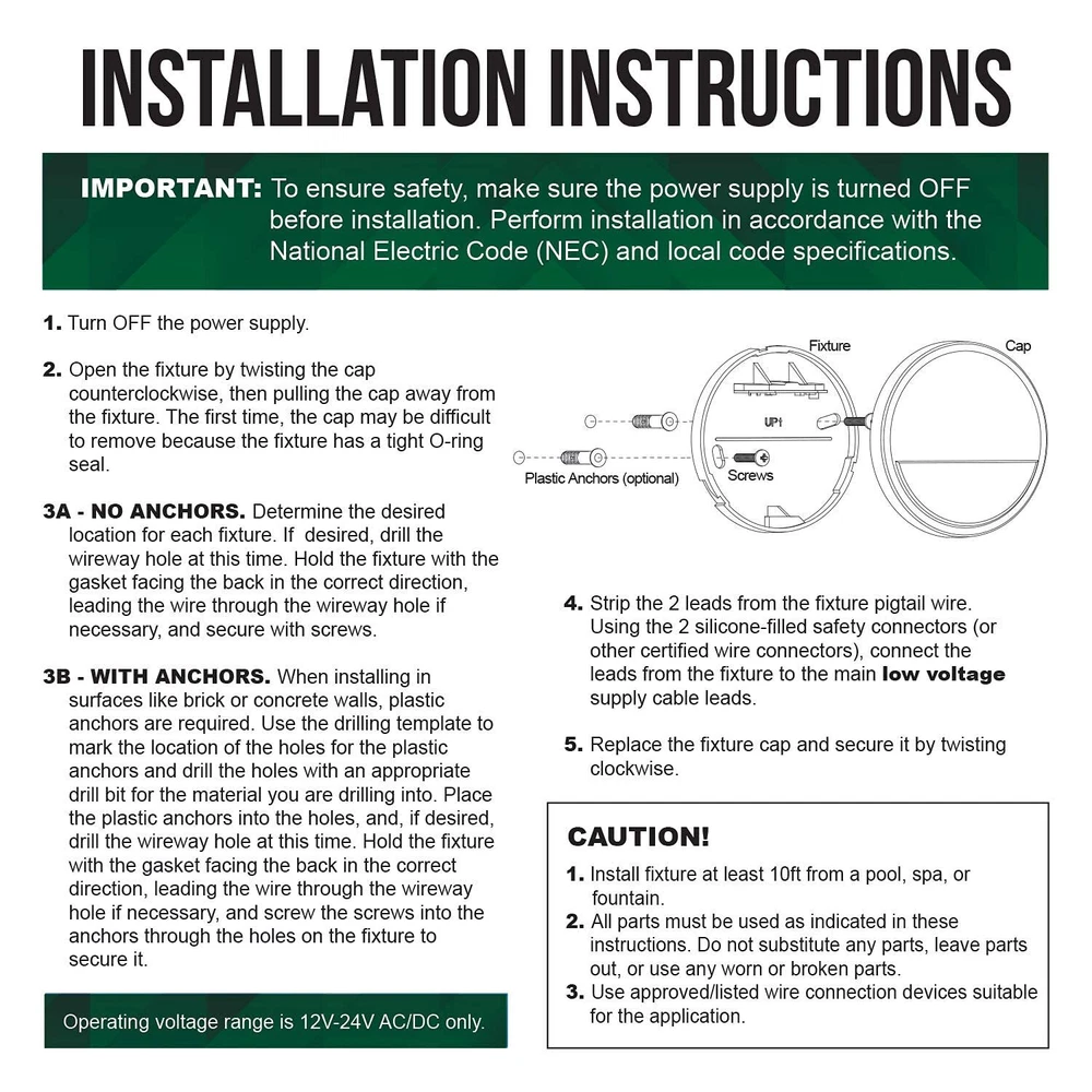 Low Voltage LED Deck Light, Landscape Step Stair Railing Lights with 2W Integrated LED Chips, Die-cast Aluminum 12V AC/DC Accent Lighting Fixtures with White Powder Coated Finish, Pack of 4 Solid die-cast aluminum housing with white powder coated finish provide great durability against environment 9-15V AC/DC working voltage, safe to use with most 12V landscape lighting systems Easy installation, no screws at the surface, pre-wired 39" UL listed SPT-1W 18AWG leads. (This fixture is only for downlight installation.) 2W 2700K Integrated LED chip provides comfortable warm white light, perfect for decks, stairs, and walkways etc. This product is covered for 2 years from the date of original purchase, suitable for wet locations Shipping We offer FREE shipping on all orders! We ship within Three business days of payment, usually sooner. We use a selection of shipping services such as UPS, FedEx, USPS etc. We only ship to the lower 48 states, no APO/FPO addresses or PO Boxes allowed. Local pickups and combined shipping options are not provided at this time. Return You can return a product for up to 30 days from the date you purchased it. Any product you return must be in the same condition you received it and in the original packaging. Please keep the receipt. Payment We accept payment by any of the following methods: PayPal Please pay as soon as possible after winning an auction, as that will allow us to post your item to you sooner! Feedback Customer satisfaction is very important to us. If you have any problem with your order, please contact us and we will do our best to make you satisfied. Contact Us If you have any queries, please contact us via ebay. We usually respond within 24 hours on weekdays. Please visit our eBay store to check out other items for sale! Thank you for shopping at our store.