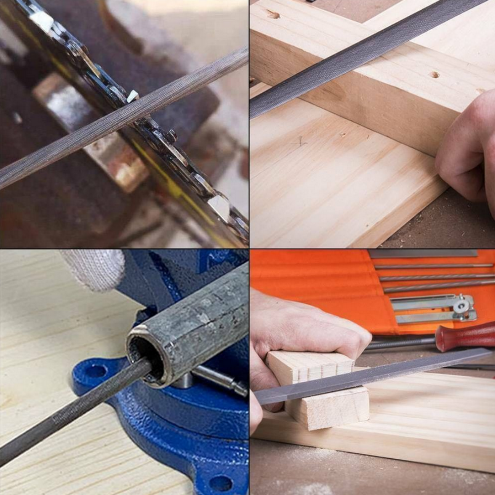 Features: 1、Made up of good material, have enough long lasting and durable 2、Chainsaw Sharpening Tool Kit is used to sharpen your chainsaw easily and quickly. 3、Comes with a pouch, easy to store and carry. 4、Easy and convenient to sue. 5、Good working condition, easy to install. 6、Specifications 7、Product name: Chainsaw files tool 8、Color: As is shown 9、Material:Metal 10、3 round files sizes: 5/32"(4.0mm) , 3/16"(4.8MM) , and 7/32"(5.5MM) for a pitch of 3/8"LP , 0.325", and 3/8" Package list 6 x Round Files 2 x Flat File 2 x Hardwood Handle 2 x Screw On File Guide 2 x Bar Groove Cleaner 2 x Carrying Pouch 2 x Depth Gauge Tool 2 x Quick Check Gauge Note Transition: 1cm=10mm=0.39inch Due to the light and screen difference, the item's color may be slightly different from the pictures. Please allow 0.5-2 cm differences due to manual measurement.