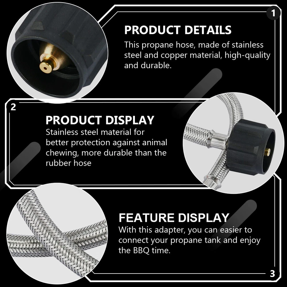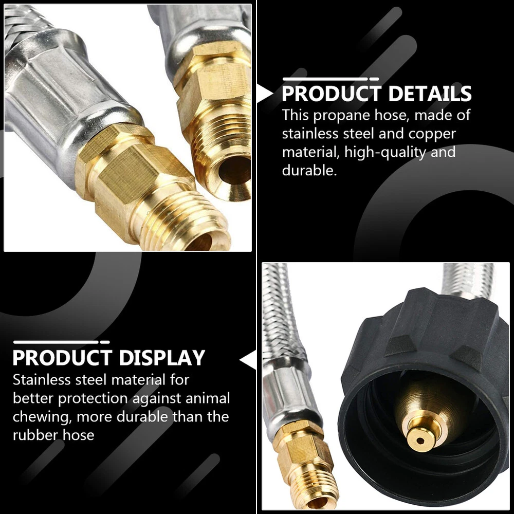 eBay 2X 12" Pig Tail LP Propane Gas Hose Tank Cylinders Connector RV Trailer Camper Description Description Are you looking for a professional propane hose for RV car? Then take a look at this durable and safe propane hose made of premium materials. It is convenient and practical, simple to install, can well meet your needs, and is a very high-quality replacement accessory. Features -Color: As Shown. -Material: Stainless steel, copper. -Size: About 30.40X3.50X3.50cm/ 11.95X1.38X1.38in. -Rated value: 200,000 BTUs per hour. -Type: QCC1/Type1 connector. -Connection thread: Type 1 connection and 1/4" inverted male flare. - This propane hose, made of stainless steel and copper material, high-quality and durable. - Stainless steel material for better protection against animal chewing, more durable than the rubber hose. - Stainless steel hose body and copper end joints provide a safe and sealed connection. - Multi-functional and versatile, suitable for most propane tanks, portable to use. - With this adapter, you can easier to connect your propane tank and enjoy the BBQ time. Package includes 2 x RV Propane Hoses Product Highlights This propane hose, made of stainless steel and copper material, high-quality and durable. |Stainless steel material for better protection against animal chewing, more durable than the rubber hose.|Stainless steel hose body and copper end joints provide a safe and sealed connection.|Multi-functional and versatile, suitable for most propane tanks, portable to use.|With this adapter, you can easier to connect your propane tank and enjoy the BBQ time. Payment Shipping Returns Contact Us We Accept PayPal Only. Please note we ship within 3 business days once payment is cleared. We only ship item to your PayPal verified address. Unpaid case will automatically open after 7 days, And please don’t worry, it won’t impact your account, it will be closed auto in 3 days. if you want cancel the transauction,please contact us within 7 days. 1.Items will be sent out in 24-48 hours on payment received from Monday to Friday. Orders during weekends and holidays will be posted in the following working day. 2.Shipping time is based on the item location. -Items located in UK will be posted by /Yodel/ and delivered within 3-7 business days. -Items located in China will be posted by China post Air Mail and delivered within 15-20 business days. There will be a tracking number when the payment for the goods is higher than £20. 3.Please make sure your shipping address and the order information is correct before placing an order. We will not be responsible for item loss due to wrong or unknown address. 4.International buyers are responsible for duties and customs fees. 1.In our store, you will enjoy 30 days return/refund guarantee (Excluding misuse of the item and damaged item). 2.If the item you received is faulty, damaged or incorrect, or any further problems, you can return it for replacement or refund, please contact our customer service on within 30 days from item received. 3.For damaged items on arrival, please contact us immediately, sending us an email with a photo is preferred. We will offer solutions to such cases. Full refund or replacement will be guaranteed. Customer is very important to us, our goal is to earn 5 star positive feedback on every ! We would appreciate the chance to correct any problems before posting anything other than 5 stars positive feedback. So if for ANY reason you are not happy, please contact us directly through “My Massage” or "Ask Seller Q". We will get back to you as soon as we are available. We are always stand-by to help for any questions or concerns.
