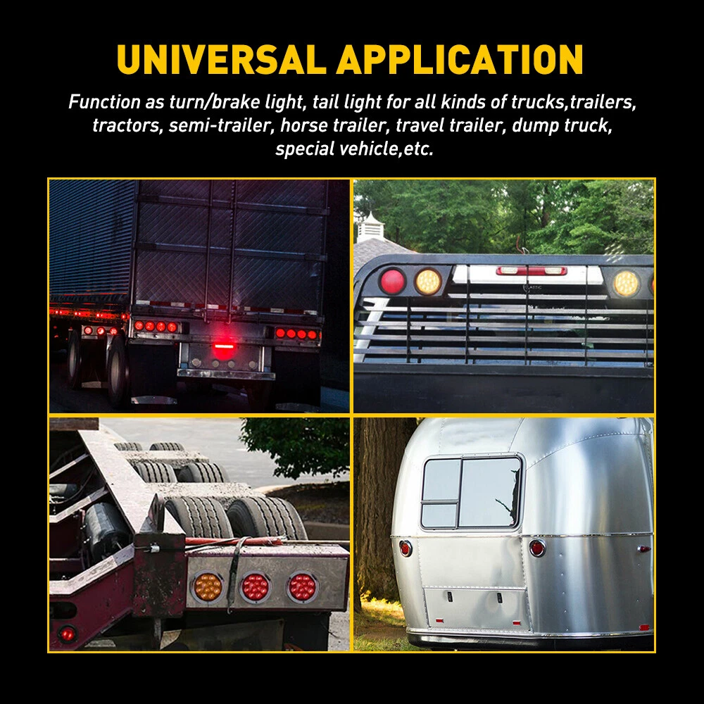Specification Color: Red Voltage: 12V Number of Bulb: 12 LED Material: ABS+PC+Rubber Waterproof rate: IP67 Outer Diameter: 130mm/5.1 inch Inner Diameter: 105mm/4.1 inch Function: Stop/ Turn/ Tail Light/ Backup Reverse light Placement on Vehicle: Front/Rear, Left/Right Suitable model: Universal for Trucks, trailers, tractors, semi-trailer, Dump Truck, bus, boat, special vehicle, and etc. Fits for heavy duty trucks like Peterbilt, freightliner, international ,Kenworth, mack, and so on Wire Connection: Black wire : low brightness (red) Red wire : high brightness (red) White wire : negative pole Features: 2X 4"inch Round LED Truck Trailer Stop Tail Turn Brake Lights Waterproof 24-LED Specification Color: Red Voltage: 12V Number of Bulb: 12 LED Material: ABS+PC+Rubber Waterproof rate: IP67 Outer Diameter: 130mm/5.1 inch Inner Diameter: 105mm/4.1 inch Function: Stop/ Turn/ Tail Light/ Backup Reverse light Placement on Vehicle: Front/Rear, Left/Right Suitable model: Universal for Trucks, trailers, tractors, semi-trailer, Dump Truck, bus, boat, special vehicle, and etc. Fits for heavy duty trucks like Peterbilt, freightliner, international ,Kenworth, mack, and so on Wire Connection: Black wire : low brightness (red) Red wire : high brightness (red) White wire : negative pole Features: *High brightness: Each led light has 12 high quality LEDs to output a super bright light, which sealed with a rubber grommet. *Superior material: Durable PC lens with rubber grommet housing welded together to ensure a permanent and water-proof seal. *Waterproof: The tail light is highly silicon sealed with an IP67 waterproof rating, which works even under extreme conditions such as rain and snow. *Easy to install: Come with rubber grommet & plug,drilling and hardwiring are not required *Wide application: Compatible for trucks, trailers, tractors, semi-trailer, Dump Truck, bus, boat, special vehicle, and etc. Fits for heavy duty trucks like Peterbilt, freightliner, international ,Kenworth, mack, and so on Note: Please check the detail information carefully before purchasing Please allow 1-2mm in size measurement chart for variance due to manual measurement Please excuse us from any possible typos and unintentional misinterpretations Your satisfaction is our utmost concern, please feel free to contact us for any questions and concerns Package Include: 2x 4" 12 LED Round Tail Lights Item Specifics Product Name Red LED Marker stop turn signal tail light Dimension 4 inch Fit for For Pickup,truck trailer,boat,Lorry,Van,caravan Certifications DOT SAE Lens Color Red Brand AUXITO Bulb Type Tail Light Manufacturer Warranty 2 Years Feature For Peterbilt FREIGHTLINER KENWORTH etc. Application Universal For Any 12V Vehicles Heavy Duty Trucks Position Stop Turn Tail Marker Clearance Light Lamp Waterproof IP68 Manufacturer Part Number WD-4in-2R Placement on Vehicle Front Rear Left Right Inner Outer Fitment Type Direct Replacement Lighting Technology LED Warranty 2 Year Outer Diameter 130mm/5.1 inch Inner Diameter 105mm/4.1 inch Material ABS PC Rubber Number of Bulb 12 LED Function Stop/ Turn/ Tail Light/ Backup Reverse light Fits for 1 Trucks, trailers, tractors, semi-trailer, Dump Truck, bus, boat Fits for 2 special vehicle heavy duty trucks Fits for 3 Peterbilt, freightliner, international ,Kenworth, mack Package Include 2x 4" 12 LED Round Tail Lights Warrranty 1Year Payment 1. Instant PayPal payment is the preferred method of payment. We also accept payment via PayPal, DebitCard, Visa, MasterCard, Discover. 2. Before payment,Please keep the consistency of Paypal address and ebay address. 3. Quantity orders are welcome! Shipping 1. All items will be shipped in 24 hours after receiving your payment . 2. We ship this item to US only via USPS first class mail. It usually takes 3-6 working days to deliver. Returns 1. We offer free return & money back guarantee. If you are not satisfied with your purchase for any reasons, you can return the item for refund or replacement/exchange. All returns must include the original packaging. (Please refer to our return policy for details.) 2. If you don't return goods within 60 days from date of purchase, your right to cancel will be revoked. Any items damaged because of incorrect installation will not be refunded. Please contact us for return or troubleshooting help prior to returning any products. Contact Us 1. Negative feedback will not help resolve any problems you have, please contact us via eBay messages before leaving negative feedback, our customer service will make best effort to help you with the issues. 2. We maintain high standards of excellenceand strive for 100% customer satisfaction! Feedback is very important to us. We request that you contact us immediately Before you give us neutral or negative feedback, so that we can satisfactorily address your concerns. FAQ 1. Can you tell me when my order will be shipped? Actually we will ship the item within 1 business day after receiving orders. But USPS need to take longer time to update tracking info and arrange delivery during the challenging time for now. If your order was not shipped more than 3 business days, please contact us with your order number to get quick support. 2. My item has not arrived, what's taking so long? Sometimes items take longer than expected, especially if it's going far or to rural area. Check with your post office to see if your item has been held up. Sometimes USPS will not update a tracking number until it has arrived at its destination. If your item still has not arrived after a few days, let us know so we can double check for you and help solve it asap. 3. Do you ship to Canada, United Kingdom, Australia, etc.? Unfortunately, we could only ship to United States (Domestic shipment) at the moment. 4. I bought the wrong items/ the items were not compatible with my vehicle. Please contact us via ebay message to get quick support. DESCRIPTION PAYMENT SHIPPING RETURN POLICY CONTACT US Hot Item Rear Bumper Reflec
