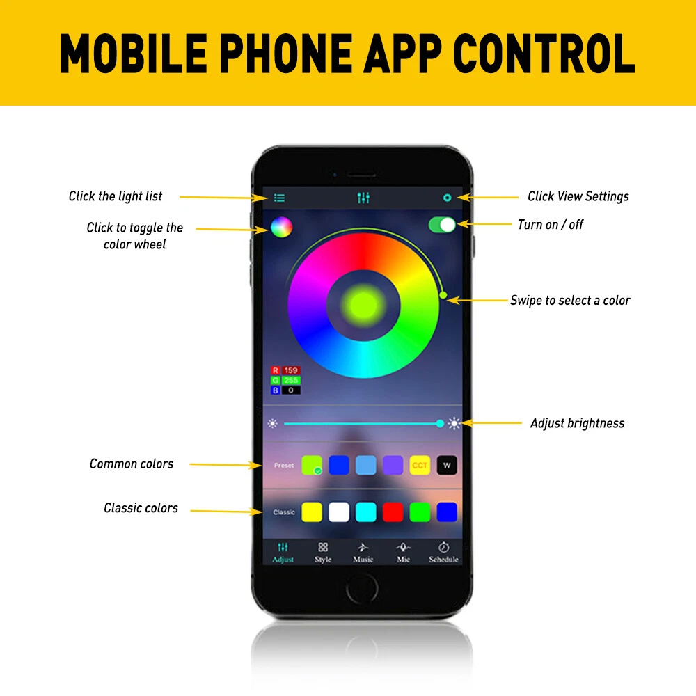 Type: Decoration Lights Suitable For: Footwell Light, Accessory Light Life Span: 30,000Hrs Purpose: Atmosphere adjustment Light Color: RGB Brand: Unbranded/Generic Model: Car interior led strip lights Color: RGB(16 Million colors) Bulb Life Hours: Up to 30,000 Hours UPC: 605945697508 Material: PVC,High Qual Silcone Plug Type: Car cigarette socket Lighting Technology: LED Waterproof: IP68 Package including: 4x LED strips with 1 plug Functions: Voice control,Shake control,Timing,Brightness Color Temperature: 6000K Wire Lehgth: 6m/236.22in Fitment Type: Direct Replacement gtin13: 605945697508 Features: Music control,bluetooth control,RGB mode Custom Bundle: No Manufacturer Warranty: 1 Year OE/OEM Part Number: / Bulb Fitment Code: C5W Manufacturer Part Number: Does not apply Modified Item: No Number of Bulbs: 4 Placement on Vehicle: Front, Rear, Left, Right Assembly Type: Stick Voltage: 10-15V Wattage: 12W