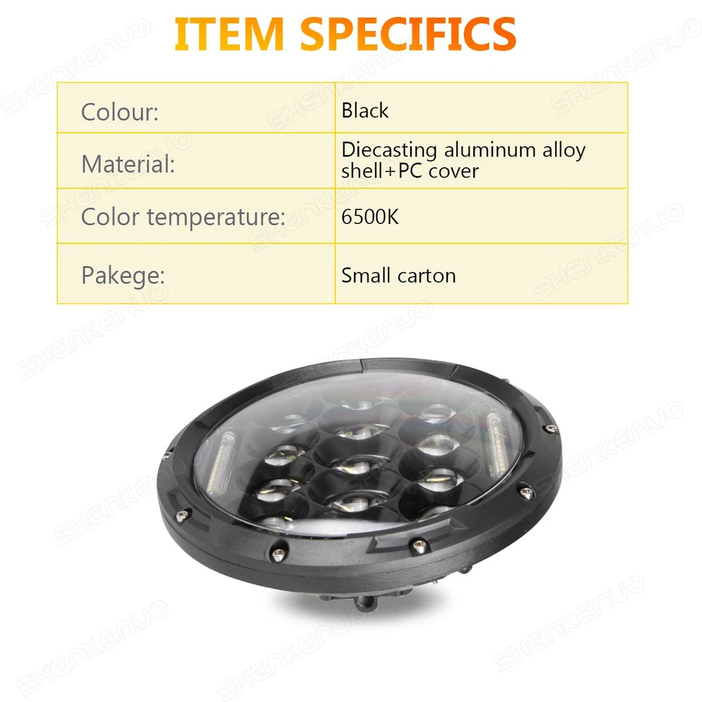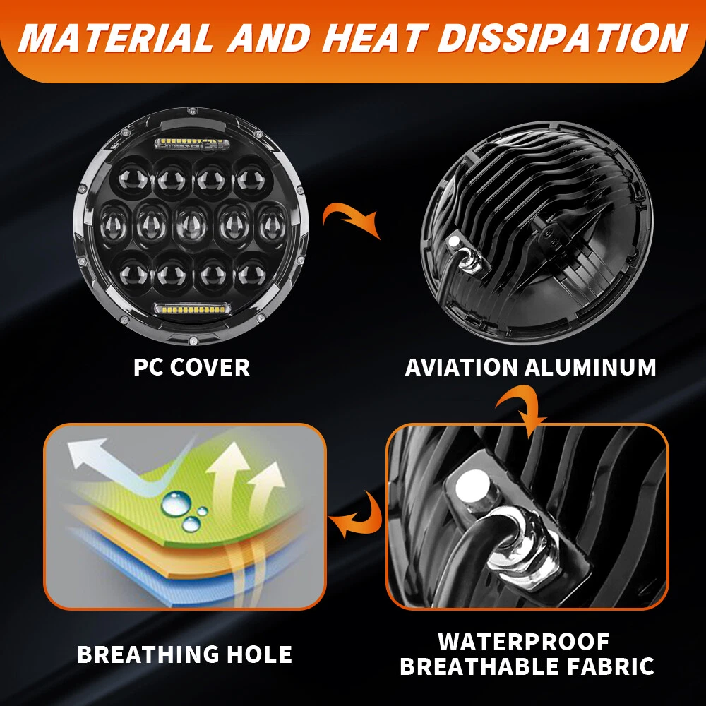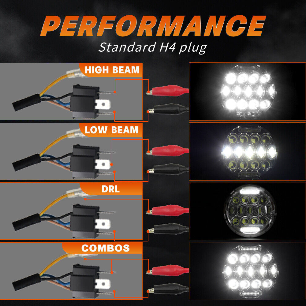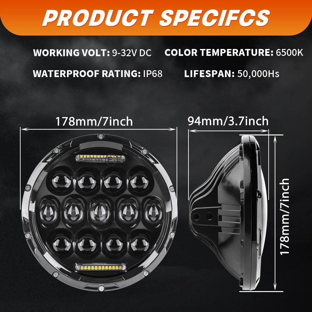 Upgrade Your Ride with Powerful 7-Inch Round LED Headlights! 🚗 Experience Superior Brightness & Style Revitalize your vehicle's lighting with the latest 7-inch LED Headlights ! Whether you’re cruising down the highway or tackling off-road terrain, these headlights provide unmatched brightness , durability , and a sleek, aggressive look. Featuring High Beam , Low Beam , and Daytime Running Light (DRL) functions, these headlights enhance your visibility and driving safety while giving your vehicle a stylish edge. Key Features: 🌟 Superior Brightness & Performance Power: 75W per headlight (150W per pair) Color Temperature: Crisp 6000K Cool White Lens Pattern: High Beam, Low Beam, and DRL (Daytime Running Light) Luminous Output: 100% brighter than stock halogen headlights for exceptional nighttime clarity. 🌟 Built to Last: Waterproof Rating: IP68, meaning these headlights will perform reliably in rain, snow, mud , and any harsh weather conditions. Durable Construction: Built with real LED chips and aluminum housing , these headlights are designed to last over 50,000 hours of use, making them a long-term lighting solution for your vehicle. 🌟 DOT Approved & Anti-Flicker Technology: Anti-Flicker Built-In: No need for additional decoders, and no flickering with most vehicles, including Jeep Wrangler (for vehicles that experience flicker, the adapter may be needed—see below for details). Perfectly Sealed: Waterproof and dustproof, ensuring that moisture or dirt never gets inside, guaranteeing consistent performance. 🌟 Effortless Installation: Plug & Play: Easy installation with H4/H13 connectors , so you can get your headlights up and running quickly. The set includes 2 headlights and 2 adapter wires , so everything you need to get started is included. Why Choose These 7-Inch LED Headlights? ✨ Maximum Visibility: With High and Low Beams plus Daytime Running Lights , these LED headlights ensure you're visible at all times, no matter the weather or time of day. Their 6000K Cool White light is designed to cut through the night, offering superior road coverage and clarity. ✨ Weather-Resistant Durability: Built to handle whatever the road throws at you, these headlights feature IP68 waterproof protection, anti-flicker technology, and a rugged aluminum housing that can withstand the elements. No more worrying about fogging, water buildup, or dimming lights. ✨ Long-Lasting Performance: LED technology ensures a lifespan of over 50,000 hours , making these headlights an investment in your vehicle's safety and appearance. They’re built to outlast traditional halogen headlights, saving you time and money in the long run. Product Specifications: Power: 75W per headlight (150W per pair) Dimension: 7-Inch Round Input Voltage: 12-24V DC Operating Voltage: 9-30V DC Material: Aluminum housing for durability Lens Pattern: High Beam / Low Beam / DRL Color Temperature: 6000K Cool White Waterproof Rating: IP68 Connector: H4/H13 (Ground and High Beam) Function: High Beam, Low Beam, Daytime Running Light (DRL) What’s Included: 2 x 7-Inch LED Headlights 2 x H4-H13 9008 Adapter Wires Important Notes: Installation Instructions: Not included. Professional installation is highly recommended for optimal results. Adapter Information: The package does not include the adapter , as some vehicles (like Jeep Wrangler ) may experience slight flickering due to voltage instability. If flickering occurs, simply connect the headlights first—if the headlights do not flicker, no adapter is needed. Mounting Brackets: Not included. Some models may require additional mounting brackets (sold separately). Elevate Your Driving Experience! Ready to give your vehicle the perfect lighting upgrade? These 7-Inch LED Headlights offer outstanding brightness , rugged durability , and easy installation . Enhance your visibility, stay safe on the road, and transform your vehicle’s appearance. Don’t settle for less— upgrade to LED today! (Including but not limit the following applications) Application: For Alfa Romeo Spider (1988-1994) For AM General Hummer (1992-2001) For American Motors AMX (1968-1978) For American Motors Gremlin (1970-1978) For American Motors Hornet (1970-1977) For American Motors Javelin (1968-1974) For American Motors Matador (1974-1978) For American Motors Pacer (1975-1980) For Bertone X 1/9 (1984-1989) For Chevy Blazer (1969-1974) For Chevy C10 (1975-1980) For Chevy C10 Pickup (1969-1974) For Chevy C10 Suburban (1969-1980) For Chevy C20 (1975-1980) For Chevy C20 Pickup (1969-1974) For Chevy C20 Suburban (1969-1980) For Chevy C30 (1975-1980) For Chevy C30 Pickup (1969-1974) For Chevy Camaro (1967-1981) For Chevy Chevelle (1971-1973) For Chevy Chevette (1976-1978) For Chevy El Camino (1971-1975) For Chevy G10 G20 G30 (1975-1987) For Chevy K10 K20 K30 K5 Blazer (1969-1980) For Chevy Laguna (1973-1975) For Chevy Lux (1980-1982) For Chevy Malibu (1973-1975) For Chevy Monte Carlo (1970-1975) For Chevy Monza (1975-1980) For Chevy Nova (1963-1978) For Chevy Pickup Truck (1967-1973) For Chevy Truck (1947-1957 and 1962-1972) For Chrysler (1949-1955) For Datsun 240Z 260Z 280Z 280ZX (1970-1978) For DeSoto (1949-1955) For Dodge (1949-1955) For Dodge B100 (1975-1978) For Dodge B100 Van (1971-1974) For Dodge B150 (1984-1987) For Dodge B200 (1975-1978) For Dodge B200 Van (1971-1974) For Dodge B250 (1984-1987) For Dodge B300 (1975-1978) For Dodge B300 Van (1971-1974) For Dodge B350 (1984-1987) For Ford Bronco (1966-1977) For Ford Custom 500 (1971/1976) For Ford E-100 Econoline (1969-1978) For Ford E-100 Econoline Club Wagon (1975-1978) For Ford E-150 Econoline (1969-1978) For Ford E-150 Econoline Club Wagon (1975-1978) For Ford F-100 (1975-1979) For Ford F-100 Pikcup (1969-1974) For Ford F-150 (1975-1979) For Ford F-250 (1975-1979) For Ford F-250 Pickup (1969-1974) For Ford F-350 (1975-1979) For Ford F-350 Pickup (1969-1974) For Ford Falcon Sedan Delivery (1961-1965) For Ford Mustang (1965-1973) For Freightline