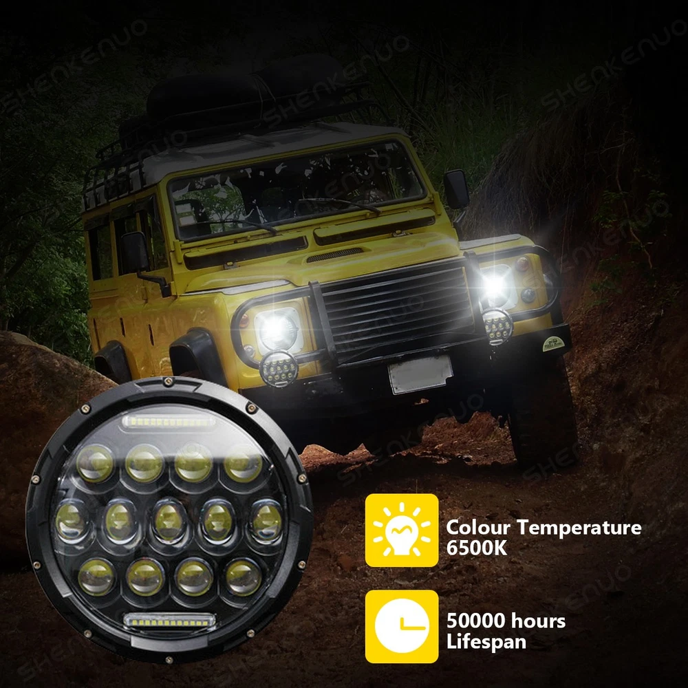 2X 7"inch Round LED Halo Headlights Hi/Lo DRL for Land Rover Defender 110 1993