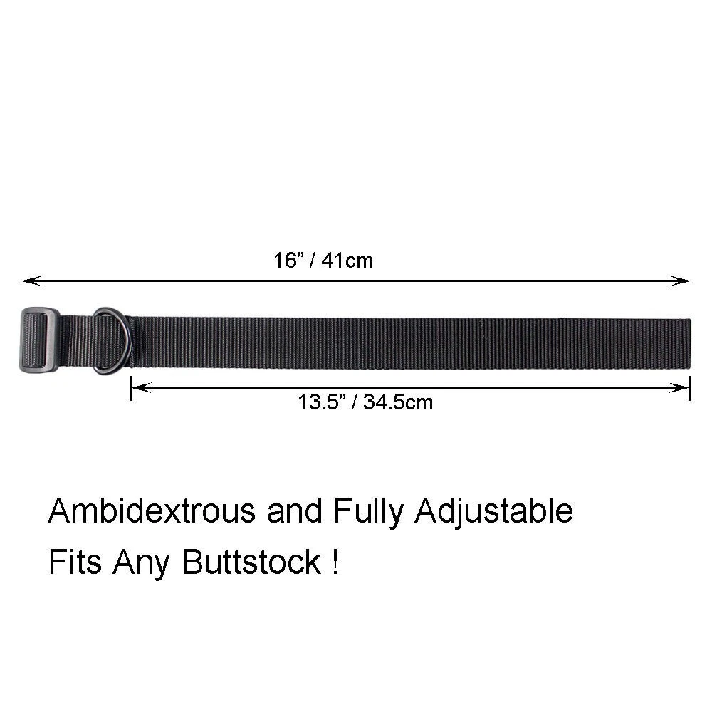 2X Adjustable Rifle Buttstock Sling 1.25” Nylon Strap w/ D Ring Loop for Hunting