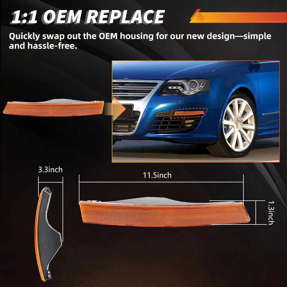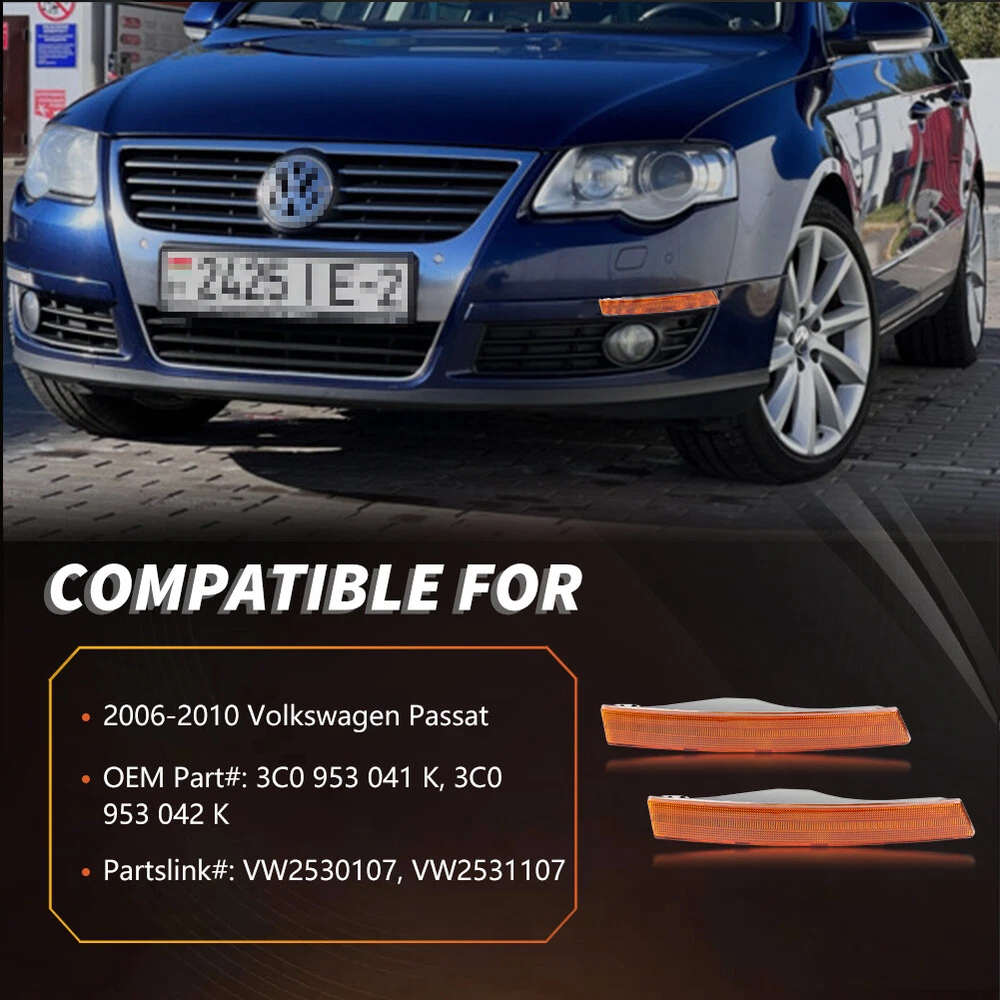 Product Detail Copyright©MotoringPlus Details This page features One Pair (2 Pieces) OEM-Spec Amber Lens Front Bumper Turn Signal Lights Kit For 2006-2010 Volkswagen Passat These lamps are made with high-quality Polymethy l Methacrylate (PMMA) and Polycarbonate (PC) plastics No modification required! Each piece is easy to install with an OEM fit, Instantly transform your car and give it a modern and trendy appearance and feel! Note: Bulbs & socket adapters are NOT included Specifications: 100% Brand new and quality Lens Color: Amber A complete set of two lamps, replacement for the driver side & passenger sides Compatible With 2006-2010 Volkswagen Passat Directly replace or repair your car's front bumper turn signal lamps CE DOT SAE approved Application: For 2006 2007 2008 2009 2010 Volkswagen Passat Replace OEM # 3C0 953 041 K, 3C0 953 042 K and Partslink#: VW2530107 VW2531107 Please make sure you have available space in your car for these lamps to fit before placing or der. Package include: 2PCS Driver & Passenger side Front Bumper Turn Signal Lights (Amber Lens) Installation: Direct replacement the OEM parts without any modification needed Note: Professional installation is highly recommended! Returns Policy Shipping Policy Payment Method About US Contact Us Returns Policy Please check actual stock bulb model & housing size before purchasing replacement bulbs. Compatibility list on eBay listing is not a complete list and it is a known issue that there are errors on it. Half year warranty from the purchased date. Please contact us via ebay message before returning the defectived item. Our warranty does not extended to any products that are physically damaged or that are not under normal operating conditions as a result of misuse or improper installation on the buyers/user's part. Return items should include the original packaging and all accessories. Buyers MUST contact us for the returning address. In all cases, buyers pay shipping fees at their own cost to return products for exchange or refund. We will be responsible for the postage of replacements. Refund will be made upon receipt of the returned item. Our goal is to make sure you are a happy buyer and pleasant shopping with us. If you have any problems, please contact us immediately before leaving us any negative or neutral feedback. We understand the concerns and frustrations you might have, and will do our endeavor to resolve the issues. Please give us the opportunity to resolve any problem. Shipping Policy Item will be shipped from China / Hongkong Post by Standard International Post. All orders will be shipped to buyer's paypal shipping address within 24 hours after receiving your verified payment (Excluding Weekends and Public Holidays) International order may takes about 15-25 business day delivery time for most countries. Transactions on weekends or public holidays,item will be sent later on work time. Payment Method We accept Paypal ONLY. Unpaid transaction will be cancelled after 8 days About US Contact Us We are dedicated to providing you the best shopping experience and high quality items at a very low price. If you are satisfied with our service,Please remember to leave us 5 STAR for All Detailed Seller Ratings If you found any problem/issue of our merchandise/service,please let us know before leaving any negative feedback! Please feel free to contact us if you have any question. Any message will be replied within 24 hours. We will try our best to help! Home Payment Shipping About us Contact us Copyright©MotoringPlus Home Payment Shipping About us Contact us Store Categories Store Categories SIDE MARKER LIGHT TURN SIGNAL LIGHT TAIL BRAKE LIGHT LICENSE PLATE LIGHT DECODER OTHERS Other Product Detail Copyright©OFFKAT Why Buy From Us Why Buy From Us Details This page features One Pair (2 Pieces) OEM-Spec Amber Lens Front Bumper Turn Signal Lights Kit For 2006-2010 Volkswagen Passat These lamps are made with high-quality Polymethy l Methacrylate (PMMA) and Polycarbonate (PC) plastics No modification required! Each piece is easy to install with an OEM fit, Instantly transform your car and give it a modern and trendy appearance and feel! Note: Bulbs & socket adapters are NOT included Specifications: 100% Brand new and quality Lens Color: Amber A complete set of two lamps, replacement for the driver side & passenger sides Compatible With 2006-2010 Volkswagen Passat Directly replace or repair your car's front bumper turn signal lamps CE DOT SAE approved Application: For 2006 2007 2008 2009 2010 Volkswagen Passat Replace OEM # 3C0 953 041 K, 3C0 953 042 K and Partslink#: VW2530107 VW2531107 Please make sure you have available space in your car for these lamps to fit before placing or der. Package include: 2PCS Driver & Passenger side Front Bumper Turn Signal Lights (Amber Lens) Installation: Direct replacement the OEM parts without any modification needed Note: Professional installation is highly recommended! Returns Policy Shipping Policy Payment Method About US Contact Us Returns Policy Our 60-day Satisfaction Guarantee assures our customers that they will receive all orders promptly and exactly as described. In addition, it allows customers to return new and unused products in their original factory condition for any reason within 60 days from the date of purchase. Buyers are responsible for appropriate packing, returning shipping cost, insurance and returning the item in "new" condition. Used items will not be accepted for return. We will replace the returning item with an identical item, issue a full store credit or a full refund. Our goal is to make sure you are a happy buyer and pleasant shopping with us. If you have any problems, please contact us immediately before leaving us any negative or neutral feedback. We understand the concerns and frustrations you might have, and will do our endeavor to resolve the issues. Please give us the opportunity to resolve any problem. Shipping Policy We only ship to paypal confirmed