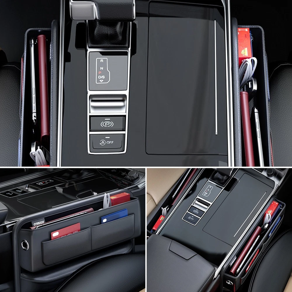 Product Description 2X Real Leather Car Console Side Car Seat Crevice Storage Boxes Slit Gap Filler Interior Accessories Add our listing to Watchlist Or Add to Cart , you will get more discount Features: 1. High-quality Genuine leather, selected environmentally friendly materials, with solid support for storage 2. Expand twice the space, fill the seat gap and expand the storage space at the same time 3. Large capacity and reasonable storage to meet the needs of orderly storage of daily items 4. Barrier-free driving, does not affect gear control, does not affect the use of seat belts 5. Reserve the hole for the data cable, which is more convenient for mobile phone charging Specification: Material: Genuine leather Placement: Car Seat Clearance, Front Seat Type: Seat Side Organizer Quantity :2Pcs Color:Black Packing list: 2 * Car console side seat filler organizer Payment Returns Contact Us Shipping We accept payment by PayPal only ! Payment should be completed within 5 days after buyer places the order,or else an unpaid case will be opened in order to cancel the transaction. If you can not pay in time, please contact us. e-check from PayPal will only be processed once the payment clears. All of the items will be shipped to buyer's EBAY address,please confirm your address on Ebay before you buy.Your order will be usually shipped out the same or next business days once the payment is made and cleared. 30-day Warranty with Exchange for defective, malfunctioned, incorrect or parts-missing items. Please notify us and return the item with all parts and accessories packed and marked "FOR EXCHANGE" within 14 days of receipt. If defective, malfunctioned or parts-missing items are no longer available, a refund may be issued. All returning postage costs will be the responsibility of the buyers under all circumstances. If you encounter any problems about anything, please feel free to contact us and we will do our best to assist you solve the issue. If you are not satisfied in anyway, please feel free to let us know and give us a second chance to correct it before you decide to leave any neutral or negative feedback. Please contact us through eBay link if you have any questions. We will reply you within 24- 48 hours. Please check you spam mail if no response for 48 hours. All items will be checked before packing. All items are new and of high quality. Item will be shipped within 1 business days upon receipt of payment, excluding weekends and public holidays. If to USA,we will ship your order by USPS,it will take about 8-12 working days to you,and you can track it on line. If to other country,we will ship your order by China Post or Singapore Registered Air Mail,it will take about 14-21 working days to you,you aslo can track it on line. Delivery time is about 14-28 business days and it may take up to 8 weeks . Payment We accept payment by PayPal only ! Payment should be completed within 7 days after buyer places the order,or else an unpaid case will be opened in order to cancel the transaction. If you can not pay in time, please contact us. eCHECK from PayPal will only be processed once the payment clears. All of the items will be shipped to buyer's EBAY address,please confirm your address on Ebay before you buy.Your order will be usually shipped out the same or next business days once the payment is made and cleared. Returns 30-day Warranty with Exchange for defective, malfunctioned, incorrect or parts-missing items. Please notify us and return the item with all parts and accessories packed and marked "FOR EXCHANGE" within 14 days of receipt. If defective, malfunctioned or parts-missing items are no longer available, a refund may be issued. All returning postage costs will be the responsibility of the buyers under all circumstances. Contact Us If you encounter any problems about anything, please feel free to contact us and we will do our best to assist you solve the issue. If you are not satisfied in anyway, please feel free to let us know and give us a second chance to correct it before you decide to leave any neutral or negative feedback. Please contact us through eBay link if you have any questions. We will reply you within 24- 48 hours. Please check you spam mail if no response for 48 hours. Shipping All items will be checked before packing. All items are new and of high quality. Item will be shipped within 1 business days upon receipt of payment, excluding weekends and public holidays. If to USA,we will ship your order by USPS,it will take about 7-10 working days to you,and you can track it on line. If to other country,we will ship your order by China Post or Singapore Registered Air Mail,it will take about 14-21 working days to you,you aslo can track it on line. Delivery time is about 14-28 business days and it may take up to 8 weeks . Welcome to our Store ~