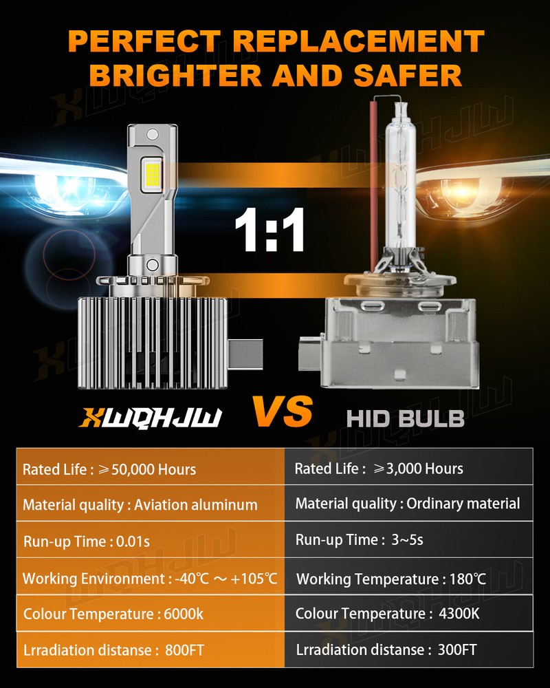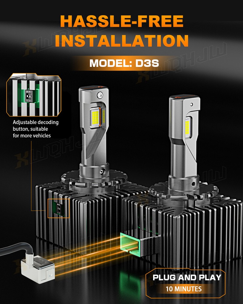 The compatible vehicle list shows only partial cars due to the ebay limits, if your car plug is same with D3S/D3R , the item will fit your car. Features: 1. Designed to enhance your visibility and driving safety at night and bad weather. 2. light source, super bright without blind zone. 3. Efficient cooling system ensures maximum headlight performance and appropriate working temperature. 4. IP67 waterproof and high temperature resistant, withstand extreme weather conditions. 5. Easy installation without any modification or additional wiring, plug and play. Specifications: * Brand: XWQHJW * Condition: 100% Brand New * Material: Aviation Aluminum + ABS * Color Temperature: 6000K White * Working Voltage: DC9V-30V * Output Power: 100W/Bulb,200W/Set * Number of Bulbs: 2 * Waterproof Rate: IP67 * Luminous Flux: 38000lm/Set * Working Temperature: -40℃ - +105℃ * Bulb Type: D3S/D3R * Beam Type: High Beam/ Low Beam * Beam Angle: 360 Degrees * Lifespan: Over 50,000 hours * Heat Dissipation Principle: Aluminum Radiator+Cooling Fan * Fitment Type: Direct Replacement * Placement on Vehicle: Front, Left, Right Package Included: 2x D3S Headlight Bulbs Please Note: a)Compatible List can not show up all Car model. Please check the Correct item size of your vechicle. it will work and fit.Thank you! b)If you are unsure the item fit or not , please do remember send message to tell us your car make, model, year and other information which is helpful to check the item fit or not. On Dec 25, 2024 at 23:03:50 PST, seller added the following information: On Dec 27, 2024 at 00:34:12 PST, seller added the following information: