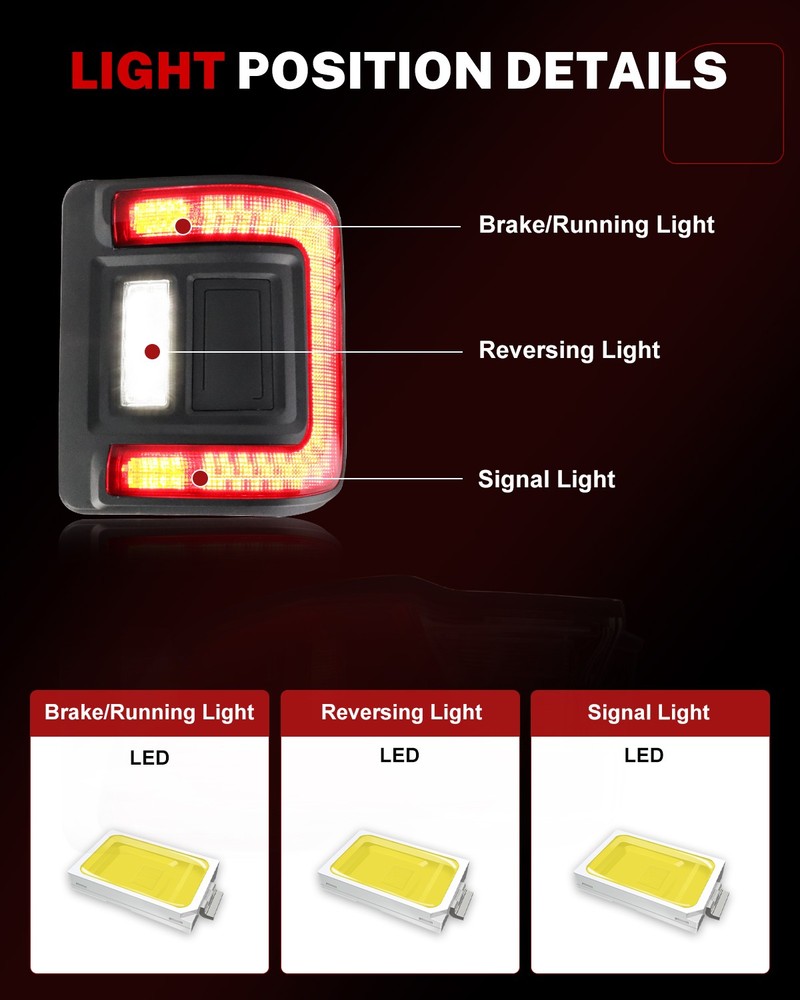 Product Detail Copyright©MotoringPlus Details This page features One Set (2 Pieces) Red LED Rear Tail Brake Lights Taillamps For 2018-2024 Jeep Wrangler JL JLU (Not for JK Only for JL) Those LED t aillamps are made with high-quality Polymethy l Methacrylate (PMMA) and Polycarbonate (PC) plastics Give your ride upgraded LED rear tail lights with an unique and modern look as well as increased safety, visibility, and style at night! Specifications: 100% Brand new and quality Lens Color: Red & Clear LED Color: Red (Tail / Brake / Signal Light) & White (Bakcup Light) Voltage: 12-24V DC; Power: 4W A complete set of LED tail brake lights, replacement for the driver side & passenger sides Compatible With 2018-2024 Jeep Wrangler JL JLU (Not for JK Only for JL) Directly replace or repair your car's rear tail lights with red & white LED strips CE DOT SAE approved Application: For 2018-2024 Jeep Wrangler JL JLU (Not for JK Only for JL) Please make sure you have available space in your car for these lights to fit before placing or der. Package include: 2PCS Driver & Passenger side LED rear tail brake lights (Red & Clear Lens) Installation: NOTE: You will need to re use your factory tailight housing frame in order to mount these D irectly replace your stock tail brake light, simply plug in the LED light to the stock tail light socket Note: Professional installation is highly recommended! Returns Policy Shipping Policy Payment Method About US Contact Us Returns Policy Please check actual stock bulb model & housing size before purchasing replacement bulbs. Compatibility list on eBay listing is not a complete list and it is a known issue that there are errors on it. Half year warranty from the purchased date. Please contact us via ebay message before returning the defectived item. Our warranty does not extended to any products that are physically damaged or that are not under normal operating conditions as a result of misuse or improper installation on the buyers/user's part. Return items should include the original packaging and all accessories. Buyers MUST contact us for the returning address. In all cases, buyers pay shipping fees at their own cost to return products for exchange or refund. We will be responsible for the postage of replacements. Refund will be made upon receipt of the returned item. Our goal is to make sure you are a happy buyer and pleasant shopping with us. If you have any problems, please contact us immediately before leaving us any negative or neutral feedback. We understand the concerns and frustrations you might have, and will do our endeavor to resolve the issues. Please give us the opportunity to resolve any problem. Shipping Policy Item will be shipped from China / Hongkong Post by Standard International Post. All orders will be shipped to buyer's paypal shipping address within 24 hours after receiving your verified payment (Excluding Weekends and Public Holidays) International order may takes about 15-25 business day delivery time for most countries. Transactions on weekends or public holidays,item will be sent later on work time. Payment Method We accept Paypal ONLY. Unpaid transaction will be cancelled after 8 days About US Contact Us We are dedicated to providing you the best shopping experience and high quality items at a very low price. If you are satisfied with our service,Please remember to leave us 5 STAR for All Detailed Seller Ratings If you found any problem/issue of our merchandise/service,please let us know before leaving any negative feedback! Please feel free to contact us if you have any question. Any message will be replied within 24 hours. We will try our best to help! Home Payment Shipping About us Contact us Copyright©MotoringPlus Home Payment Shipping About us Contact us Store Categories Store Categories SIDE MARKER LIGHT TURN SIGNAL LIGHT TAIL BRAKE LIGHT LICENSE PLATE LIGHT DECODER OTHERS Other Product Detail Copyright©OFFKAT Why Buy From Us Why Buy From Us Details This page features One Set (2 Pieces) Red LED Rear Tail Brake Lights Taillamps For 2018-2024 Jeep Wrangler JL JLU (Not for JK Only for JL) Those LED t aillamps are made with high-quality Polymethy l Methacrylate (PMMA) and Polycarbonate (PC) plastics Give your ride upgraded LED rear tail lights with an unique and modern look as well as increased safety, visibility, and style at night! Specifications: 100% Brand new and quality Lens Color: Red & Clear LED Color: Red (Tail / Brake / Signal Light) & White (Bakcup Light) Voltage: 12-24V DC; Power: 4W A complete set of LED tail brake lights, replacement for the driver side & passenger sides Compatible With 2018-2024 Jeep Wrangler JL JLU (Not for JK Only for JL) Directly replace or repair your car's rear tail lights with red & white LED strips CE DOT SAE approved Application: For 2018-2024 Jeep Wrangler JL JLU (Not for JK Only for JL) Please make sure you have available space in your car for these lights to fit before placing or der. Package include: 2PCS Driver & Passenger side LED rear tail brake lights (Red & Clear Lens) Installation: NOTE: You will need to re use your factory tailight housing frame in order to mount these D irectly replace your stock tail brake light, simply plug in the LED light to the stock tail light socket Note: Professional installation is highly recommended! Returns Policy Shipping Policy Payment Method About US Contact Us Returns Policy Our 60-day Satisfaction Guarantee assures our customers that they will receive all orders promptly and exactly as described. In addition, it allows customers to return new and unused products in their original factory condition for any reason within 60 days from the date of purchase. Buyers are responsible for appropriate packing, returning shipping cost, insurance and returning the item in "new" condition. Used items will not be accepted for return. We will replace the returning item with an identical item, issue a full store credit or a full refund. Our goal is to make sure you are 