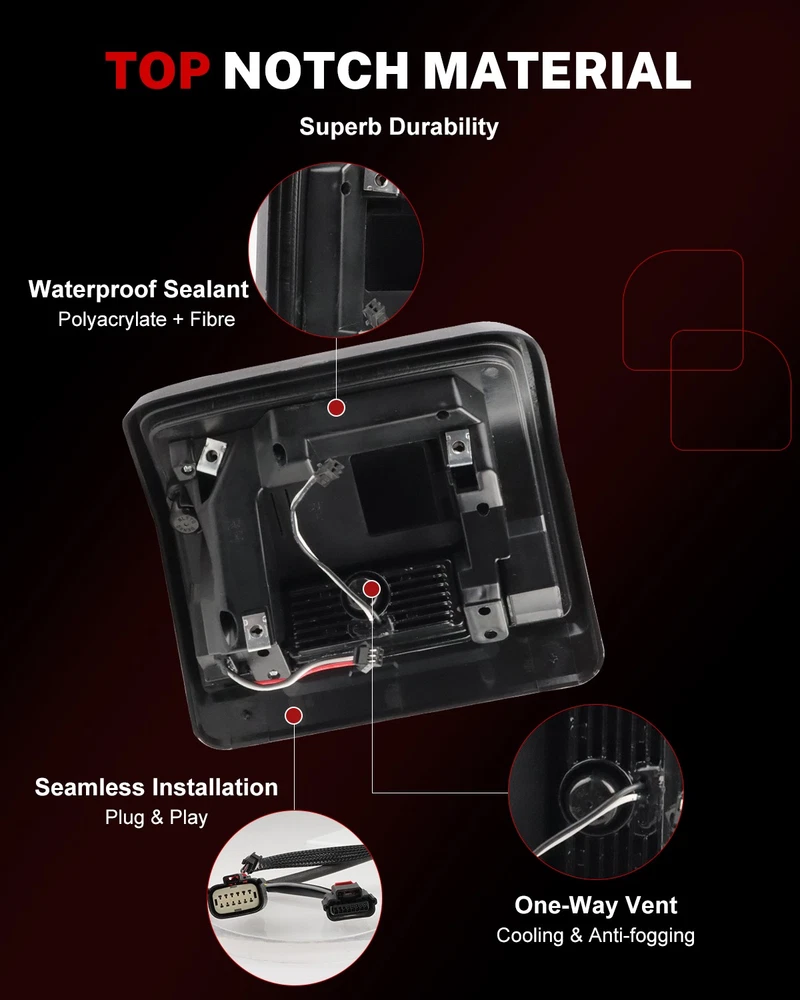 2X Flush Mount Smoked LED Tail Light Assembly for 2018-2024 Jeep Wrangler JL JLU