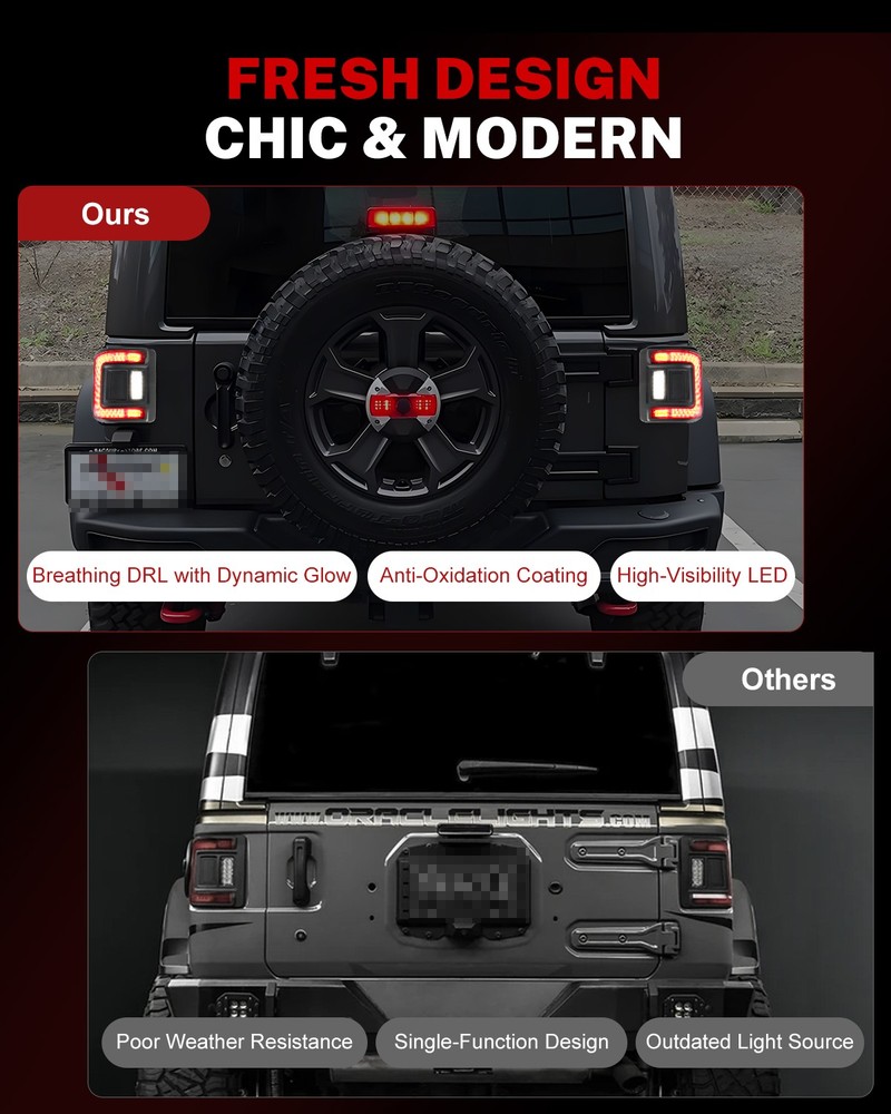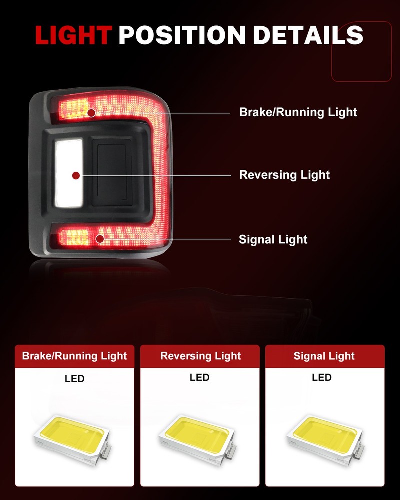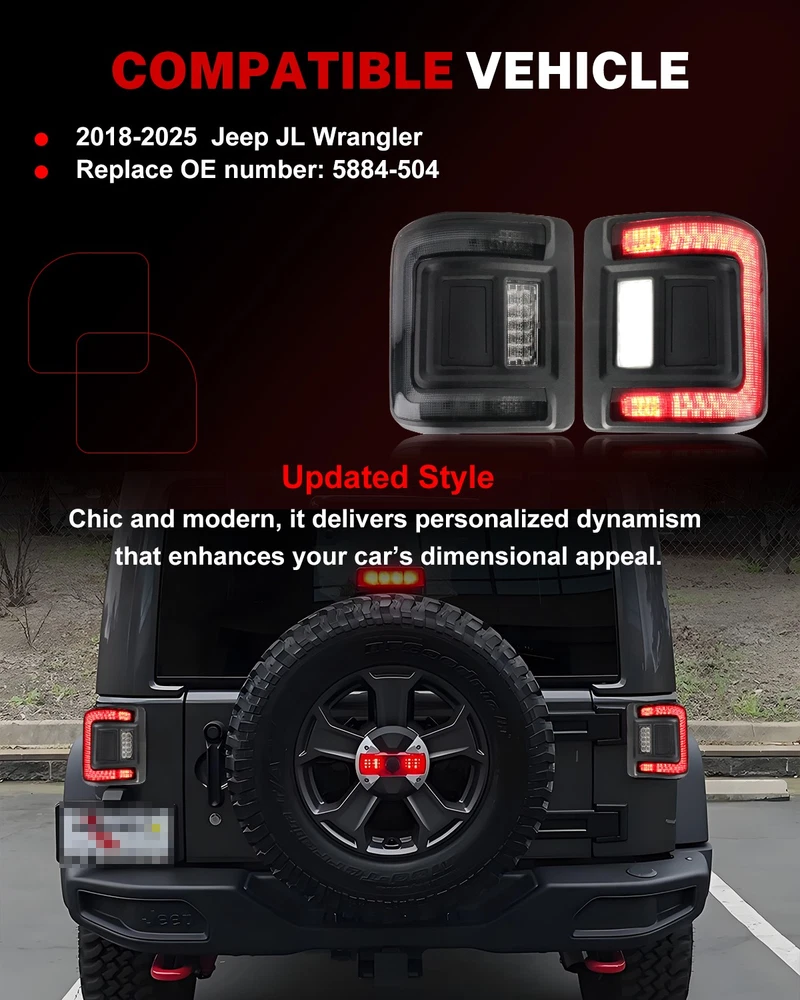 Product Detail Copyright©MotoringPlus Details This page features One Set (2 Pieces) Smoked Lens Red LED Rear Tail Brake Lights Taillamps For 2018-2024 Jeep Wrangler JL JLU (Not for JK Only for JL) Those LED t aillamps are made with high-quality Polymethy l Methacrylate (PMMA) and Polycarbonate (PC) plastics Give your ride upgraded LED rear tail lights with an unique and modern look as well as increased safety, visibility, and style at night! Specifications: 100% Brand new and quality Lens Color: Smoked / Tinted LED Color: Red (Tail / Brake / Signal Light) & White (Bakcup Light) Voltage: 12-24V DC; Power: 4W A complete set of LED tail brake lights, replacement for the driver side & passenger sides Compatible With 2018-2024 Jeep Wrangler JL JLU (Not for JK Only for JL) Directly replace or repair your car's rear tail lights with red & white LED strips CE DOT SAE approved Application: For 2018-2024 Jeep Wrangler JL JLU (Not for JK Only for JL) Please make sure you have available space in your car for these lights to fit before placing or der. Package include: 2PCS Driver & Passenger side LED rear tail brake lights (Smoked / Tinted Lens) Installation: NOTE: You will need to re use your factory tailight housing frame in order to mount these D irectly replace your stock tail brake light, simply plug in the LED light to the stock tail light socket Note: Professional installation is highly recommended! Returns Policy Shipping Policy Payment Method About US Contact Us Returns Policy Please check actual stock bulb model & housing size before purchasing replacement bulbs. Compatibility list on eBay listing is not a complete list and it is a known issue that there are errors on it. Half year warranty from the purchased date. Please contact us via ebay message before returning the defectived item. Our warranty does not extended to any products that are physically damaged or that are not under normal operating conditions as a result of misuse or improper installation on the buyers/user's part. Return items should include the original packaging and all accessories. Buyers MUST contact us for the returning address. In all cases, buyers pay shipping fees at their own cost to return products for exchange or refund. We will be responsible for the postage of replacements. Refund will be made upon receipt of the returned item. Our goal is to make sure you are a happy buyer and pleasant shopping with us. If you have any problems, please contact us immediately before leaving us any negative or neutral feedback. We understand the concerns and frustrations you might have, and will do our endeavor to resolve the issues. Please give us the opportunity to resolve any problem. Shipping Policy Item will be shipped from China / Hongkong Post by Standard International Post. All orders will be shipped to buyer's paypal shipping address within 24 hours after receiving your verified payment (Excluding Weekends and Public Holidays) International order may takes about 15-25 business day delivery time for most countries. Transactions on weekends or public holidays,item will be sent later on work time. Payment Method We accept Paypal ONLY. Unpaid transaction will be cancelled after 8 days About US Contact Us We are dedicated to providing you the best shopping experience and high quality items at a very low price. If you are satisfied with our service,Please remember to leave us 5 STAR for All Detailed Seller Ratings If you found any problem/issue of our merchandise/service,please let us know before leaving any negative feedback! Please feel free to contact us if you have any question. Any message will be replied within 24 hours. We will try our best to help! Home Payment Shipping About us Contact us Copyright©MotoringPlus Home Payment Shipping About us Contact us Store Categories Store Categories SIDE MARKER LIGHT TURN SIGNAL LIGHT TAIL BRAKE LIGHT LICENSE PLATE LIGHT DECODER OTHERS Other Product Detail Copyright©OFFKAT Why Buy From Us Why Buy From Us Details This page features One Set (2 Pieces) Smoked Lens Red LED Rear Tail Brake Lights Taillamps For 2018-2024 Jeep Wrangler JL JLU (Not for JK Only for JL) Those LED t aillamps are made with high-quality Polymethy l Methacrylate (PMMA) and Polycarbonate (PC) plastics Give your ride upgraded LED rear tail lights with an unique and modern look as well as increased safety, visibility, and style at night! Specifications: 100% Brand new and quality Lens Color: Smoked / Tinted LED Color: Red (Tail / Brake / Signal Light) & White (Bakcup Light) Voltage: 12-24V DC; Power: 4W A complete set of LED tail brake lights, replacement for the driver side & passenger sides Compatible With 2018-2024 Jeep Wrangler JL JLU (Not for JK Only for JL) Directly replace or repair your car's rear tail lights with red & white LED strips CE DOT SAE approved Application: For 2018-2024 Jeep Wrangler JL JLU (Not for JK Only for JL) Please make sure you have available space in your car for these lights to fit before placing or der. Package include: 2PCS Driver & Passenger side LED rear tail brake lights (Smoked / Tinted Lens) Installation: NOTE: You will need to re use your factory tailight housing frame in order to mount these D irectly replace your stock tail brake light, simply plug in the LED light to the stock tail light socket Note: Professional installation is highly recommended! Returns Policy Shipping Policy Payment Method About US Contact Us Returns Policy Our 60-day Satisfaction Guarantee assures our customers that they will receive all orders promptly and exactly as described. In addition, it allows customers to return new and unused products in their original factory condition for any reason within 60 days from the date of purchase. Buyers are responsible for appropriate packing, returning shipping cost, insurance and returning the item in "new" condition. Used items will not be accepted for return. We will replace the returning item with an identical item, issue a full store credit or a full r