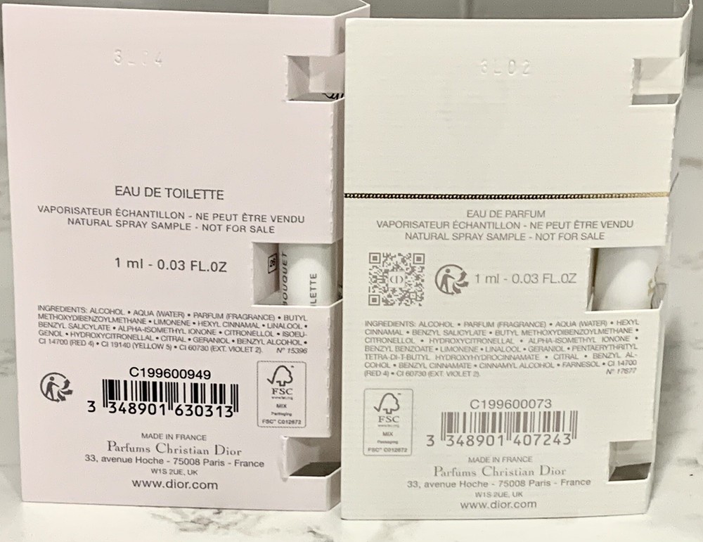 Lot of 2 Miss Dior Blooming Bouquet Eau de Toilette EDT Sample Spray 1 ml/0.03 oz Dior J’Adore EDP sample spray 1ml/0.03 oz