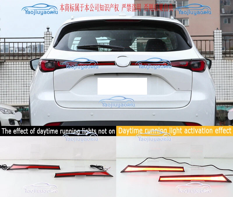 2X LED Rear Trunk Lamp Driving Turn Brake Light For Mazda CX-5 2022-2023 Item Fit: F or Mazda CX-5 CX5 2022-2023 Because the same model car may be differently produced in different country. Please ensure the part of your car like our picture shows, or it will not fit, if any differences, please contact with us before purchase, thanks! Product description: Condition : 100% Brand New (Never Been Used or Installed, Quality checked before shipping) Type: LED bumper reflector tail brake light Voltage: DC12V Light Source: High quality LEDs Light Color: Red Iclude: 2PCS/SET Functions: Driving light + Brake light+ Turn Signal Material: High-quality ABS+High quality LED Safety: LED Tail Light provides you with a decisive safety leap in road traffic and helps prevent 58% of accidents. Durability: Professional housing design with heat sink at the back of the lamp ensures LEDs not over heated and have longer life span. Waterproof: With reverse polarity protection and open circuit protection, 100% waterproof and shock resistant.