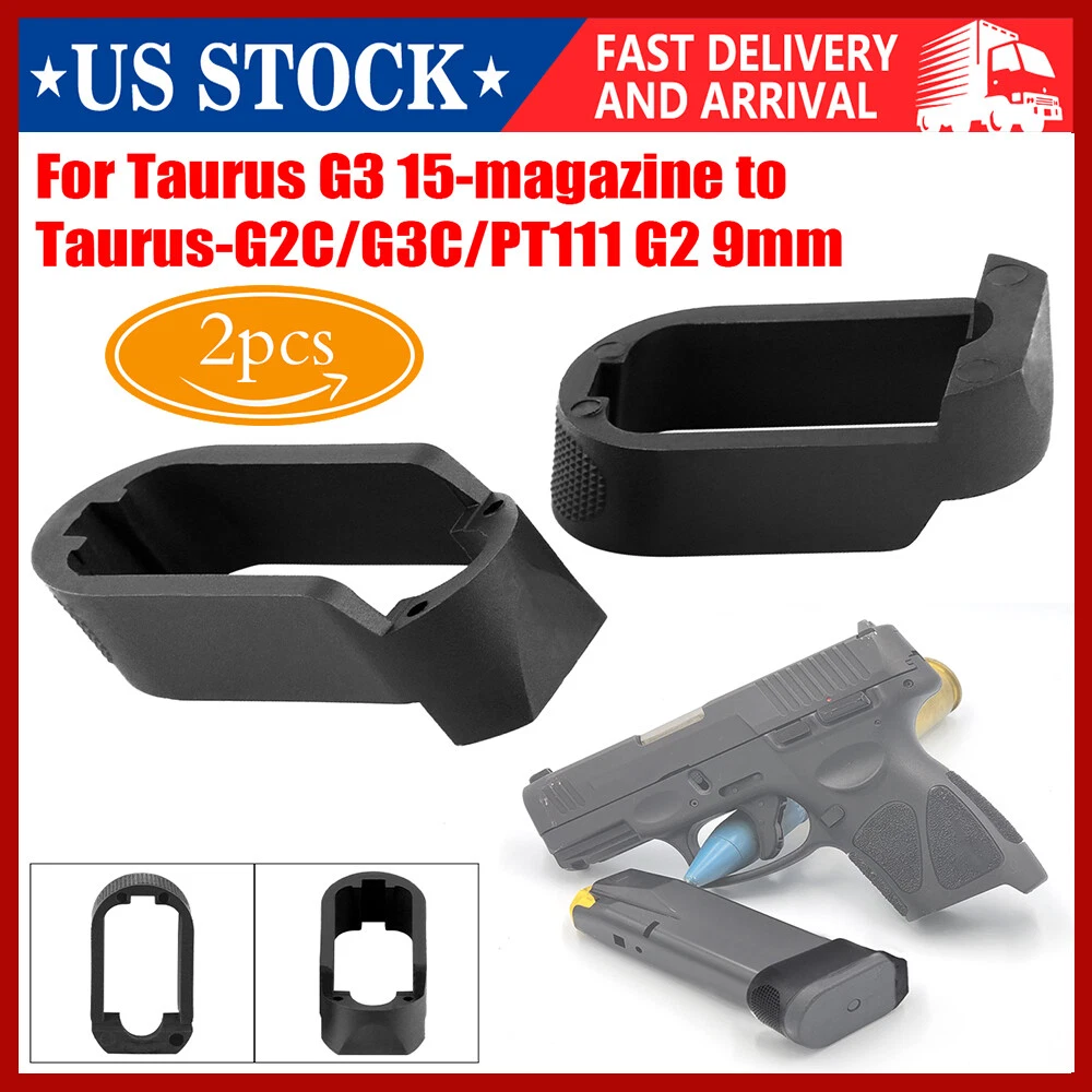 Product Description Features: Heavy duty-Thick and strong nylon material, anti-drop and anti-scratch performance, long-lasting use PERFECT FIT-Fits the new Taurus model G3 15-magazine on the Taurus model PT111 G2, G2C or G3C devices with the same peripheral dimensions for a perfect fit. COMFORTABLE FEELING- The non-slip texture on the front gives a comfortable non-slip grip on the palm of your hand, increasing friction and finger feedback. Aesthetics-Trust us, the real thing looks better than the picture. 2PCS- Always have a spare, or you can equip 2 magazines. Warm tips- not for stock magazines; can not increase the magazine capacity, just grip mount adapter, other items are not included. Parameters: Material: nylon Product length: 52.2 MM Product Width: 27 MM Product height (body): 17.1 MM Product weight: 8.4 g Applicable: Taurus model G3 15-magazine to fit with Taurus model PT111 G2, G2C or G3C Whether to increase the capacity: No! List: magazine adapter x2 Payment Shipping Terms Returns Contact Us We accept PayPal only. If buyer want to delay the payment because of financial problem, please contact me by the ebay message within 3 days Payment via PayPal (PayPal accepts all major credits/debit cards and eCheque) ECheque payment will tak e 3-10 days to get clear, thus DELAYing the shipment. Handling time: 1 business day (Orders are not processed on weekends & holidays) Tracking information will be sent once item is shipped. Local pick-up is unavailable at the moment. For international shipping and shipping to Guam, Hawaii and Alaska, Please contact us before placing the order. Item is shipped to ebay address. Leaving correct address can minimize delay. For any issues with Defects, Return, Item Exchange request, please contact us first and send us a message first before opening any type of case or request. We devote ourselves making EVERY CUSTOMER in 100% Satisfactory and resolve any problem. We highly value and appreciate your business. Thank you. No returns will be accepted without an RMA number. Please contact us for the RMA number. Return is acceptable within 30 days of delivery. Return for replacement or money back is optional. Returned items must be in the brand new, unaltered and resalable condition. Seller is not responsible for any labor cost, expense in a dealer store, or damage due to wrong installation. Return is accepted within 14 days after the buyer's receiving the item. (Excluding contrived damagement or misusage).100% money-back Guaranteed! All product will be tested in 100% before delivery.If the item is defected by the processing of postage,Buyer has up to 14 days from date of receipt for exchange of a new one.All shipping charges for returned products are to be paid by the buyer,Please contact us for the return address All messages will be answered within 24 office hours. Please contact us either by clicking "contact seller" in the "purchase history" section or simply click "ask a question" at the bottom of this page. If you are unsatisfied with our item or service, please contact us before leaving any feedback. We are committed to resolve all issues in a friendly and satisfactory manner. We always reply to messages within 2 business days (off-duty at weekend). If you do not get a response from us, then please check your junk or spam mailbox. Payment We accept PayPal only. If buyer want to delay the payment because of financial problem, please contact me by the ebay message within 3 days Payment via PayPal (PayPal accepts all major credits/debit cards and eCheque) ECheque payment will tak e 3-10 days to get clear, thus DELAYing the shipment. Shipping Handling time: 1 business day (Orders are not processed on weekends & holidays) Tracking information will be sent once item is shipped. Local pick-up is unavailable at the moment. For international shipping and shipping to Guam, Hawaii and Alaska, Please contact us before placing the order. Item is shipped to ebay address. Leaving correct address can minimize delay. Terms For any issues with Defects, Return, Item Exchange request, please contact us first and send us a message first before opening any type of case or request. We devote ourselves making EVERY CUSTOMER in 100% Satisfactory and resolve any problem. We highly value and appreciate your business. Thank you. No returns will be accepted without an RMA number. Please contact us for the RMA number. Return is acceptable within 30 days of delivery. Return for replacement or money back is optional. Returned items must be in the brand new, unaltered and resalable condition. Seller is not responsible for any labor cost, expense in a dealer store, or damage due to wrong installation. Returns Return is accepted within 14 days after the buyer's receiving the item. (Excluding contrived damagement or misusage).100% money-back Guaranteed! All product will be tested in 100% before delivery.If the item is defected by the processing of postage,Buyer has up to 14 days from date of receipt for exchange of a new one.All shipping charges for returned products are to be paid by the buyer,Please contact us for the return address Contact Us All messages will be answered within 24 office hours. Please contact us either by clicking "contact seller" in the "purchase history" section or simply click "ask a question" at the bottom of this page. If you are unsatisfied with our item or service, please contact us before leaving any feedback. We are committed to resolve all issues in a friendly and satisfactory manner. We always reply to messages within 2 business days (off-duty at weekend). If you do not get a response from us, then please check your junk or spam mailbox. powered by