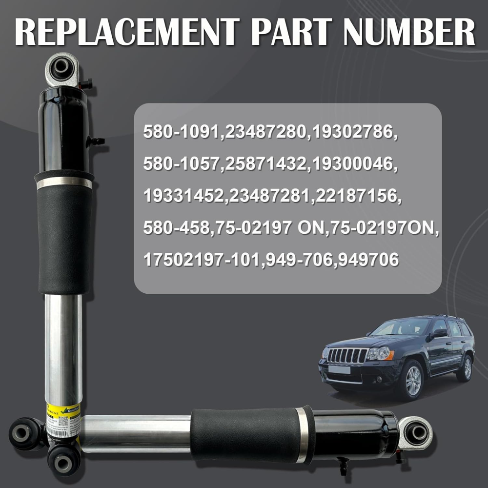 WHY OUR CUSTOMERS KEEP SHOPNG WITH US ✅All items are covered by manufacturer warranty. ✅FAST FREE SHIPPING. ✅Most orders ship within 1 business day with Tracking Number. Customer also can choose two-day or expedited shipping. ✅100% customer satisfaction is backed by a 30-Day Money Back Guarantee for New items and a 30-Day Money Back Guarantee for Recon. FEATURES 【Replacement Part Number】580-1091, 23487280, 19302786, 580-1057, 25871432, 19300046, 19331452, 23487281, 22187156, 580-458, 75-02197 ON, 75-02197ON, 17502197-101, 949-706, 949706. 2X Rear Shock Absorber Strut MagneRide Fit 2007-2014 Cadillac Escalade GMC Yukon WHY OUR CUSTOMERS KEEP SHOPNG WITH US ✅All items are covered by manufacturer warranty. ✅FAST FREE SHIPPING. ✅Most orders ship within 1 business day with Tracking Number. Customer also can choose two-day or expedited shipping. ✅100% customer satisfaction is backed by a 30-Day Money Back Guarantee for New items and a 30-Day Money Back Guarantee for Recon. FEATURES 【Replacement Part Number】580-1091, 23487280, 19302786, 580-1057, 25871432, 19300046, 19331452, 23487281, 22187156, 580-458, 75-02197 ON, 75-02197ON, 17502197-101, 949-706, 949706. 【Compatible Vehicle】Kalmaegee rear air shock struts are designed to fit Cadillac Escalade 2007-2014, for Cadillac Escalade ESV EXT 2007-2014, for Chevy Avalanche 2007-2013, for Suburban 1500/2500 2007-2014, for Tahoe 2007-2014, for GMC Yukon 2007-2014, for GMC Yukon XL 1500/2500 2007-2014. 【Improved Performance】The outer pipe is made of high strength, metal material with welding process, which has good strength and seismic performance. Our shock absorbers strut are engineered to provide higher damping force, less friction, and increased performance for a smoother ride. 【Easy Installation】Our rear struts shock assembly comes with air suspension spring bag included, making installation a breeze. No need to purchase additional parts or accessories. Simply replace your old, worn-out struts with our high-quality ones and enjoy a smoother, more comfortable ride. 【2-Year Warranty】We stand behind the quality of our products and offer a 2-year warranty for our rear shock absorbers. If you have any questions or concerns, please don't hesitate to contact us. We're here to provide you with comfortable service and ensure your satisfaction. FITMENTS For Cadillac Escalade 2007-2014 For Cadillac Escalade ESV EXT 2007-2014 For Chevrolet Avalanche 1500 2007-2014 For Chevrolet Suburban LS 2007-2014 For Chevrolet Tahoe LS 2007-2014 For GMC Yukon Denali 2007-2014 For GMC Yukon XL Denali 2007-2014 Note Easy to Install Fully-assembled unit includes everything you need for strut replacement. No need for coil spring compressor and special tools. Electrophoretic-coating Electrophoretic coating can improve corrosion resistance and oxidation resistance. Each Strut has been professionally tested. Superb Stability Each coil spring is specially designed to restore the ride height and support the weight of the vehicle, reducing body shaking and improve the handling performance. High Performance Detroit Axle parts are OE manufactured to meet expectations for fit, form, and function, offering high quality and great value. OEM NUMBER 580-1091,23487280,19302786,580-1057 25871432,19300046,19331452,23487281 22187156, 580-458,75-02197 ON 75-02197ON,17502197-101,949-706,949706 ITEM INCLUDES 2PCS Rear Air Shock Absorber Struts w/Magnetic Ride Control FREE RETURN If you are unhappy with your purchase for any reason, you can return it to us in an un-used condition in the original packaging within 30 days of purchase and we'll give you a refund or exchange. The refund/Exchange will not include postage/eBay costs. Please note you MUST contact us to obtain a Return Authorization Number before returning any part. Any parcel without the Return Authorization Number will be rejected *If your item is faulty or was incorrect, you must contact our sales representative before returning the parcel and we will endeavour to solve the problem effectively. Video or picture is required to show the item 、condition before we issue the Return Authorization Number. * Professional installation is highly recommended (No Instruction Included) * For any needs please contact us Item Specifics Brand : susucar Items Included : Strut, Rear Left & Right Struts with MagneRide Control, str Type : Rear Struts Shock Placement on Vehicle : Rear Features 1 : Equipped with Magnetic Ride Control Features 2 : 100% Accuracy of Fit, Adjustable, Easy to Replace Shock Absorber Type : Hydraulic Fluid OE/OEM Part Number : 580-1091, 23487280, 19302786, 580-1057, 25871432, 19300046 Interchange Part Number : 19331452, 23487281, 22187156, 580-458, 75-02197 ON Superseded Part Number : 75-02197ON, 17502197-101, 949-706, 949706. Shock Absorber System : Single Pipe Fitments 1 : For Cadillac Escalade 2007-2014 Fitments 2 : For Cadillac Escalade ESV EXT 2007-2014 Fitments 3 : For Chevrolet Avalanche 1500 2007-2014 Fitments 4 : For Chevrolet Suburban LS 2007-2014 Fitments 5 : For Chevrolet Tahoe LS 2007-2014 Fitments 6 : For GMC Yukon Denali 2007-2014 Fitments 7 : For GMC Yukon XL Denali 2007-2014 Material : High Density Rubber & Metal Fitment Type : Direct Replacement OE Spec or Performance/Custom : OE Spec About My Store : 100% SATISFACTION, 100% Source manufacturer Manufacturer : SUSUCARpartsWhosale Manufacturer Warranty : 2 Years Why choose US? Susucar is passionate about maintaining our culture of demonstrating value and building personal client relationships in perfecting the client experience. We are also a culture of giving back to the community and preserving our precious planet - a passion that runs deep throughout our Company. Every single item we sell goes through thorough inspection processes to make sure it works perfectly for you. If for any reason you are not satisfied with our product, please shoot us a message. We will do everything in our power to make things right Returns and