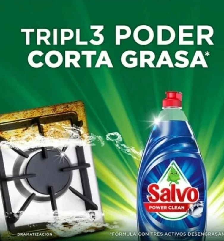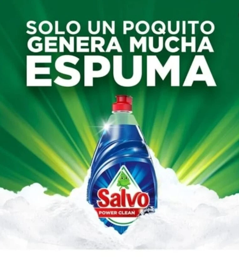 This is a bundle of 2 bottles of Salvo Lavatrastes Power Clean dishwashing soap, each containing 1.2 liters. The liquid soap is in a lemon scent and is suitable for use on dishes, countertops, and multi-surfaces. It is non-toxic, eco-friendly, and cuts through grease effectively. The soap is branded as Salvo Limon Lavatrastes and is designed for dishwashing and general cleaning purposes.