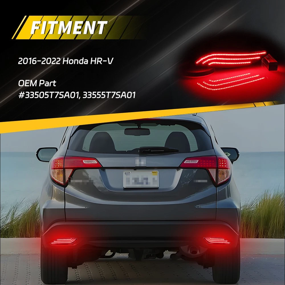 Red LED Tail Brake Signal Rear Bumper Reflector Lights For 2016-2022 Honda HR-V