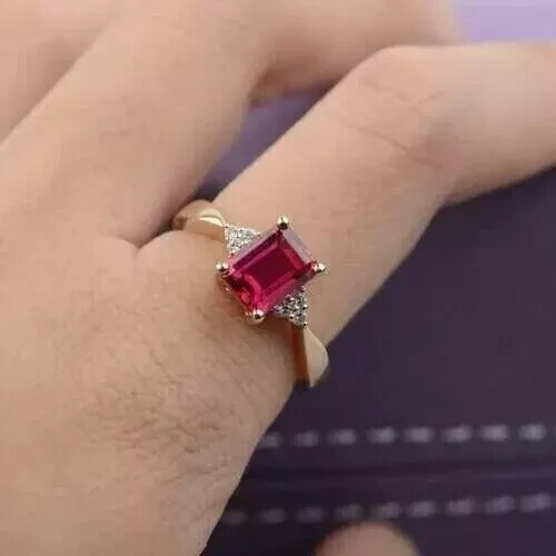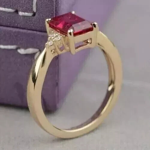 2ct Emerald Cut Lab Ruby Engagement Ring in 14k Gold Plated