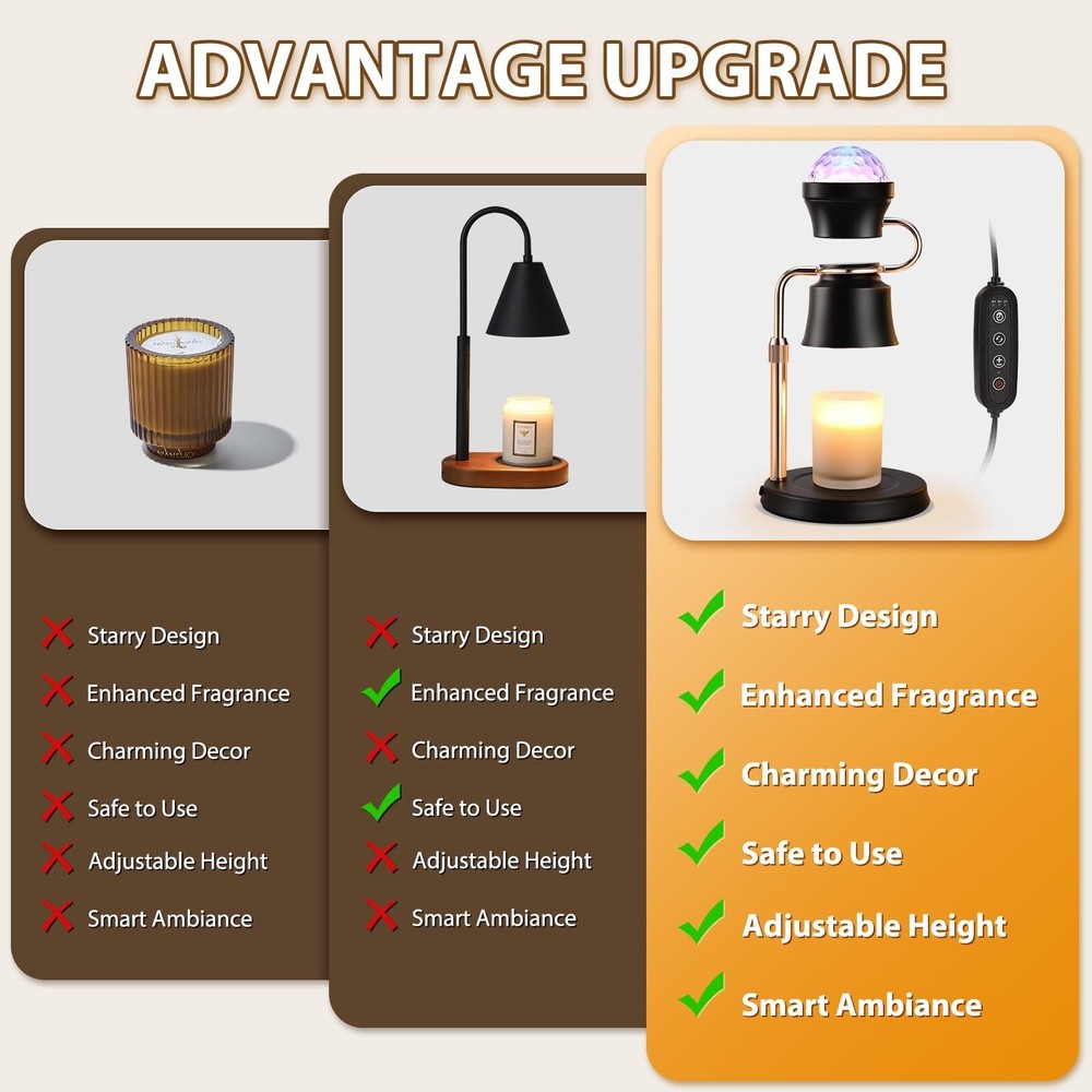 Candle Warmer Lamp with Timer, Dimming & Height Adjustment for Home Ambience