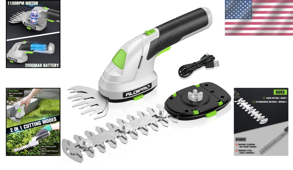 2-in-1 Cordless Hedge Trimmer Grass Shears 7.2V Battery Powered Garden Tool ‹ › ‹ › ‹ › ‹ › ‹ › ‹ › ‹ › ‹ › 2-in-1 Cordless Hedge Trimmer & Grass Shears 7.2V Battery Powered Garden Tool Elevate Your Gardening Experience: 2 in 1 Functionality: This versatile cordless hedge trimmer combines powerful pruning and precise cutting capabilities, effortlessly handling all your gardening needs with elegance and ease. Double Safety Design: The innovative double safety lock feature ensures that the trimmer starts only when both safety switches are pressed, providing extra peace of mind and safeguarding against accidental activation. Lightweight & Ergonomic: Weighing only 1.16 pounds, this electric hedge trimmer is crafted for comfort and flexibility. Its ergonomic handle allows for extended use without fatigue, handling intricate pruning with effortless grace. High-Capacity Battery: The built-in high-performance 2000mAh battery offers robust power, prolonging your pruning sessions without the hassle of constant charging. Achieve more in less time! Upgraded Cutting Blades: Featuring 65 manganese steel blades enhanced by laser cutting technology, this hedge machine ensures sharpness, durability, and precision for every cut, extending the lifespan of your tool. Why Choose Our Cordless Hedge Trimmer? Transform your gardening experience with our 2-in-1 Cordless Hedge Trimmer that harmonizes power and precision. Whether you’re tidying up the hedges or tackling grass shearing, this lightweight tool empowers you to make every cut effortlessly. Designed with safety and efficiency at the forefront, its unique features give you the confidence to tackle pruning tasks with unmatched ease. Don't let cumbersome tools weigh you down—elevate your gardening with elegance. Order your 2-in-1 Cordless Hedge Trimmer today and embrace the art of gardening! Shipping Free & Fast Shipping - We offer free shipping to most of the USA with a normal delivery time of 3-7 days. However, due to the current situation, additional delivery time (up to 3 weeks) may be required for some items. Alternative Carriers - We may use alternative carriers (e.g. USPS, FedEx, UPS, etc.) to ensure your package arrives safely and on time. Due to the use of multiple carriers, we are unable to provide a tracking number automatically. Handling Time - Orders are processed and shipped within 1-2 business days of receiving cleared payment. Shipping Restrictions - Shipping to Alaska, Hawaii, Puerto Rico, Guam, and other US territories may incur shipping charges or delivery restrictions. Please contact us before ordering, or your order can be refunded/cancelled. State Restrictions - There may be restrictions based on your state of purchase. For example, certain items may not be shipped to California due to state regulations. Contact for Tracking Updates - If you require tracking updates or have any concerns about the delivery of your order, please feel free to contact us, and we will be happy to assist you. Return 30-Day Hassle-Free Returns - We want you to be completely satisfied with your purchase. If you are not, you can return the item within 30 days of receiving it for a full refund or exchange. Easy Return Process - To start a return, simply contact us and we will provide you with a prepaid return shipping label and detailed instructions. Restocking Fee - There are no restocking fees for returns. However, the buyer is responsible for return shipping costs if the return is not due to a seller's error. Refund Processing Time - Refunds will be processed within 5 business days of receiving the returned item in its condition. Payment We accept all major credit cards, PayPal, and Apple Pay for your convenience. Your payment information is secure and encrypted to ensure a safe and seamless transaction. Please complete your payment within 3 days of purchase to avoid any delays in shipping. Feedback Your feedback is extremely important to us. We strive to provide the best products and customer service possible. If you are satisfied with your purchase, please take a moment to leave us a positive review. If you have any concerns or issues with your order, please contact us before leaving negative feedback. We are committed to resolving any problems and ensuring your satisfaction. Contact Us If you have any questions or concerns, please feel free to out to our customer support team. You can contact us through the eBay messaging system. We are available Monday to Friday, 9:00 am to 5:00 pm EST, and we will do our best to respond to your inquiry within 24 hours. Buy it now and enjoy a pleasant shopping experience! Unit Quantity: 2 Attachments Included: Grass Shear,Hedge Trimmer Features: Cordless,Lightweight,2-in-1,Double safety,Portable,High-capacity Battery,Upgraded Blade Accessories Included: User Manual Material: Plastic,Manganese Steel Type: Hedge Trimmer Power Source: Battery Voltage: 7.2 V Battery Life: Long-term pruning Noise Level: Low Color: Grey Blade Length: 7 Inches Item Diameter: 2 in Item Height: 4 Inches Style: Contemporary Item Weight: 2 lb Unit Type: lb