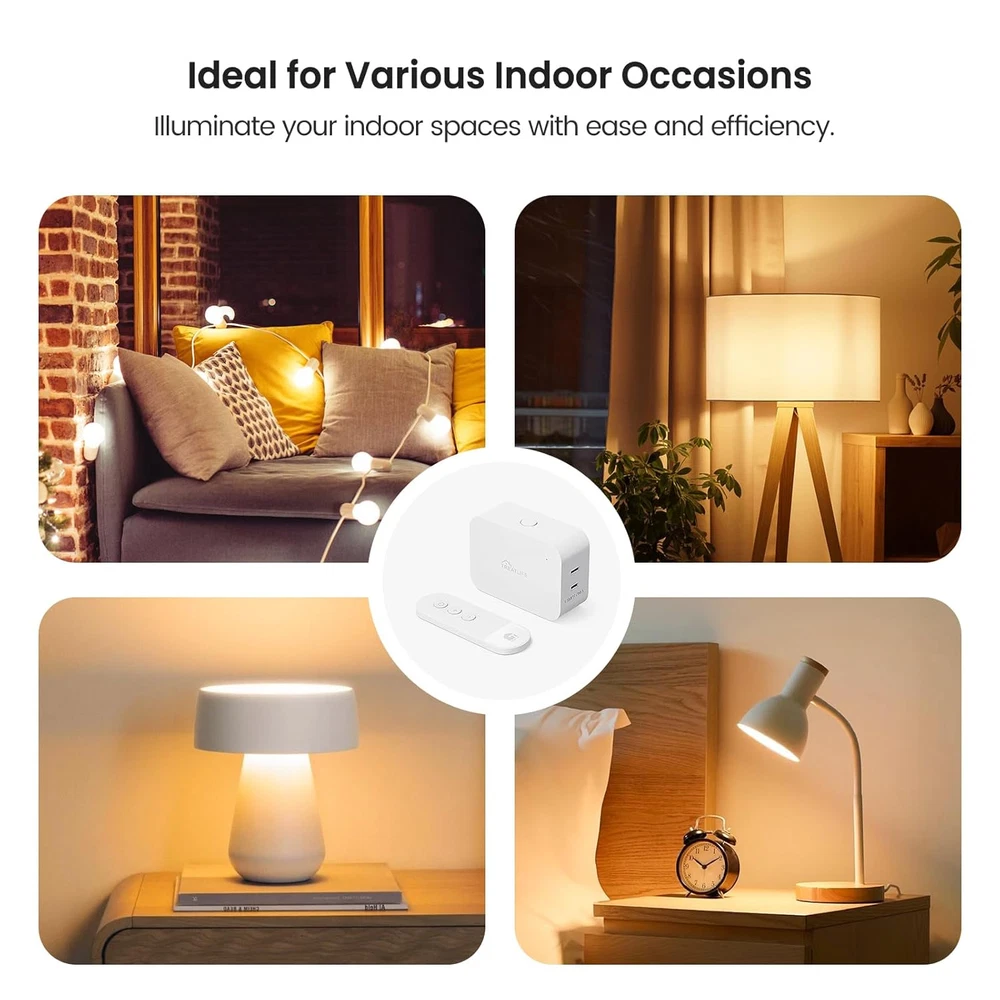 2 in 1 Dimmer Plug with Remote No Smart Features Wireless Remote Control Outlet Compatibility & Important Note: This is a NON-SMART device without app/WiFi//Google Home compatibility. Exclusively designed for standard dimmable bulbs requiring manual control, including LED/CFL bulbs (150W max per bulb) and halogen/incandescent bulbs (300W max). Not compatible with smart bulbs, DC transformers, ceiling fans, or USB-powered devices. Critical Reminder: Bulbs must be Dimmable Dual Outlet Compact Design: Please note that two outlets cannot be controlled separately. This lamp dimmer switch offers two sockets for simultaneous control of two dimmable lamps or string lights. Designed for compact spaces, ensures easy access to the bottom socket, even when the top one is in use. This feature not only saves on costs but also simplifies installation Light Brightness Adjustment: Enjoy smooth and continuous control over your dimming range, easily adjustable from 1% to 100% via the wireless remote control. Ideal for various lighting needs, including indoor dimmable floor lamps, string lights, bedside lamps, and seasonal decorations like day, or display Easy to Use: No disassembly or rewiring is required. Achieve remote ON/OFF and dimming functions with a single button click and long press, ensuring ease of use for all demographics, including elderly individuals with limited mobility, pregnant women, and people with disabilities. Our mission is to enhance convenience, safety, and energy efficiency, making life easier for everyone Quality Assurance: FCC listed for safety and quality assurance. Should any issues arise with the wireless remote control dimmer, our responsive support team is available to assist you and swiftly resolve any concerns Product Description Treatlife indoor and outdoor plugs that you may like Add to Cart Add to Cart Add to Cart Add to Cart Add to Cart Add to Cart Add to Cart Customer Reviews 4.4 out of 5 stars 157 4.2 out of 5 stars 5,814 4.6 out of 5 stars 84 4.4 out of 5 stars 466 4.1 out of 5 stars 1,833 4.3 out of 5 stars 1,702 4.4 out of 5 stars 220 Price $29.99 $ 29 . 99 $29.99 $ 29 . 99 $19.99 $ 19 . 99 $23.99 $ 23 . 99 $26.99 $ 26 . 99 $32.99 $ 32 . 99 $18.99 $ 18 . 99 /Google Compatible ✘ ✘ ✘ ✘ ✔ ✔ ✔ 2.4GHz WiFi Needed ✘ ✘ ✘ ✘ ✔ ✔ ✔ Dimmable ✔ ✘ ✘ ✔ ✔ ✔ ✘ Number of sockets 2 1 2 1 2 2 2 Control Methods IR wireless remote Control IR wireless remote Control IR wireless remote Control IR wireless remote Control APP/Voice/Touch APP/Voice/Touch APP/Voice/Touch Wattage 150W LED, 150W CFL, 300W INC 1800 Watts 1800 Watts 150W LED, 150W CFL, 400W INC 150W LED, 150W CFL, 300W INC 600Watts 1800 Watts Item dimensions L x W x H 3.35 x 2.24 x 1.26 inches Current Rating 2.5 Amps Operating Voltage 120 Volts Product Dimensions 3.35 x 2.24 x 1.26 inches; 6.4 ounces Circuit Type 1-way Country of Origin China Connector Type Plug In Terminal Spade Operation Mode ON-OFF Batteries 1 CR2032 batteries required. (included) Actuator Type Push Button Mounting Type Wall Mount Specification Met FCC Contact Type Normally Closed Switch Type Push Button Material Plastic Complimentary Shipping and Easy Returns Need to return something? Enjoy our 30-day hassle-free return policy! Take advantage of free shipping across all 48 contiguous states! Your order will be dispatched within 1-2 business days once payment is confirmed. Your Opinion Matters! Your happiness is our main goal! We welcome your feedback! If you encounter any problems, reach out to us right away, and we’ll be here to help. Explore the Extraordinary! Our collection showcases fascinating products that are sure to capture your attention. What surprises await you? Delve in and discover unique items that enrich your daily life. Don't miss the amazing things we have in store for you!