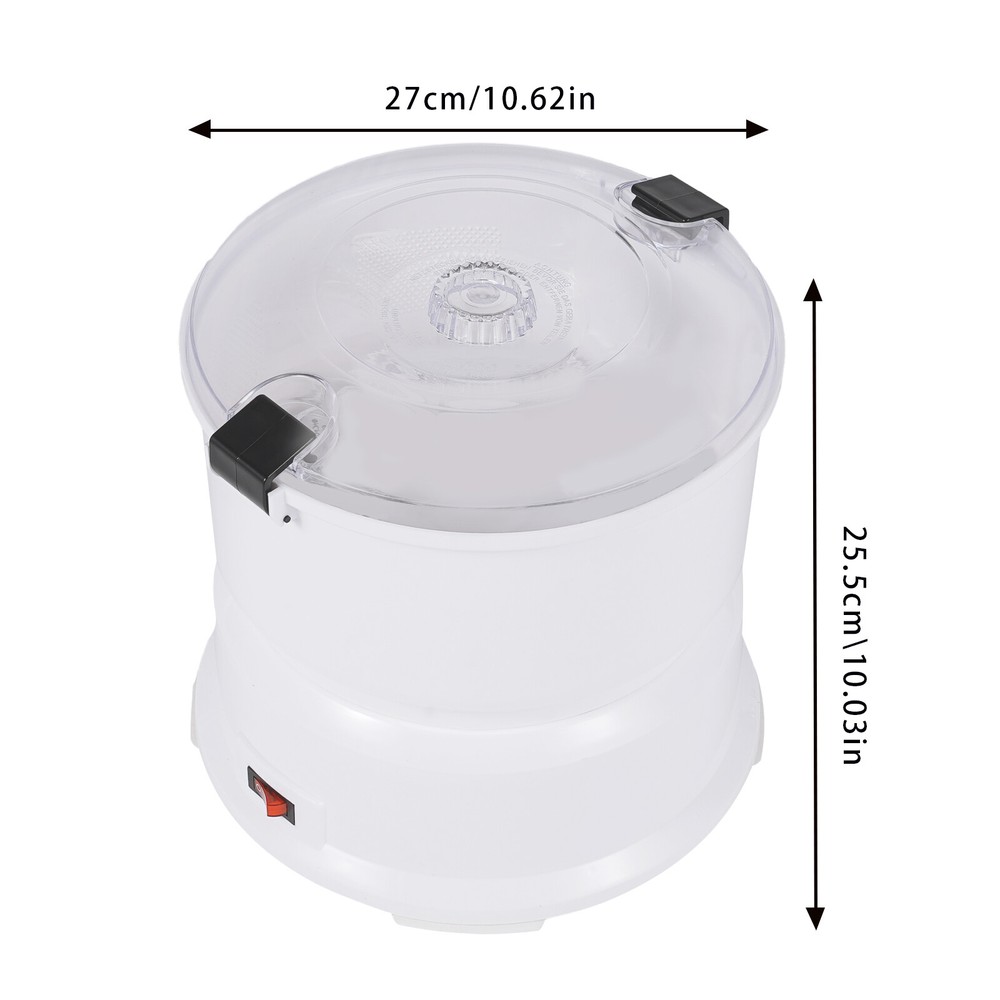 2-In-1 Electric Potato Peeler Kitchen Automatic Vegetable Potato Peeling Machine Description Are you still worried about the laborious and time-consuming potato peeling work? Our electric potato peeler machine can help you solve this problem. It can help you peel potatoes quickly and reduce your labor. The fully-automatic design frees up your hands by allowing you to have the machine start working automatically at the touch of a button. Our product will surely be your ideal choice! Key Features Sturdy and Durable: The product is made of high-quality ABS, PP, PS, and stainless steel with an injection molding process, which is hard, wear-resistant, corrosion-resistant, rust-resistant, harmless to health, sturdy, and durable. High Efficiency: With powerful 85W pure copper motor and a maximum capacity of 2.2 lbs, the peeling can be completed in about 1 minute, saving you time and effort. 2 in 1 Use: It can peel about 2.2 lbs of potatoes in addition to holding vegetables for drying, making it a great value for money with two machines in one! Simple Operation: This product adopts an automatic design, which can start peeling potatoes or dewatering vegetables with one button, so that you can free your hands and cook more conveniently! Effortless Cleaning: Thanks to the smooth surface, simple structure, and removable design, you can easily remove the dirt on it with a soft cloth and water. Easy Installation: The simple structure, complete accessories, and detailed instruction manual can help you complete the installation quickly and accurately. Ideal Gift: This practical and high-quality product is ideal for giving to your friends and family who love to cook and enjoy a more convenient way of cooking. Protective Packaging: The foam can better protect your product during transportation and make it delivered to you completely to the greatest extent. Good Customer Service: We stand behind all our guests and look forward to assisting you with your purchase. It is our pleasure to answer your confusion and questions. The end of the story between us is not "we sell and you buy". Details Safe Latches: They can securely fasten the components of the product to ensure the safety of your use. Clear Lid: It allows you to easily observe the status of the potatoes or vegetables in the machine. Anti-slip Pad: It can keep the product stable and less likely to slip off while you use it. Smooth Edge: The rounded and smooth edges not only add to the aesthetics of the product but also improve the safety of use. Application This product is suitable for home use and can be used to peel potatoes and dehydrate vegetables. It is suitable for peeling potatoes less than 2.2 lbs. Specification Model: AOT-P01 Color: White Style: Modern Material: ABS, PP, PS, Stainless Steel Process: Injection Molding Power Source: Corded Electric Plug Type: US Standard Assembly Required: Yes Voltage: 110-127V Power: 85W Peeling Time: About 1 mins Suitable Potato Single Weight: Less Than 100g/ 0.22lbs Maximum Capacity: 1kg/ 2.2 lbs Power Cord Length: 1.15m/ 3.77ft Gross Weight: 2.4kg/ 5.29 lbs Net Weight: 1.8kg/ 3.97 lbs Package Size: 28.3*28.3*27.5 cm/ 11.14*11.14*10.83in Product Size(D*H): 27*25.5 cm/ 10.62*10.03 in Package Included 1* Electric Potato Peeler Machine 1* Stainless Steel Peeler 1* Vegetable Dewatering Basket 1* Lid 1* English Manual Notes Please read the operating manual completely before use. And pay particular attention to the safety instructions included. Please note that continuous work will damage the motor and cause the speed to slow down. To keep this product in the best condition, please work once and standby for 15 minutes. Please note that this product is not for commercial use, only for home use. Please note that you don't need to add water for peeling potatoes. Please note that there is a safety lock between the upper drum and the base and a safety lock between the upper drum and the lid, if one of the two safety locks is not locked the machine will not work. Please allow the slight color difference caused by the shooting light and the 1-3 cm error due to manual measurement, and make sure you do not mind before ordering. Payment Delivery details Terms of sales About us Contact us Payment We accept ebay payment 。 Fees such as import duties, taxes are not included in the item price or shipping costs. These charges are the buyer's responsibility. Delivery details Shipping: 2-9 working days to: USA Terms of sales We maintain high standards of excellence and strive for hundred percent customer satisfaction. Feedback is very important to us. We hope that you contact us immediately before you give neutral or negative feedback, so that we can address your concerns. It is impossible to address issues if we do not know about them! About us Your satis faction is our ultimate goal. We work hard to earn your trust and future business. Our certified technicians have tested each item before shipping. The unit comes with 1 year limited warranty on all manufacturing defects. a) If you receive a defective item, you may return it or ask for a discount. Please contact us within 14 days after you receive the package. b) What you returned must be intact and in its original packaging as re? u. Customer is responsible for shipping costs of the returned item. c) We will cover the cost of shipping back t with the shipping rate indicated in the registration page. We will send you a new unit or refund the full payment you paid. Thank you. Contact us Business Hour Business Hour: Monday To Friday: 8:30 AM to 5:00 PM (Beijing China time) Due to time zones, our reply to your questions may not be immediately. But within above working time, we will reply your email within 24 hours. If it's non-workdays, please kindly be patient and wait till Monday. Please contact us with ebay message. Please feel free to contact us if you have any questions. Monday To Friday: 8:30 AM to 5:00 PM (Beijing China time) Due to time zones, our reply to your questions m