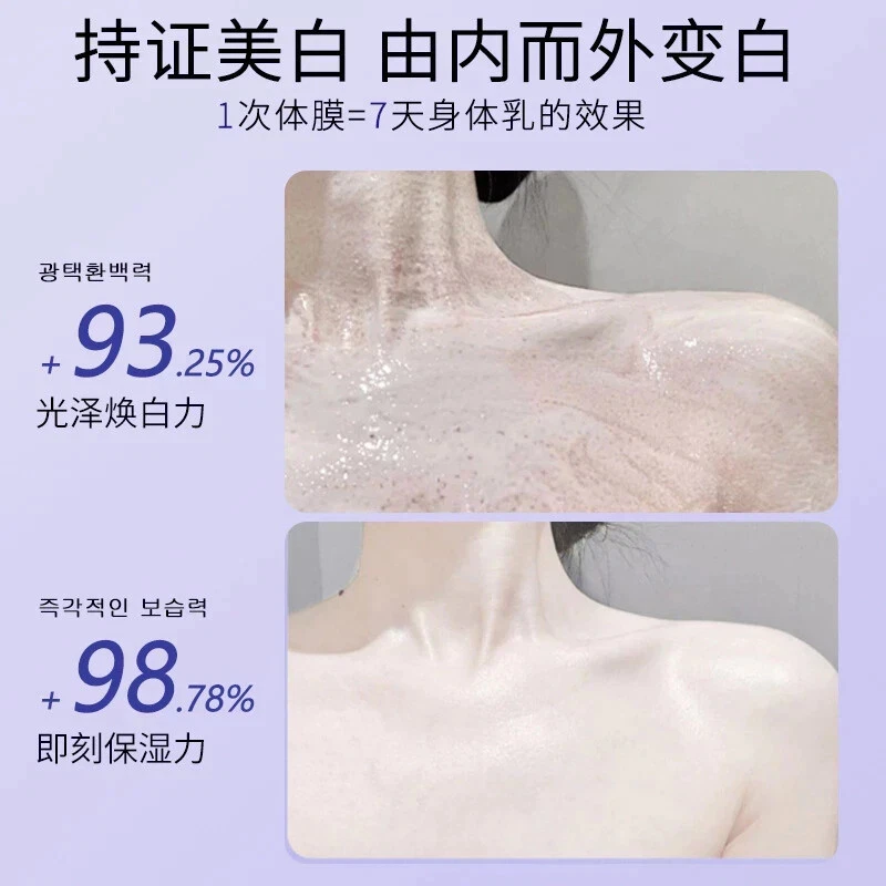 🌈☀️14 Days Brightening and Whitening Skin, Eliminate Dull Skin, Make Your Skin Look Fresh and New!!!☀️🌈 🆗 Two-in-One Whitening Body Mask Cream = Whitening Body Moisturizing Cream + Whitening Body Mask 🆗 1-time use of body mask = 7-day body moisturizing effect 🆗 The texture is light and soft, blends evenly into the skin immediately, is easy to apply, gives a smooth and soft skin effect without feeling sticky or heavy. 🆗 Contains two main whitening ingredients, namely Arbutin Extract and Niacinamide - Deeply repairs dull skin, reduces melanin formation, increases skin brightness, makes skin look bright and even naturally. ✨✨Benefits: ✔ Instantly brightens skin tone ✔ Can be used for face and body ✔ Improves dull skin, brightens and whitens skin ✔ Makes skin smooth, tightens skin ✔ Brightens and whitens from within, long lasting ✔ Moisturizes and softens rough skin texture ✔ Antioxidant, anti-aging, makes skin look younger ✔ Increases skin elasticity, makes skin softer ✔ Protects skin from free radical damage ✔ Improves skin texture, makes face look radiant ✨✨Ingredients: 🌹Arbutin: Inhibits melanin formation, cleanses skin layers, brightens skin tone 🌹Niacinamide: Antioxidant, brightens, helps improve dull and rough skin 🌹Ascorbyl Ethyl Ether: Prevents melanin formation, effectively brightens skin tone 🌹Glycerin: Moisturizes and locks in water, reduces wrinkles and roughness, promote skin repair 🌹Tocopheryl Acetate: Prevents environmental damage to the skin, reduces skin aging 🌹Xanthan Gum: Maintains skin moisture, gentle to the skin, not easy to cause irritation or allergic reactions ✨✨How to use: ❤️Method 1: Use as a body mask after bathing 3-4 times a week. After use, wait 15 minutes, rinse with clean water, the skin will be clean and smooth. ❤️Method 2: Use as a body moisturizer after washing your face in the morning and evening ✅ Safe for teenagers ✅ Does not contain alcohol, bleach ✅ Does not contain mercury ✅ Does not cause irritation