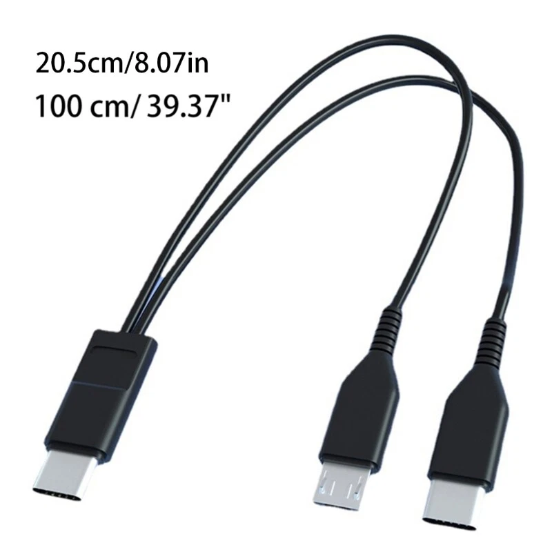 Features: Standard USB C to USB C and Micro-USB cable connects your devices with USB C port like laptop, PC to mobile or tablet with type c or micro usb port. Premium aluminum alloy for shell and gold-plated connector add additional durability and stability to this cable, which makes it more durable than normal usb c cables. It supports 5V 2A charging, cannot transmit data, and can two devices at the same for time. 2 in 1 seems and easily portable. for most phones, tablets and other devices with USB C and Micro USB on the market. Specifications: Color:Black,White Length:Approx.25cm/9.84in,100cm/39.37in(optional) Package Includes: 1x 2 in 1 USB C Cable note: Please allow 1mm errors due to manual measurement. Due to the difference between different monitors, the picture may not reflect the actual color of the item.