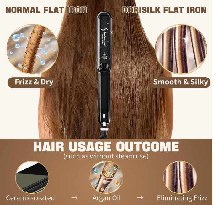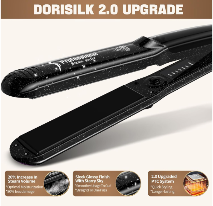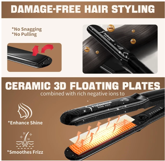 2-in-1 Steam Flat Iron Hair Straightener with Ceramic Tourmaline Styler