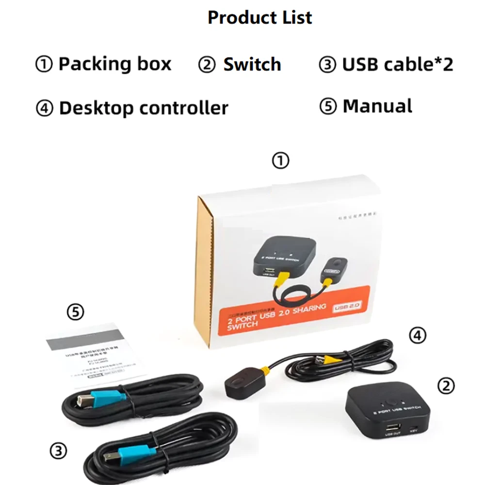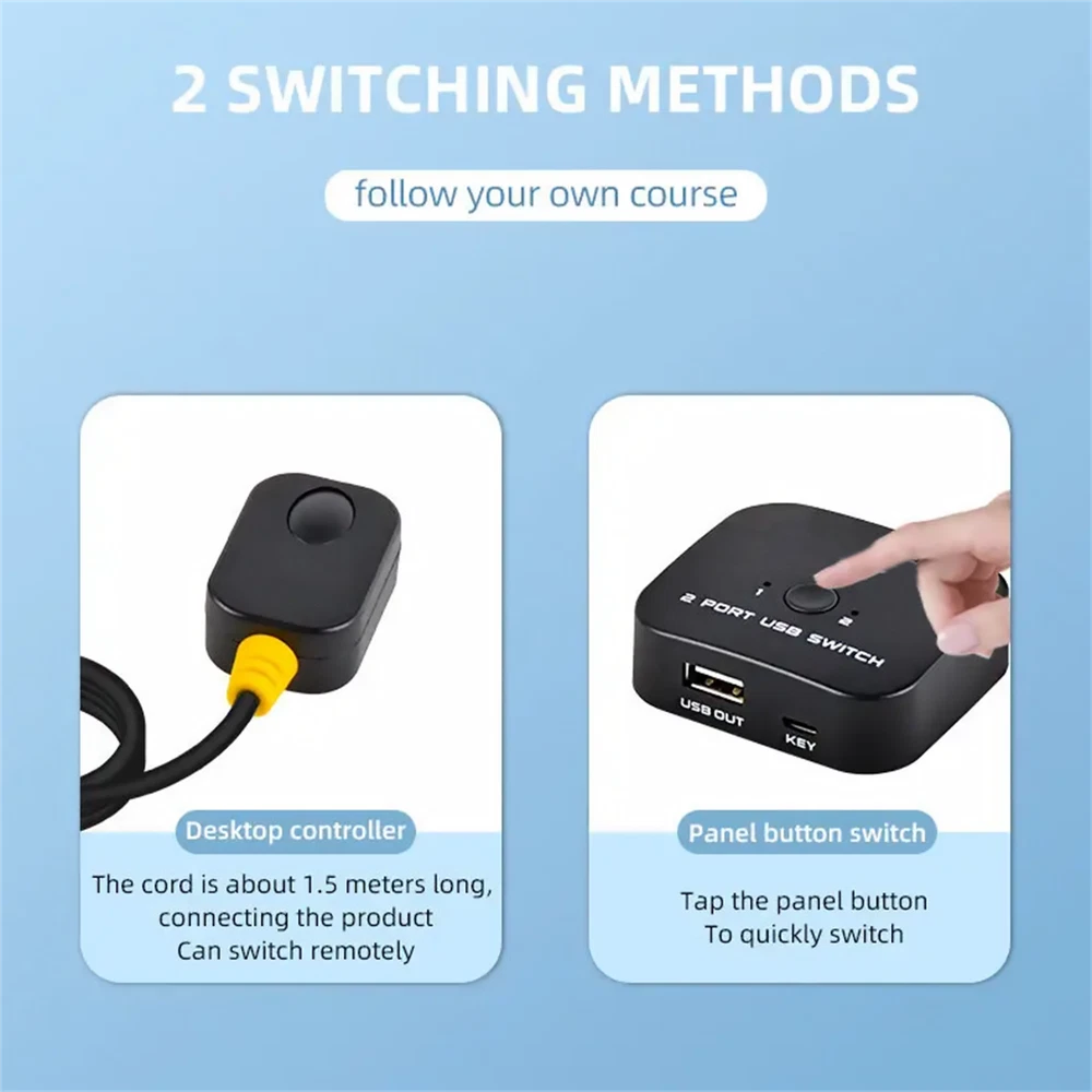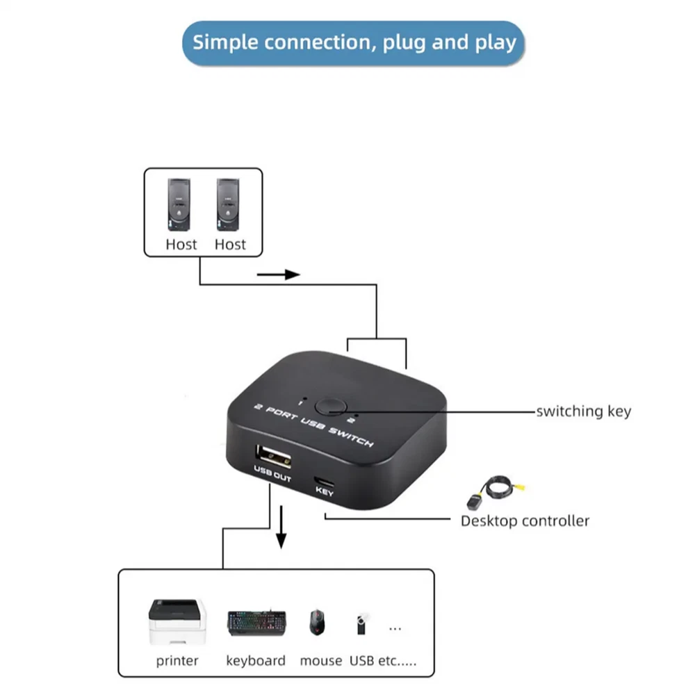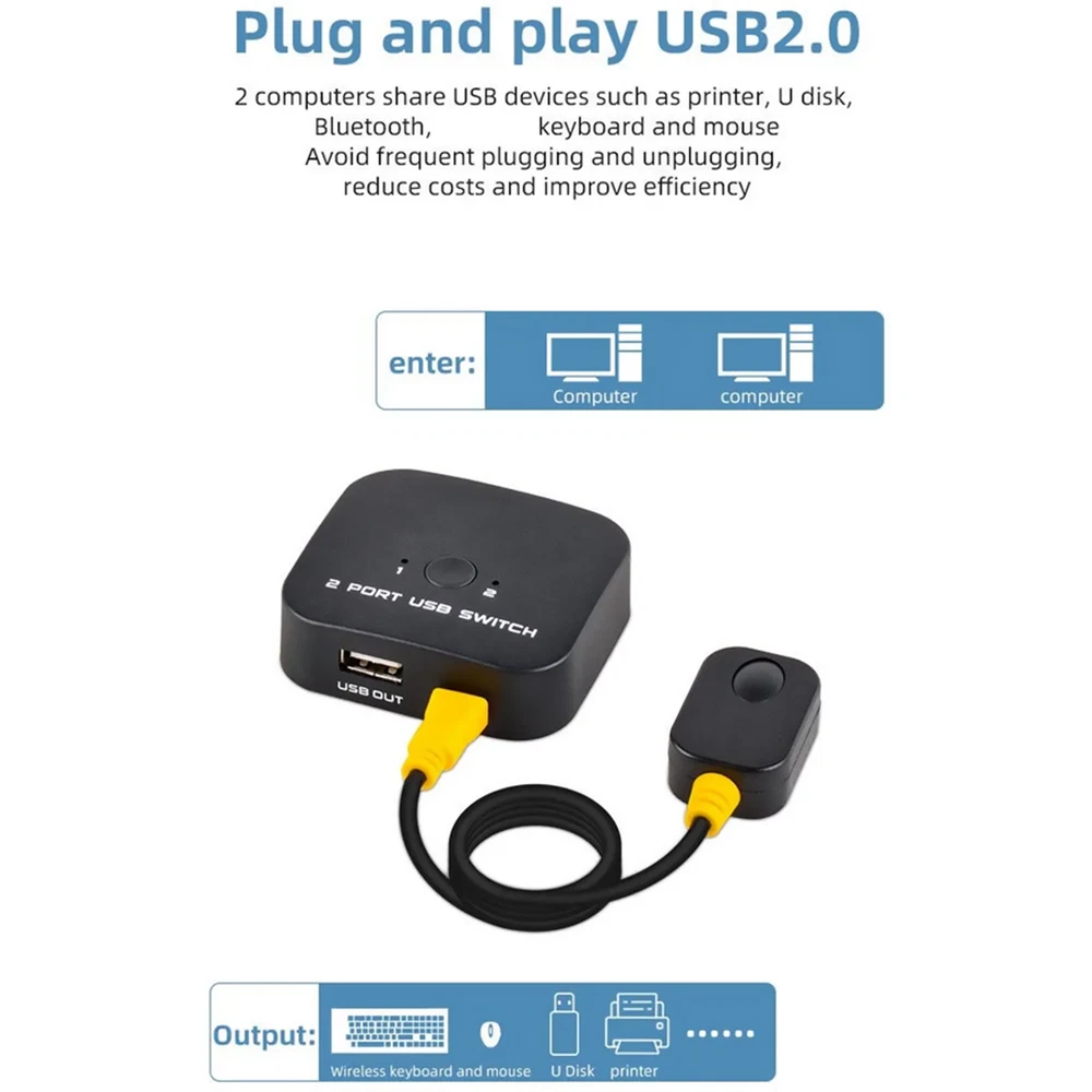 Product Description For Keyboard Mouse Printer 2 In 1 Out USB Sharing Switch With Desktop Controller USB 2.0 Switch USB Shared Switcher 2 In 1 Out For PC Keyboard Mouse Printer USB Switch With Desktop Controller Specifications: Product name: USB 2.0 shared switch 2 in 1 out Input: 2*USB-B for connecting computer Output: 1*USB-A for connecting printer Shell: ABS environmentally friendly material Function: 2 computers share 1 USB devices Standard: USB 2.0 Switching method: Button switching/ desktop control switching Feature: 2 Port USB Switch: The USB Switcher allow 2 computers to share 1 USB device, such as printer, scanner, mouse, keyboard, USB disk, card reader, etc. USB 2.0 Switcher: With stable transfer speed, data transfer speeds up to 480Mbps. Backward compatible with USB 1.1 devices. Provided USB signal input line is 1.5 meters. 2 Switching Method: Push the panel button or desktop controller. No need to plug and unplug between 2 computers constantly, improve work efficiency and quality. USB Switcher 2 Computers: Easy to use. Plug and play, no need driver and external power supply. The LED indicator shows the computer under control easily. Package Included: 1x USB Sharing Switch 2x USB cable 1x Desktop controller 1x User Manual If you have any questions, please feel free to contact us via ebay. We usually respond within 24 hours. Payment Shipping Returns Contact Us We accept all verified payments from ebay. Orders will be shipped after receiving cleared payment. Payment due within 7 days after auction ends and for buy it now listings. We ship most of our orders within 24 hours, and may up to 48 hours for. If you want faster shipping way. Please contact us before making payment. Sometimes due to problems with our transportation company system, your shipping information may be delayed to update. We recommend that you try again after 3-4 days. If you still haven't checked the shipping information, you can contact us by ebay message. Always believe we can figure things out with communication, if it comes to return, the pacakge must be intact and the same as you receive. If you have any questions, please feel free to email our service specialists 24 Hours a Day, 7 Days a Week. We will reply you ASAP. Return/refund is accepted within 30 days after the buyer receives the item. NO exchange will be accepted after 30 days from the date when the item is received. Please contact us first before returning your product!!! If you have any questions, our Customer Service staffs welcome you to email us. We strive to answer all questions and resolve any problems as quickly as possible. You can contact us 7*24, we will reply at the first time, and we will surely solve your problems. Note: 1.We try our best to reply to your emails as soon as possible, however, due to high volume of daily incoming emails and time zone difference, we may not be able to reply your emails immediately. Please allow 1 business days for us to response. If you do not receive any reply from us, please check your email ensuring your mailbox has not reached full size. 2.Due to some ISP SPAM filter settings, you may not be able to receive our replies; if you have problems receiving our emails, you may need to use a different email account to contact us. 3.Please give us the opportunity to resolve any problem. We understand the concerns and frustrations you might have, and will try our best to resolve the issues. Please email us before leaving any negative feedback or open any dispute on PayPal. 4.We care about our valued customers, and will always try to help you. So if you have any problems, please e-mail us immediately. Payment We accept all verified payments from ebay. Orders will be shipped after receiving cleared payment. Payment due within 7 days after auction ends and for buy it now listings. Shipping We ship most of our orders within 24 hours, and may up to 48 hours for. If you want faster shipping way. Please contact us before making payment. Sometimes due to problems with our transportation company system, your shipping information may be delayed to update. We recommend that you try again after 3-4 days. If you still haven't checked the shipping information, you can contact us by ebay message. Returns Always believe we can figure things out with communication, if it comes to return, the pacakge must be intact and the same as you receive. If you have any questions, please feel free to email our service specialists 24 Hours a Day, 7 Days a Week. We will reply you ASAP. Return/refund is accepted within 30 days after the buyer receives the item. NO exchange will be accepted after 30 days from the date when the item is received. Please contact us first before returning your product!!! Contact Us If you have any questions, our Customer Service staffs welcome you to email us. We strive to answer all questions and resolve any problems as quickly as possible. You can contact us 7*24, we will reply at the first time, and we will surely solve your problems. Note: 1.We try our best to reply to your emails as soon as possible, however, due to high volume of daily incoming emails and time zone difference, we may not be able to reply your emails immediately. Please allow 1 business days for us to response. If you do not receive any reply from us, please check your email ensuring your mailbox has not reached full size. 2.Due to some ISP SPAM filter settings, you may not be able to receive our replies; if you have problems receiving our emails, you may need to use a different email account to contact us. 3.Please give us the opportunity to resolve any problem. We understand the concerns and frustrations you might have, and will try our best to resolve the issues. Please email us before leaving any negative feedback or open any dispute on PayPal. 4.We care about our valued customers, and will always try to help you. So if you have any problems, please e-mail us immediately. powered by