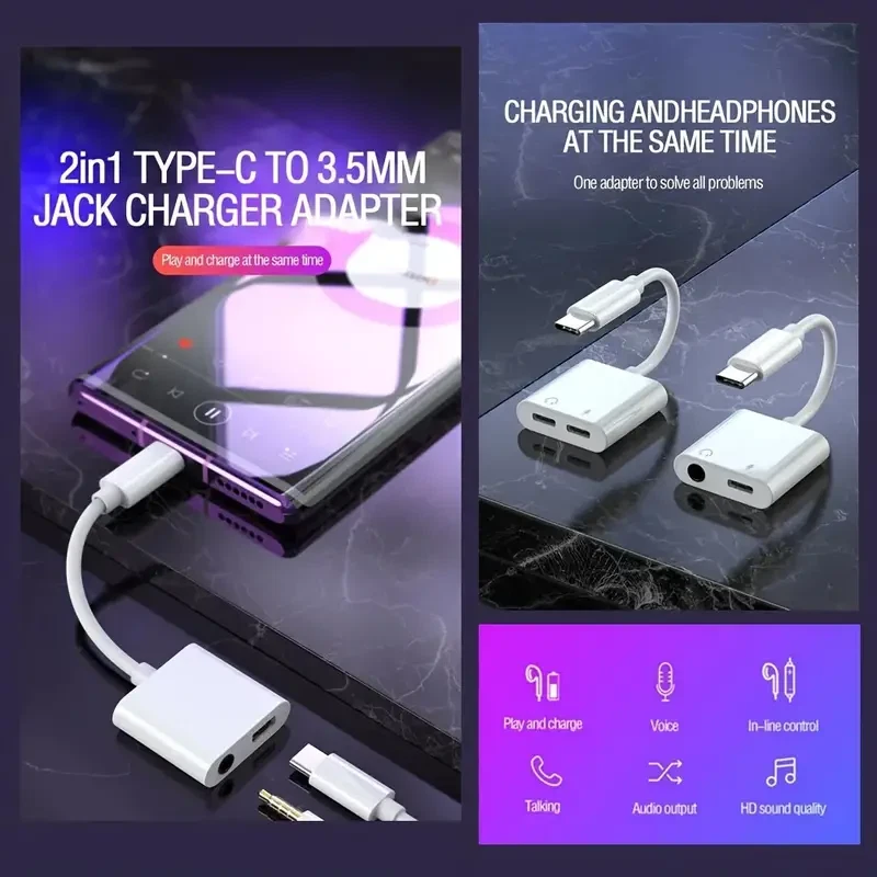 This 2-in-1 adapter is a game-changer! The sound quality is crisp and clear with no loss in audio, and I love that I can charge my phone while listening to music. The reversible Type-C plug makes it super convenient, and the slim design is perfect for tossing in my bag. No more struggling with separate cables—this little gadget does it all effortlessly. Highly recommend for anyone who wants convenience without sacrificing performance!