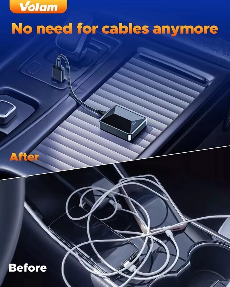 This wireless adapter is a game-changer! No more fumbling with cables—just plug it in, and CarPlay/Android Auto connects instantly. The setup is super easy, and the connection stays stable even on long drives. Love how it keeps all my car’s original functions while adding wireless freedom. Works flawlessly with my iPhone and my friend’s Android, making it perfect for shared cars. A must-have for anyone tired of dealing with wires!