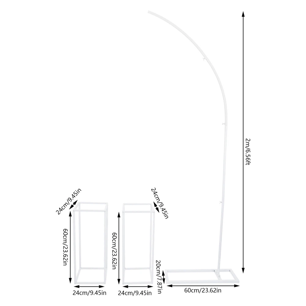2m/6.56ft Arched Stand Height,Wedding Centerpieces,Metal Wedding Flower Stand Welcome to our store~ Description A successful wedding cannot be achieved without beautiful flowers to set the mood. The wedding flower stands are made of high-quality steel tubes with a stable structure, which allows you to place the flowers firmly and neatly. Its simple structure and smooth surface make it easy to install and clean. You can place it indoors or outdoors. You can use various items to decorate it and make your wedding more romantic. Key Features Sturdy and Durable: They are made of high-quality steel tubes with a high-temperature baking paint process, which is wear-resistant, rust-resistant, and not easily deformed, ensuring a long service life. Set of 3: The three-piece package includes one arch stand and two square stands, which are cost-effective and can be applied to different scenes to create different visual feasts. DIY Fun: They allow you to give full play to your imagination and creativity to dress it up. You can use flowers, green plants, balloons, gauze, garlands, vines(not included), etc. to create a unique backdrop. Strong Load Capacity: The high-quality steel tube (each round tube diameter: 0.75in) and rectangular structure ensure that it can hold about 22.05lbs, so you can confidently place flowers, balloons, etc. Easy to Move: It's lightweight(net weight: 6.17lbs) and detachable design making it easy to move it to any place that needs to be decorated without much physical effort. Elegant Appearance: The rectangular frame with classic white makes them more eye-catching and beautiful. With beautiful decorations on them, the backdrop stands appear elegant and romantic. You can apply them to any wonderful scene you want. Easy to Clean: Thanks to their smooth surface and simple construction, you can easily clean them with water and a soft cloth. Assembly in A Breeze: With a simple structure, detailed installation diagram and complete accessories, you can put them together quickly and enjoy the assembly process. Ideal Gift: This practical product will surprise your friends who need to hold weddings or parties, bringing them better decorative effects. Quality Service: We are honored that you have chosen our product. We have sufficient confidence in the quality of the product so that you can buy it confidently. But if you have any questions, you can contact our customer service, he will patiently answer and solve your problems. Details Rounded Edges: They not only enhance the aesthetics of the product but also improve safety during installation and use. Rectangular Base: You can place some heavy items on top of it to increase the sinking force to ensure that items such as balloons and ribbons (not included) are placed more stably without tipping. Application It is suitable for weddings, birthday parties, Christmas parties, happy Valentine’s Day decorations, banquets, anniversary celebrations, school opening ceremonies, graduation party decorations, candy buffets, dessert tables, bachelor parties, photo booth background decorations, store openings, baby showers, graduation parties, and other special events that you want to decorate. Specifications Material: Steel Process: High-temperature Baking Paint Color: White Style: Modern Shape: Rectangular, Arch Mount Type: Free Standing Assembly Required: Yes Each Stand Load-bearing Capacity: 10kg/22.05lbs Each Round Tube Diameter: 19mm/0.75in Each Square Tube Cutting Size: 2*2cm/0.79*0.79in Number of Pieces: 3 Gross Weight: 3kg/6.61lbs Net Weight: 2.8kg/6.17lbs Arched Stand Base Size: 60*20cm/23.62*7.87in Arched Stand Height: 2m/6.56ft Each Square Stand Size: 24*24*60cm/9.45*9.45*23.62inch Pakage Size: 62*30*8cm/24.41*11.81*3.15in Package Included 3* Wedding Flower Stands 1*Installation Diagram All Accessories for Assembly Notes Please note that decorations such as flowers are not included in this product. Please allow the slight color difference caused by the shooting light and 1-3cm error due to manual measurement, and make sure you do not mind before you order. Payment Delivery details Terms of sales About us Contact us Payment We accept ebay payment 。 Fees such as import duties, taxes are not included in the item price or shipping costs. These charges are the buyer's responsibility. Delivery details Shipping: 2-9 working days to: USA Terms of sales We maintain high standards of excellence and strive for hundred percent customer satisfaction. Feedback is very important to us. We hope that you contact us immediately before you give neutral or negative feedback, so that we can address your concerns. It is impossible to address issues if we do not know about them! About us Your satis faction is our ultimate goal. We work hard to earn your trust and future business. Our certified technicians have tested each item before shipping. The unit comes with 1 year limited warranty on all manufacturing defects. a) If you receive a defective item, you may return it or ask for a discount. Please contact us within 14 days after you receive the package. b) What you returned must be intact and in its original packaging as re? u. Customer is responsible for shipping costs of the returned item. c) We will cover the cost of shipping back t with the shipping rate indicated in the registration page. We will send you a new unit or refund the full payment you paid. Thank you. Contact us Business Hour Business Hour: Monday To Friday: 8:30 AM to 5:00 PM (Beijing China time) Due to time zones, our reply to your questions may not be immediately. But within above working time, we will reply your email within 24 hours. If it's non-workdays, please kindly be patient and wait till Monday. Please contact us with ebay message. Please feel free to contact us if you have any questions. Monday To Friday: 8:30 AM to 5:00 PM (Beijing China time) Due to time zones, our reply to your questions may not be immediately. But within above working time, we will reply your email within 24