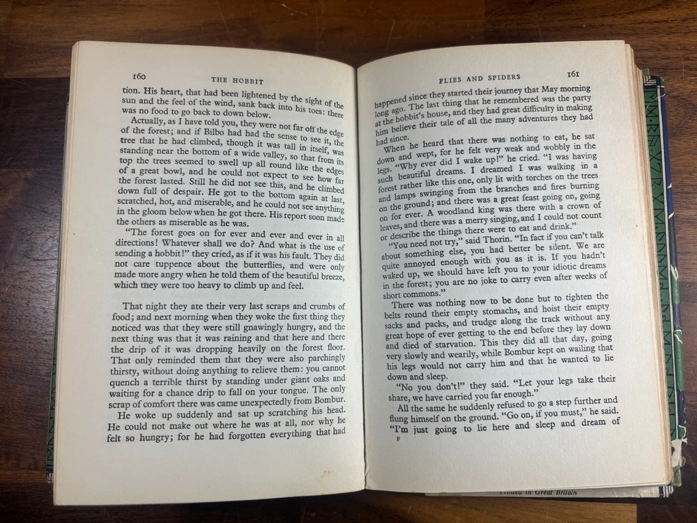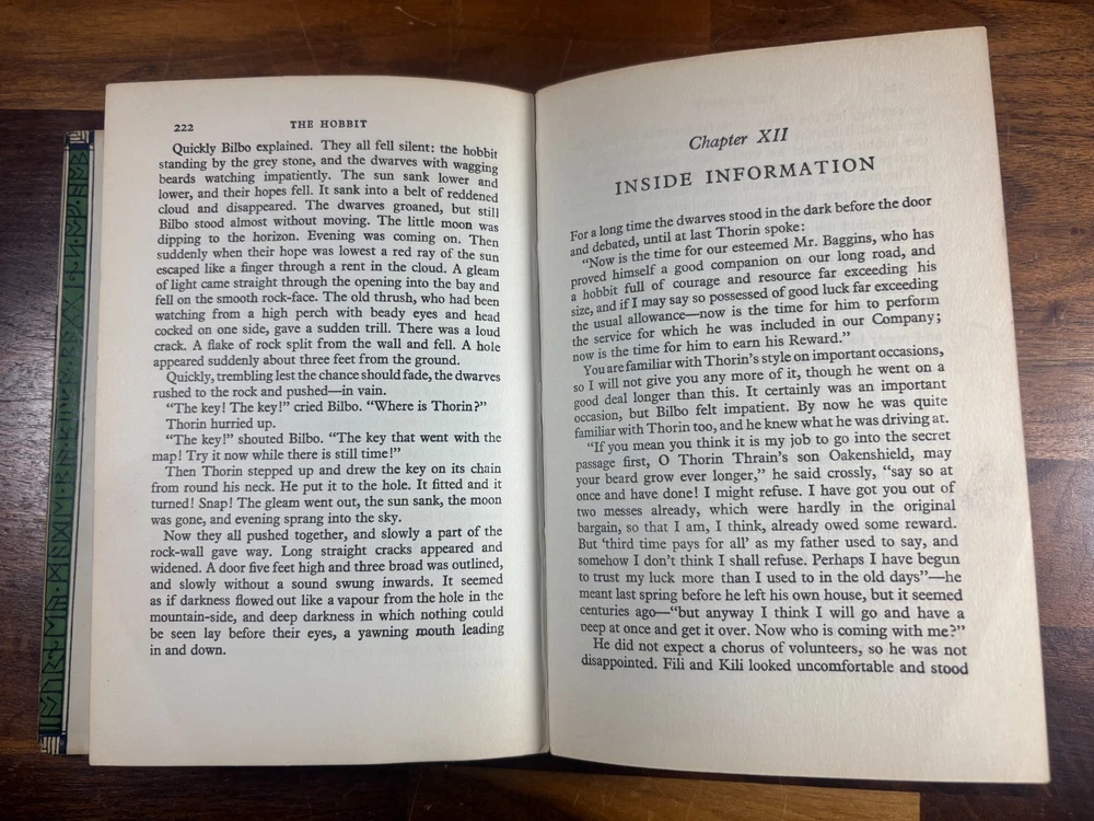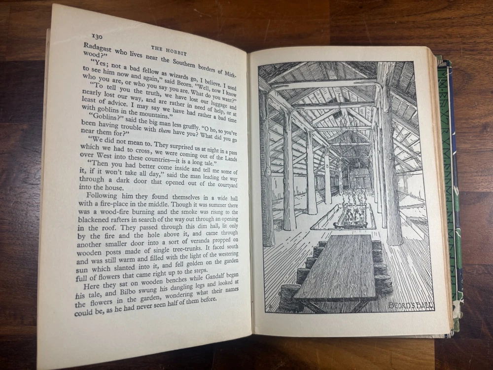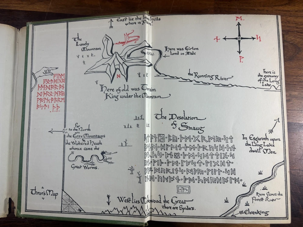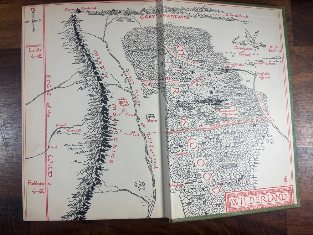 An original Second Edition, 8th Impression (1961) of The Hobbit , by J. R. R. Tolkien, published by George Allen & Unwin Ltd, London. This is a genuine early UK printing, confirmed by the publisher’s imprint page listing the 8th Impression (1961), with the full printing history present and intact. The book retains its original Tolkien-designed dust jacket, featuring the iconic mountain, forest, and runic border artwork by the author himself, a highly desirable collector feature. Complete with all original illustrations and maps, including the Desolation of Smaug map and Tolkien’s internal artwork. Publication Details: Title: The Hobbit, or There and Back Again Author: J. R. R. Tolkien Illustrated by: The Author Publisher: George Allen & Unwin Ltd, London Printer: Unwin Brothers Ltd, Woking and London Edition: Second Edition Impression: 8th Impression Year: 1961 Original price: 12s. 6d. net Dust jacket: Original, Tolkien-designed Maps: Present and complete Illustrations: Present and complete Condition: Book: Green cloth boards clean and bright Binding firm and intact Spine artwork clear Pages clean and well preserved No inscriptions or ownership marks No loose pages Maps and illustrations intact Dust Jacket: Edge chipping and tears Spine splits and creasing Old internal tape repairs to flaps Small losses at folds and edges On Tolkien and the Hobbit The Hobbit was first published in 1937, marking the literary debut of Middle-earth and the beginning of one of the most influential mythologies in modern literature. Tolkien initially wrote the story as a children’s tale for his own family, but its depth, linguistic richness, and mythic structure quickly distinguished it from contemporary fantasy. The success of The Hobbit directly led to the creation of The Lord of the Rings, transforming Tolkien from a university professor of philology into one of the most important literary figures of the 20th century. The Second Edition (1951) introduced Tolkien’s first major textual revisions, aligning the story more closely with the emerging legendarium of Middle-earth. These post-1951 editions represent the canonical version of the text as integrated into Tolkien’s wider mythology. The 1961 8th Impression belongs to the early post-war Tolkien publishing era, a period when Tolkien’s readership expanded rapidly in the UK and internationally, prior to the mass-market paperback boom. Books from this period remain highly collectible as early authentic Allen & Unwin printings, produced before Tolkien became a global cultural phenomenon. The dust jacket artwork, designed by Tolkien himself, is considered one of the most iconic pieces of fantasy book design in literary history, making original jackets especially desirable among collectors. Collection Details: Genuine early UK printing Original Allen & Unwin publication Original Tolkien-designed dust jacket Complete maps and illustrations Verified printing history page Highly collectible Tolkien period edition