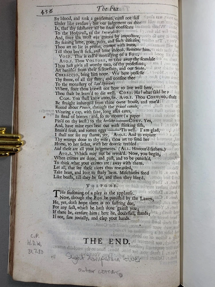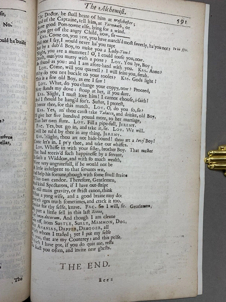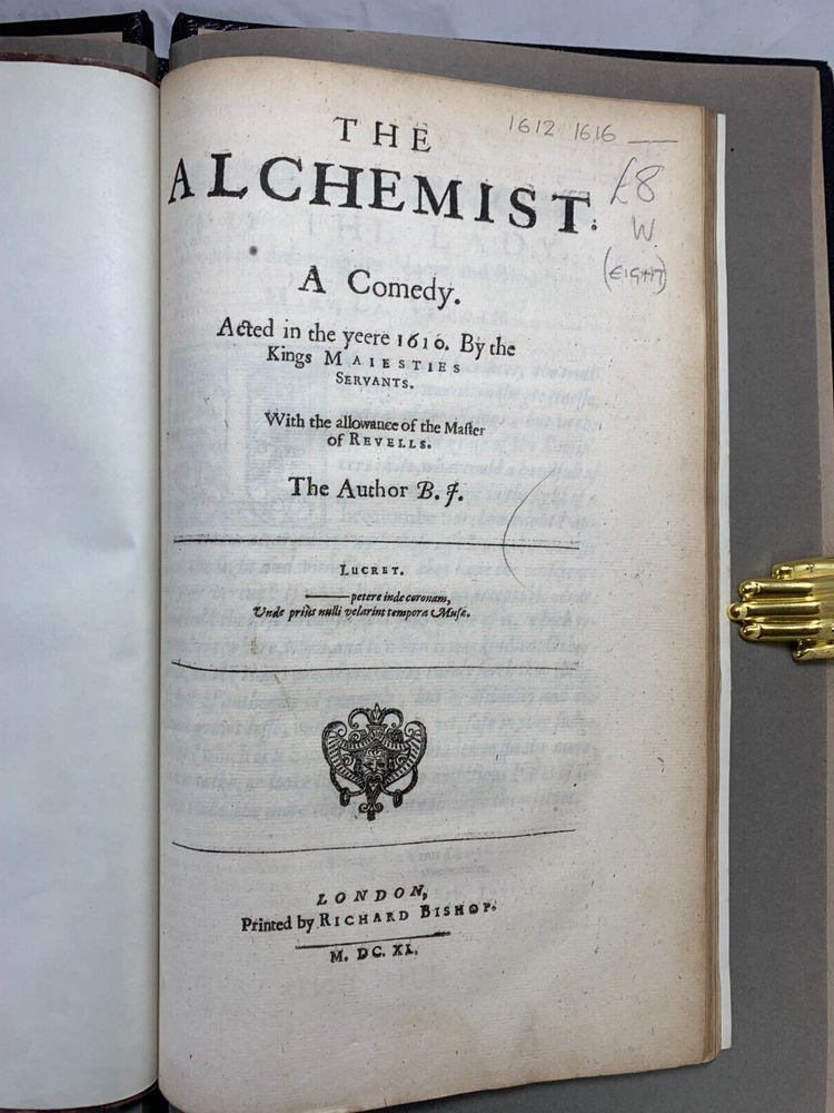 Original 2nd Folio Ben Jonson's Fox And Alchemist Plays 1640, Shakespeare's Contemporary This is part of an original Ben Jonson folio in very good condition pages are crisp and not torn despite being 385 years old. These are two of the most popular plays made by Ben Jonson the Fox and the Alchemist. These were first acted in 1605 and 1610 respectively. This is interesting as Ben Jonson and Shakespeare were not only contemporaries but actively interacted one another. Ben Jonson wrote a eulogy, that then became, the introduction for Shakespeare's first folio in 1623. These plays have been recently rebound with black leather. Dimensions: Weight - 710g Height - 34.5cm Width - 23cm Thickness - 2.5cm Damage (Please see above photos for reference): NOT original binding A very small amount of foxing predominantly found on the title page. Occasional writing in pencil can be found