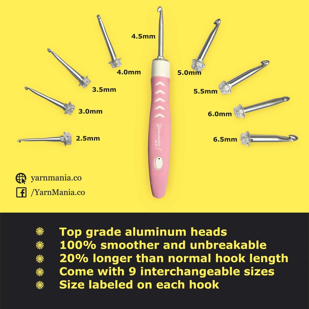 These light-up crochet hooks are a game-changer! The rechargeable handle is so convenient, and the adjustable brightness lets me work comfortably even in low light. The 9 interchangeable sizes make it easy to switch between projects, and the grip feels great in my hands. No more straining my eyes—now I can crochet anywhere, anytime. Highly recommend for anyone who loves crafting on the go or in dim spaces!