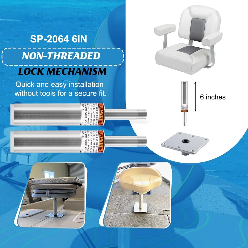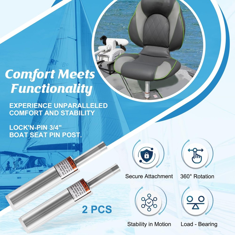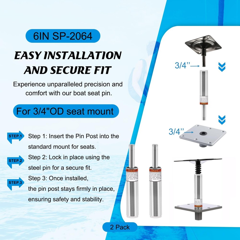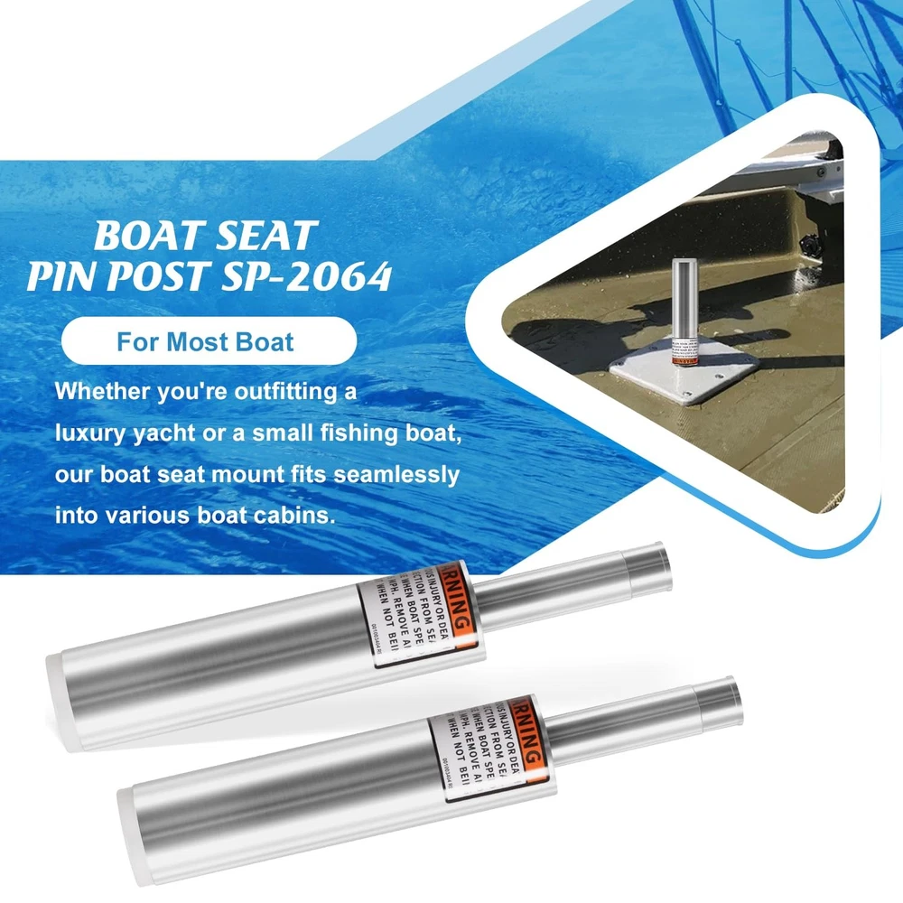 2-pack 3/4" Boat Seat Pin Boat Pedestal Post 6IN for Pontoon, Fishing/Bass Boats (2- PACK) 3/4" Boat Seat Pin Boat Pedestal Post– 6 Inches Tall, 1.5-Inch Diameter, Non-Threaded, Aluminum Pin for Marine Applications for Pontoon, Fishing & Bass Boats SP-2064 (6IN) 3/4" Diameter: The Lock'N-Pin has a 3/4" diameter, which is a standard size that makes it suitable for a wide range of boat seats. This specific size is designed to fit into corresponding holes and receptacles on fishing, pontoon, or cruising boat seats, ensuring a proper and secure fit. Non-Threaded Design: The non-threaded feature of this pin post simplifies the installation and removal process. It allows for quick and easy adjustment of the boat seat position without the need to screw or unscrew a threaded pin. This is especially convenient when you need to reposition the seat frequently during a fishing trip or a cruise. Versatile Use: It can be used for various types of boat seats, including those on fishing boats, pontoon boats, and cruising boats. Whether you're casting a line on a fishing boat, relaxing on a pontoon, or enjoying a cruise, this pin post helps to keep the seat in the desired position, enhancing the overall comfort and functionality of the seating arrangement. Strength and Longevity: Made from high-quality materials, this pin post is built to withstand the harsh marine environment. It is constructed from corrosion-resistant stainless steel and aluminum. Its durable construction ensures a long-lasting performance, reducing the need for frequent replacements. Easy Removal and Adjustment: When it's time to adjust the seat position or remove the seat entirely, the Lock'N-Pin can be quickly and easily removed. This flexibility allows boat owners to customize their seating arrangements according to their needs and the activities they are engaged in, such as fishing, socializing, or simply enjoying the view. Payment Delivery details Terms of sales Returns Contact us Payment 1. All major credit cards are accepted through our secure payment processor Payoneer. 2. Please make sure your Shipping address is correct before you pay, cause it cannot be changed once the order shipped out. Delivery details 1. We only ship to confirmed ebay addresses. Your ebay address MUST MATCH your Shipping address. 2. Please read the shipment and payment detail carefully before you bid. Terms of sales ★If there are any problems with our products, Please feel free to contact us. We will always here to solve them for you. We should try our best to make a happy easy transaction. ★If you are satisfied with our products and our service, please tell your friend and leave us positive feedback. If you are not satisfied with our products or service, please DO tell us. Returns 100% Satisfaction Guarantee: Your satisfaction is our priority. We strive to give our customers excellent service.All our products support 60-Day money-back guarantee, 12-Month warranty for quality-related issues. Simply return it for your warranty. Contact us Any Questions,Just feel free to contact us on eBay.We will reply you in 1-2 business day.