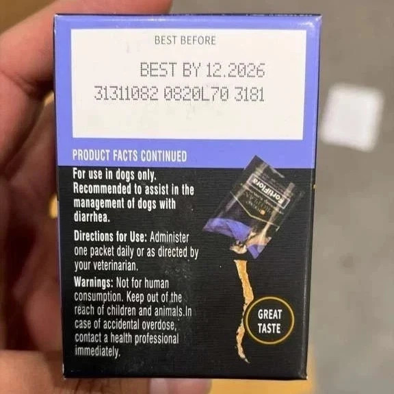 2-pack Purina FortiFlora Pro Plan Veterinary Probiotic DOG Supplement-90 Sachets EXP_12_2026 Purina FortiFlora Pro Plan Veterinary Probiotic Dog Supplement – 90 Sachets Support your dog’s digestive health with Purina Pro Plan Veterinary Supplements FortiFlora . Recommended by veterinarians, FortiFlora contains a proprietary probiotic strain, Enterococcus faecium SF68 , clinically proven to promote normal intestinal microflora. It’s specially formulated to help manage diarrhea, digestive upset, or dietary changes , while also supporting strong immune function. Each box includes 9 0 single-use sachets of probiotic powder. Simply sprinkle one sachet over your dog’s food daily for convenient, effective digestive care. FortiFlora is safe for dogs of all ages, including puppies and senior pets. Key Benefits: ✔ Clinically Proven Probiotic – Helps promote beneficial intestinal balance ✔ Supports Digestive Health – Aids in managing diarrhea and upset stomachs ✔ Boosts Immune System – Helps strengthen natural defenses ✔ Easy to Use – Tasty powder mixes seamlessly with food ✔ Veterinarian Recommended – Trusted by pet professionals worldwide Product Details: Quantity: 30 Sachets (1 box) (3 box) Form: Powder supplement EXP Datee 12-2026