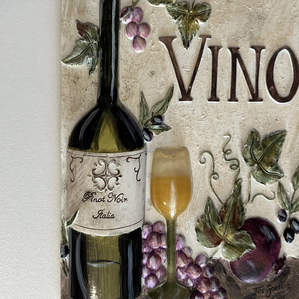 2pc 3D The Rustic Wine™ Vino & Wine Cellar Wall Plaques - Approximately 6.25" Tall x 3.5" Wide This pair is pre-owned and shows some wear, such as rust on one metal hanging piece on back, but there is much life left to live. They will add ambience to a kitchen, wine room, den and more. Please review all pictures carefully as they are part of the descrption. Questions are welcome.