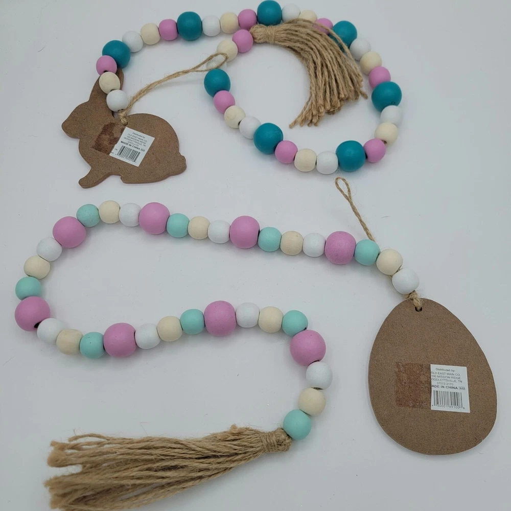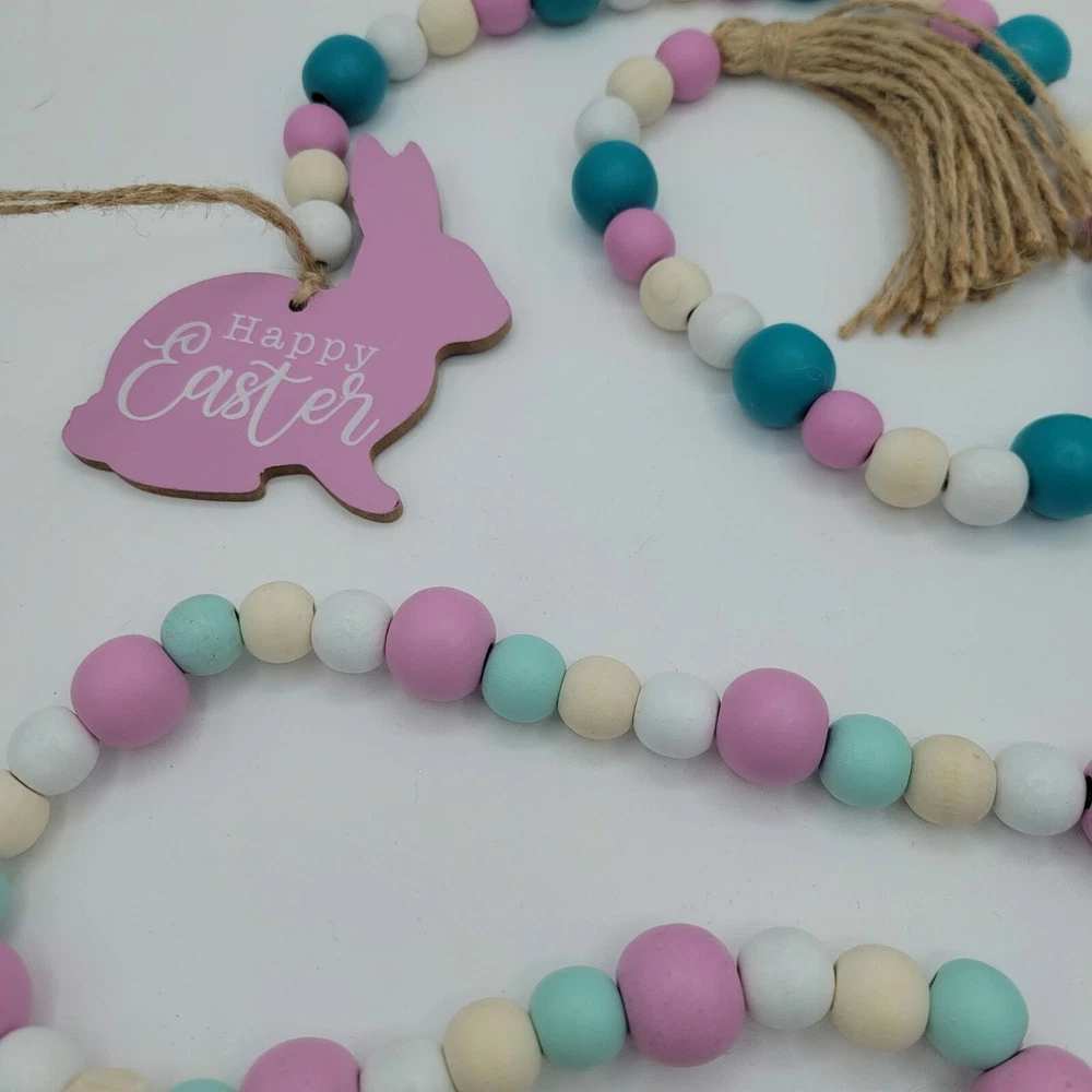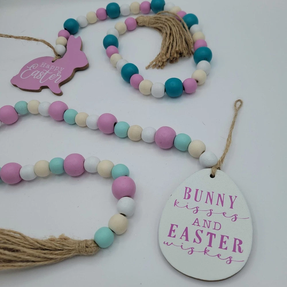 2pc Easter Wooden Bead Hangling Garland Tag Decorations